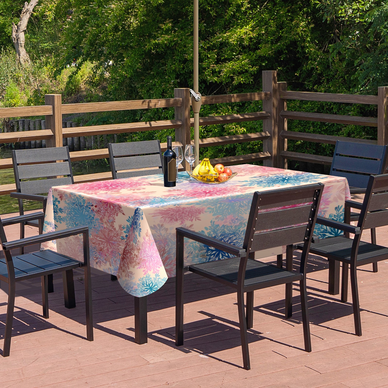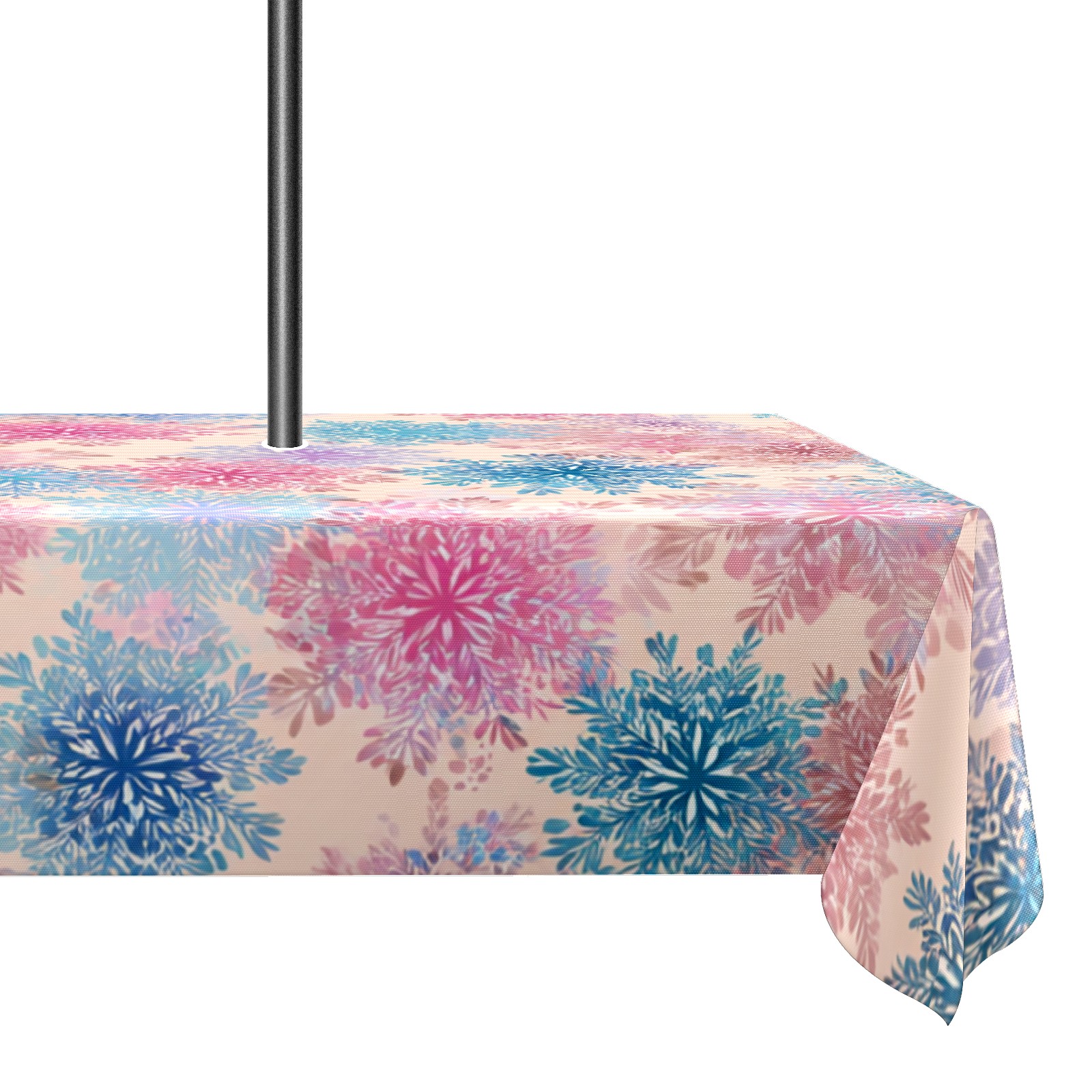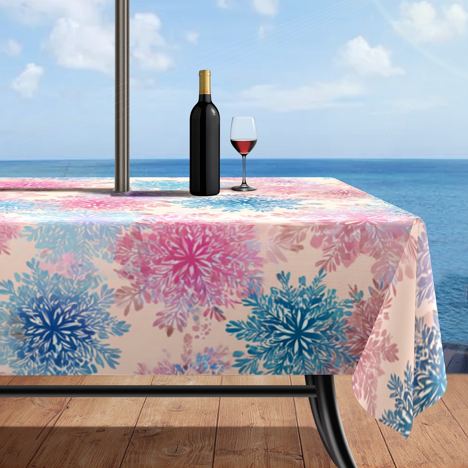 Waterproof Umbrella Hole Tablecloth Square, 52x70 Inch Rectangle Polyester Table Cover Zippered Design for Outdoor/Indoor Use Small Flowers PinkBlue