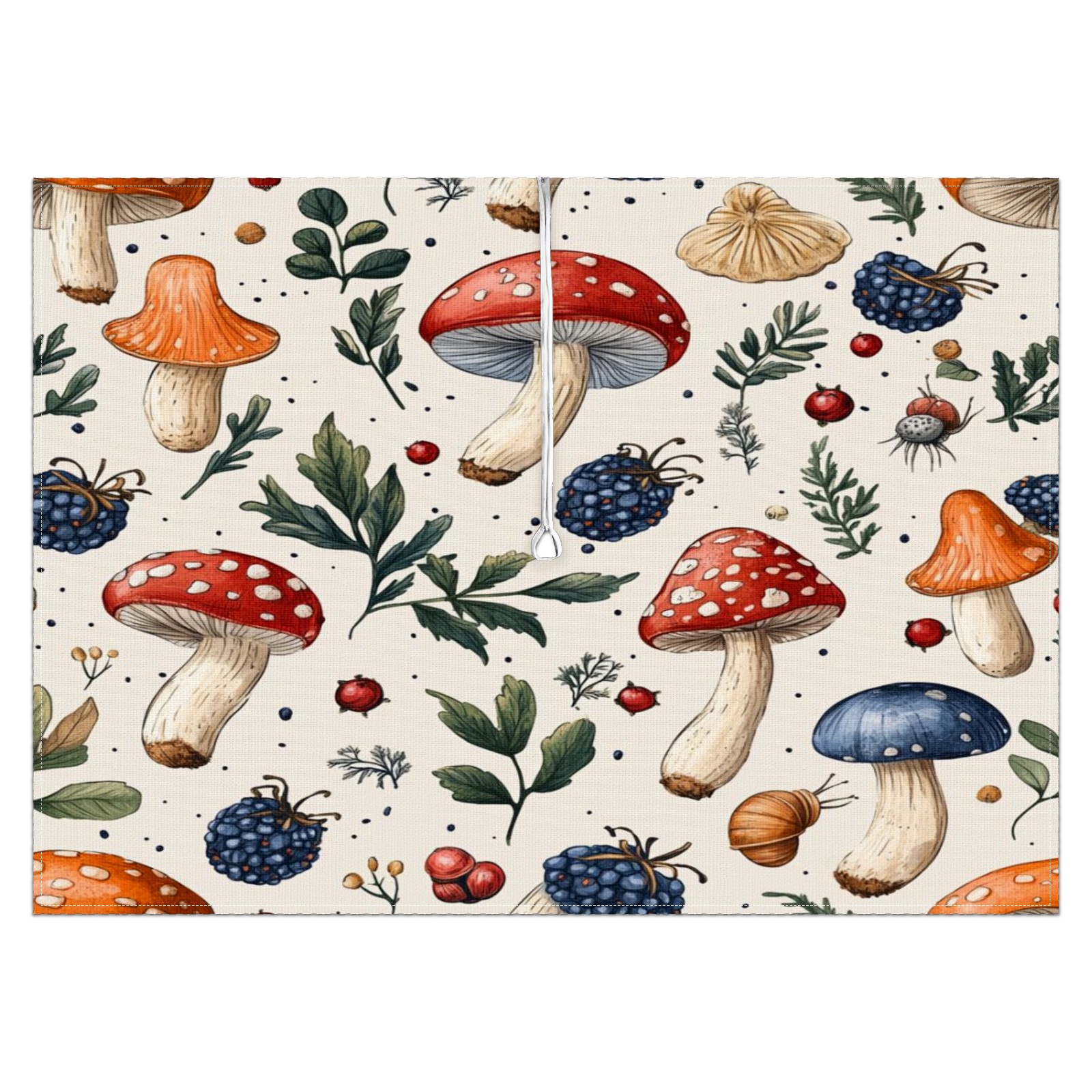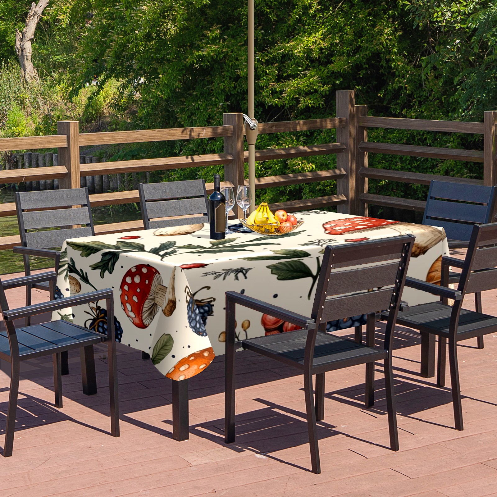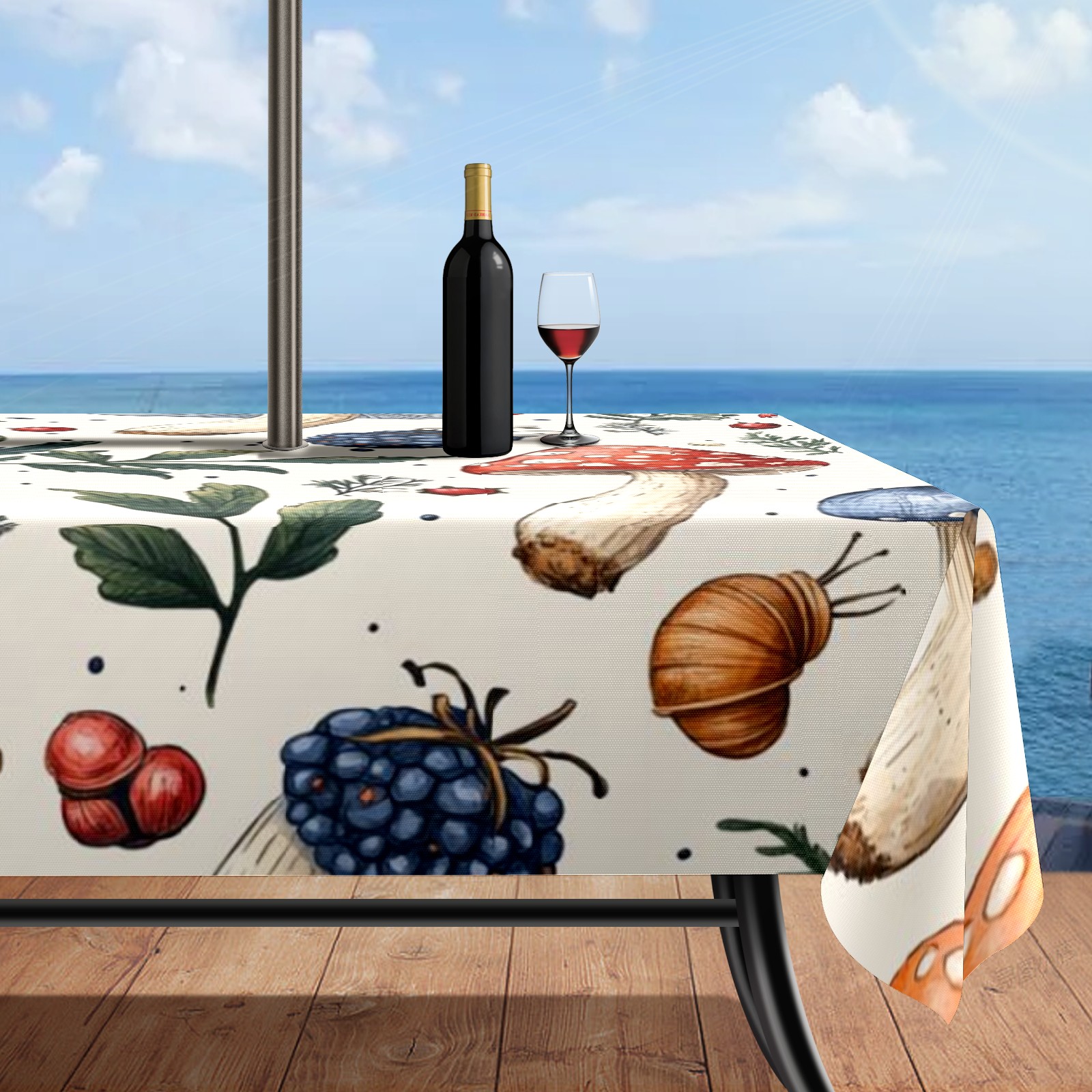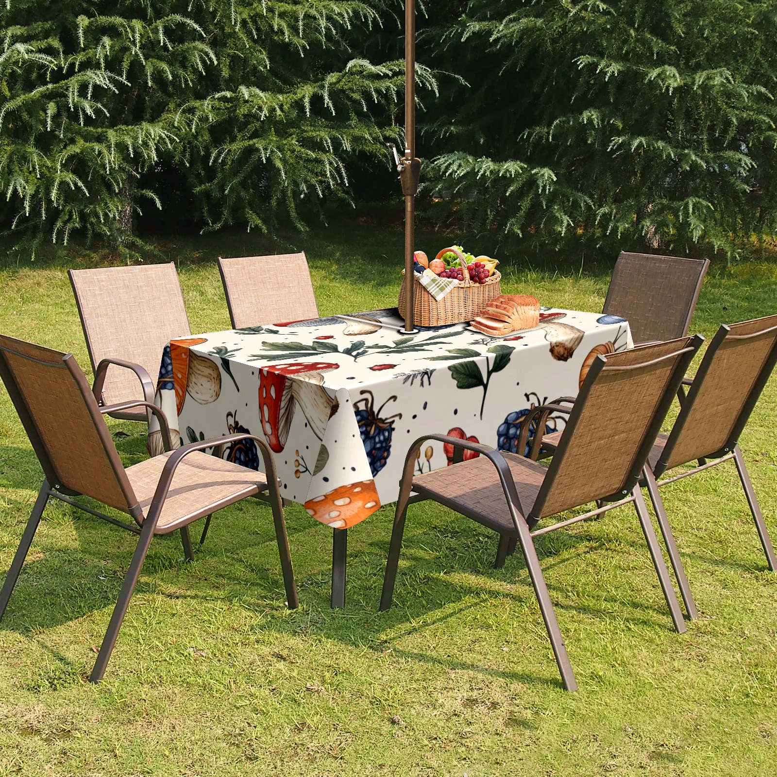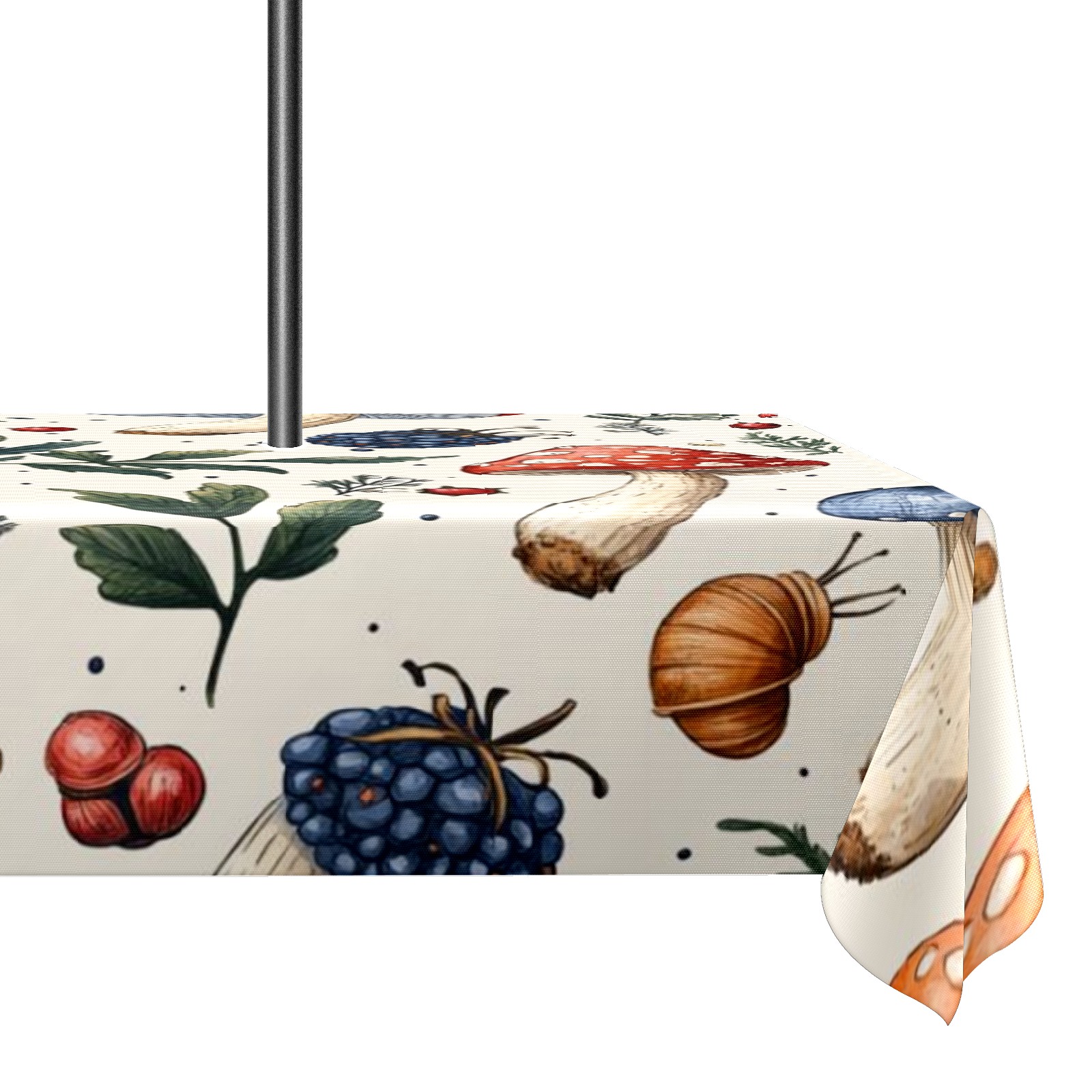 Waterproof Umbrella Hole Tablecloth Square, 52x70 Inch Rectangle Polyester Table Cover Zippered Design for Outdoor/Indoor Use Mushroom Berries