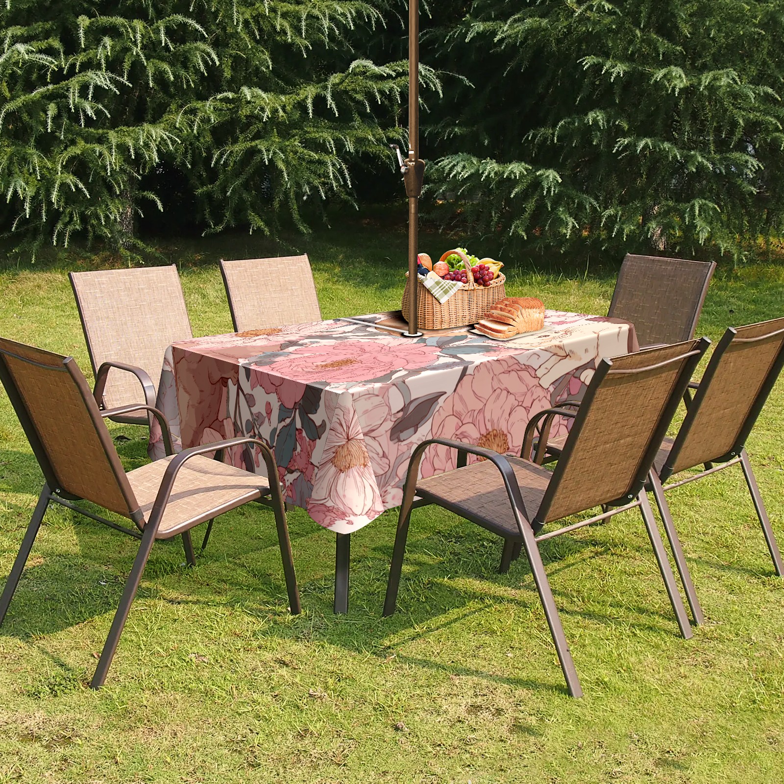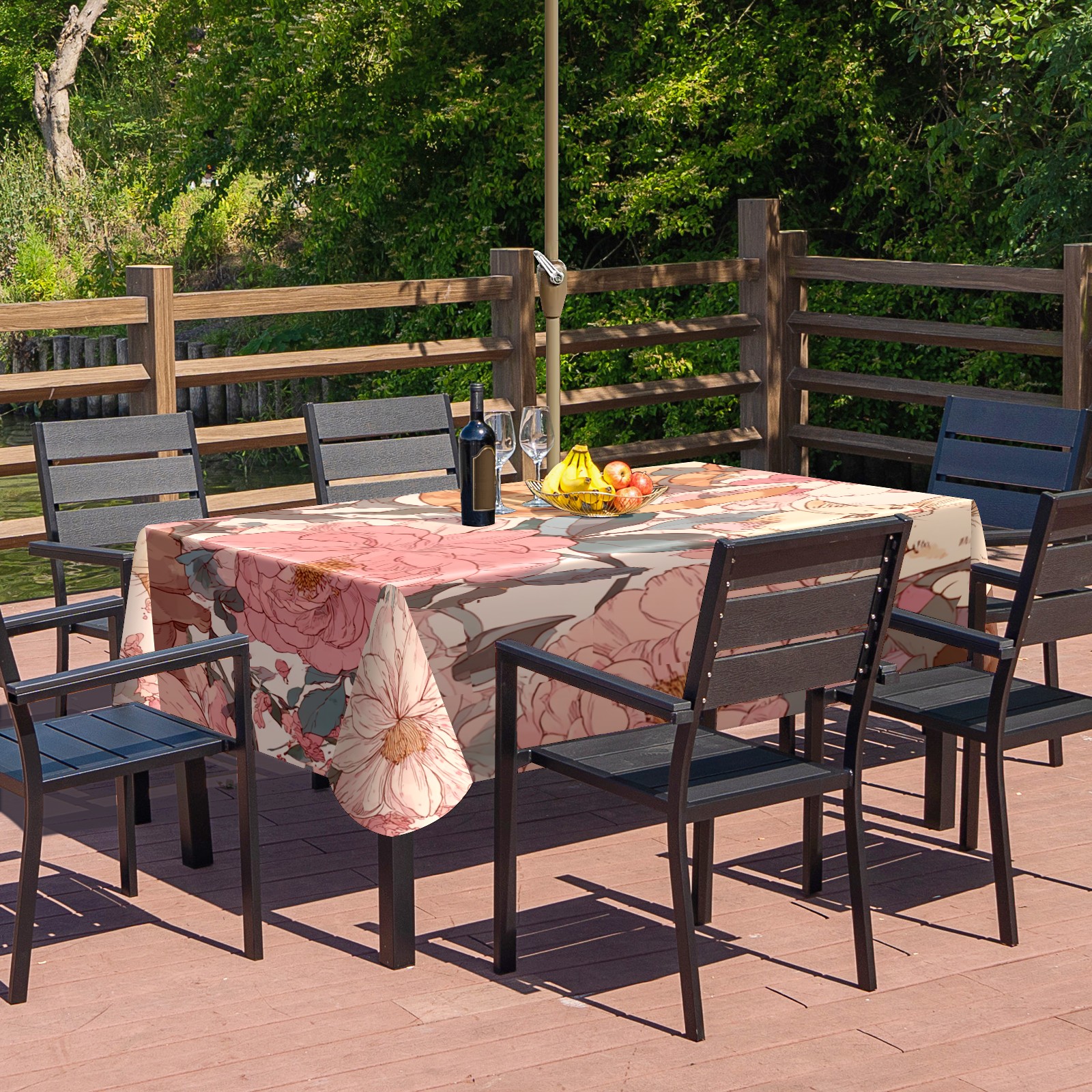 • <p>This premium polyester tablecloth features an innovative umbrella-hole zipper design for easy installation without disassembling a parasol, and offers 2.4-inch adjustable umbrella hole size. Available in 52x70 inch and 60x84 inch sizes, it perfectly fits various dining tables. Its waterproof and stain-resistant properties effectively protect against spills of coffee, juice, rain, and other liquids, keeping your table looking brand new. Daily maintenance is simple; stains wipe away easily. It is machine washable on a gentle cycle; wash in cold water and do not bleach.<br></p>