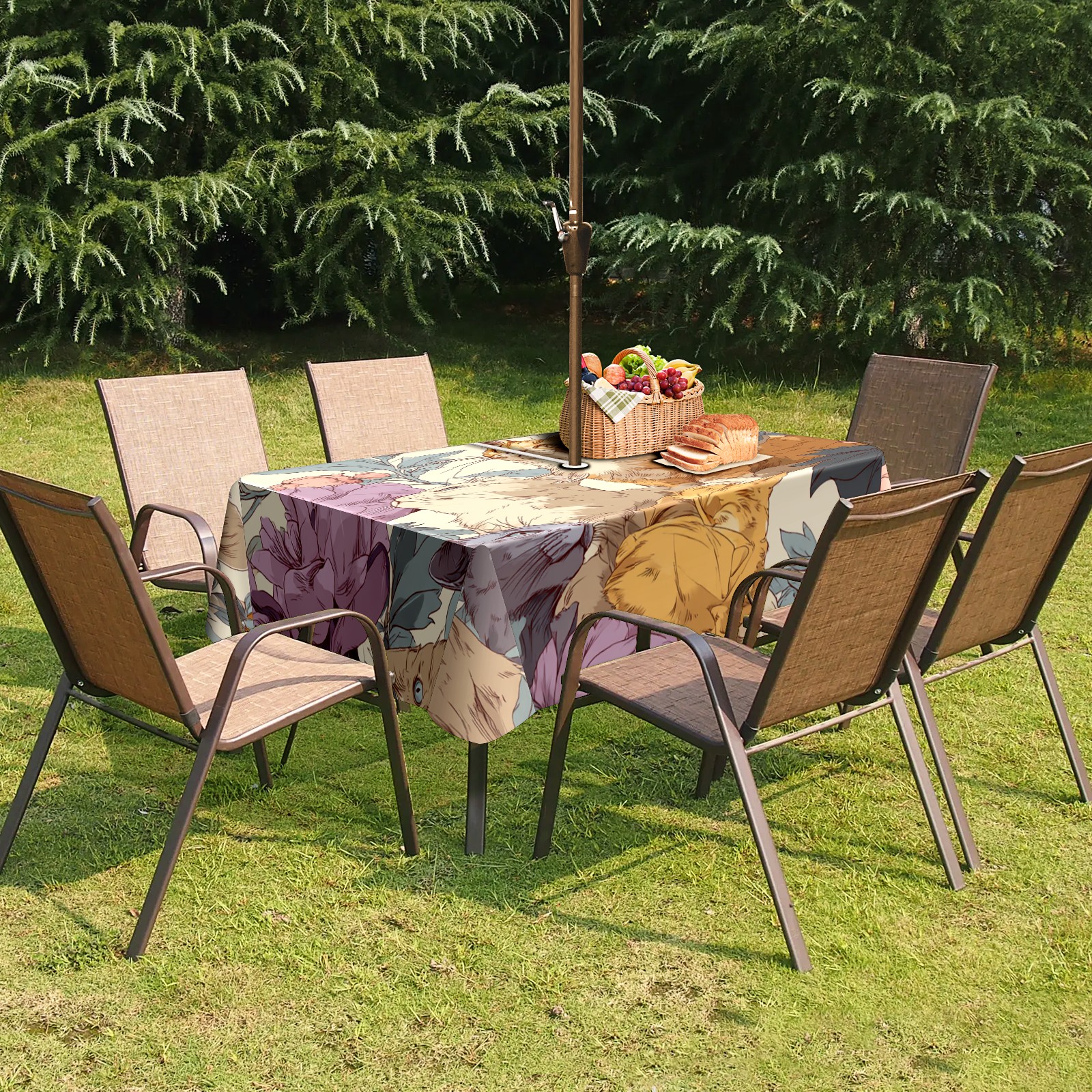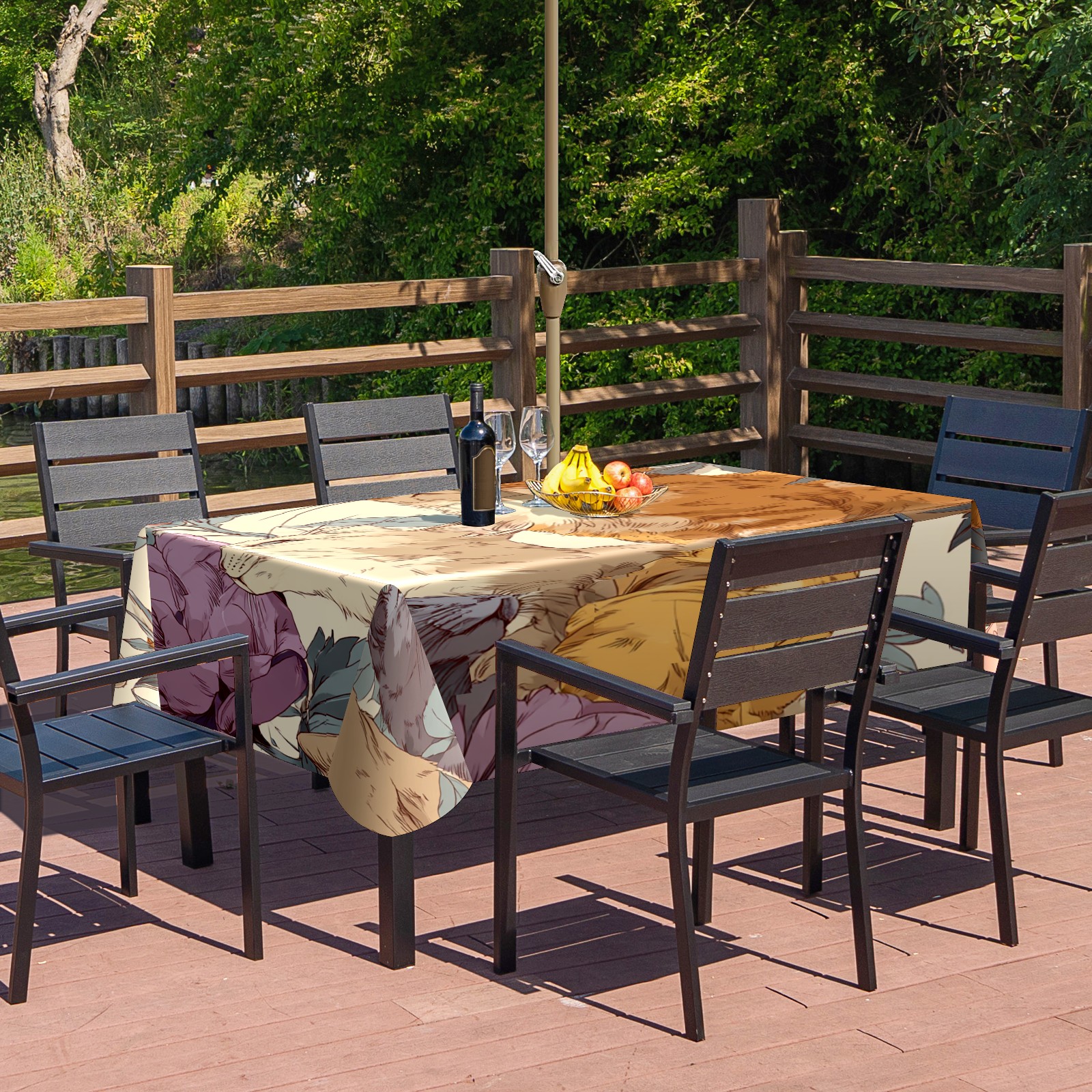 • <p>This premium polyester tablecloth features an innovative umbrella-hole zipper design for easy installation without disassembling a parasol, and offers 2.4-inch adjustable umbrella hole size. Available in 52x70 inch and 60x84 inch sizes, it perfectly fits various dining tables. Its waterproof and stain-resistant properties effectively protect against spills of coffee, juice, rain, and other liquids, keeping your table looking brand new. Daily maintenance is simple; stains wipe away easily. It is machine washable on a gentle cycle; wash in cold water and do not bleach.<br></p>