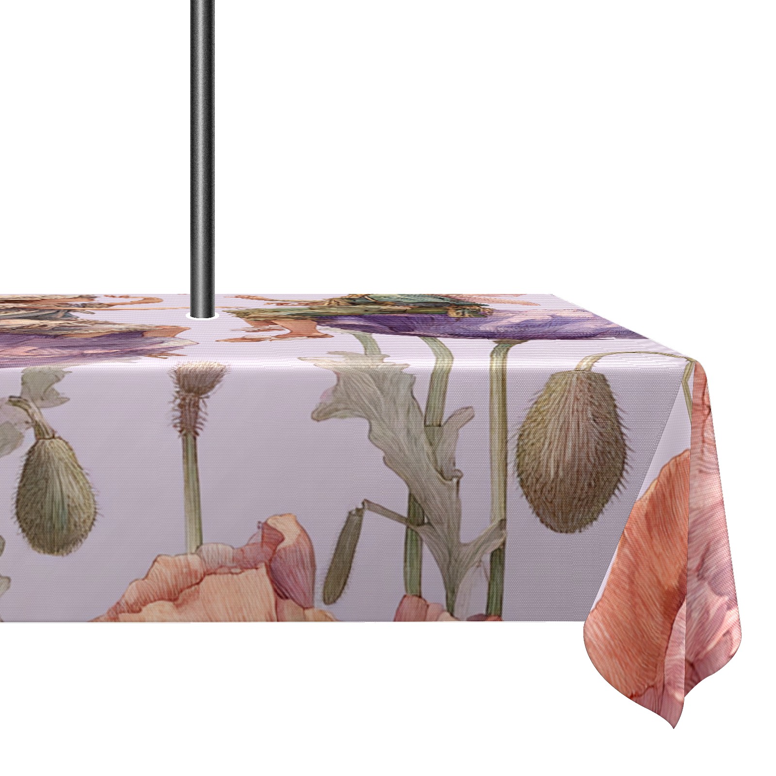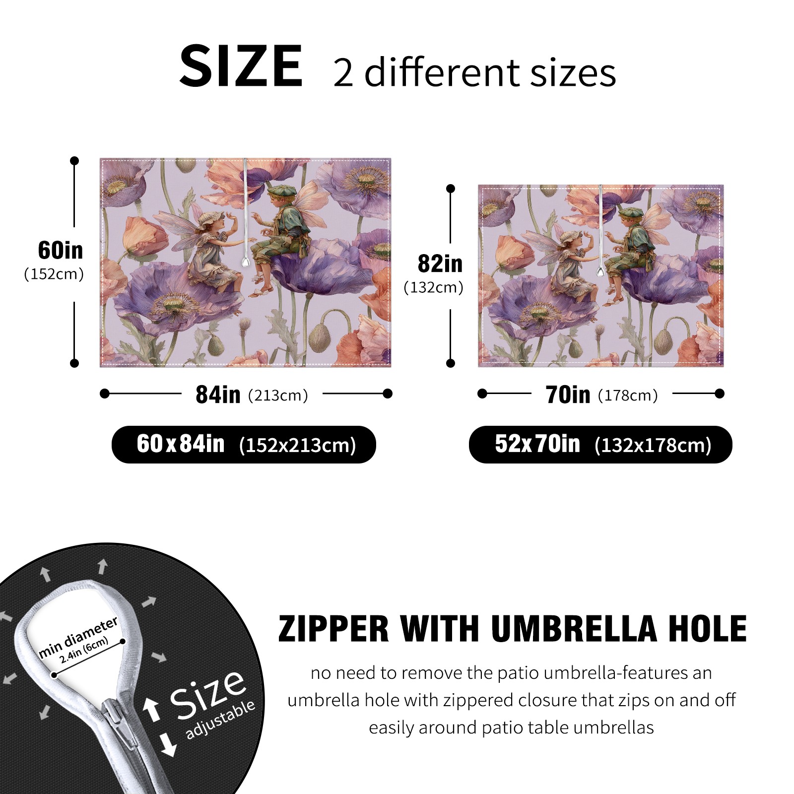 Waterproof Umbrella Hole Tablecloth Square, 52x70 Inch Rectangle Polyester Table Cover Zippered Design for Outdoor/Indoor Use Fairy PurpleOrange