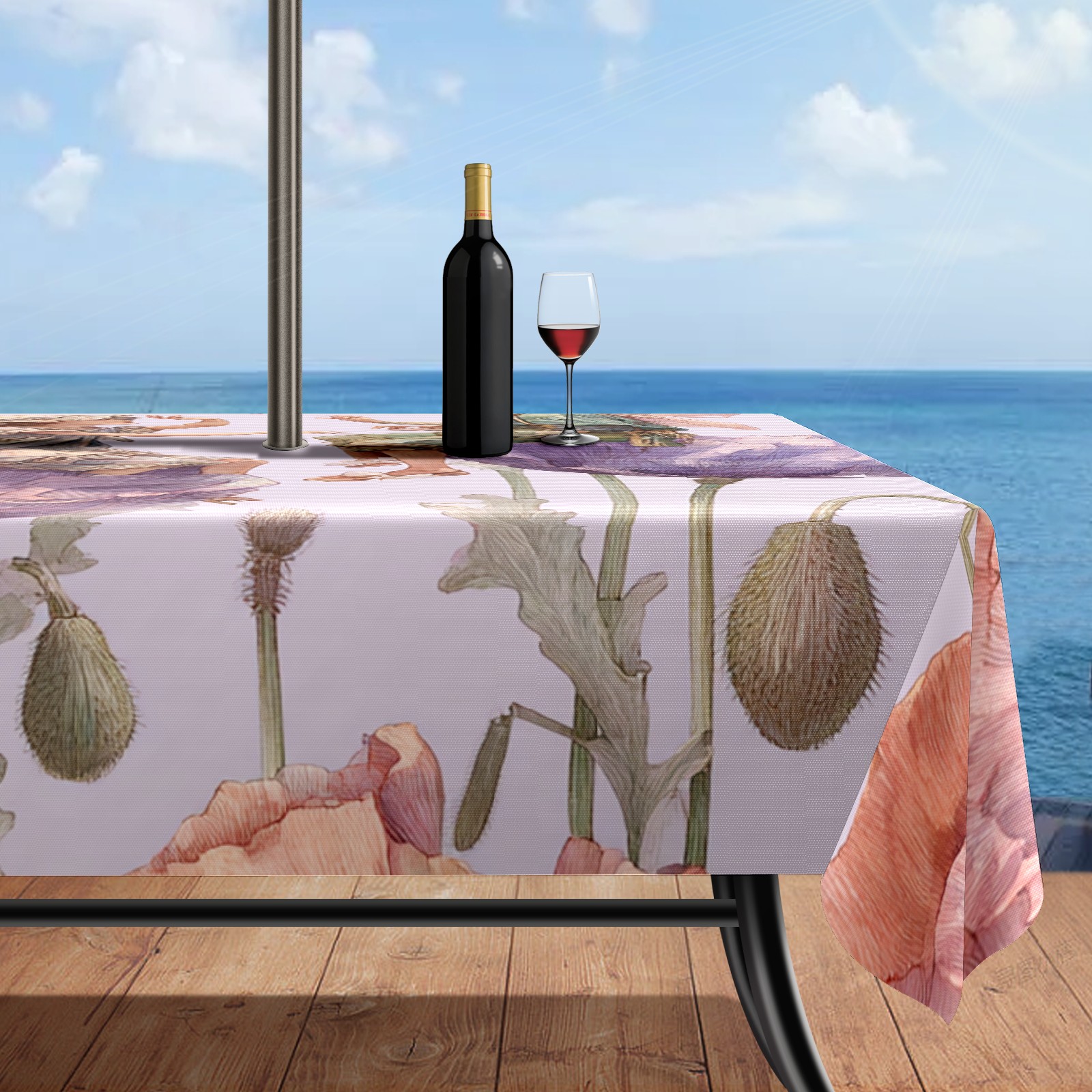 • <p>This premium polyester tablecloth features an innovative umbrella-hole zipper design for easy installation without disassembling a parasol, and offers 2.4-inch adjustable umbrella hole size. Available in 52x70 inch and 60x84 inch sizes, it perfectly fits various dining tables. Its waterproof and stain-resistant properties effectively protect against spills of coffee, juice, rain, and other liquids, keeping your table looking brand new. Daily maintenance is simple; stains wipe away easily. It is machine washable on a gentle cycle; wash in cold water and do not bleach.<br></p>