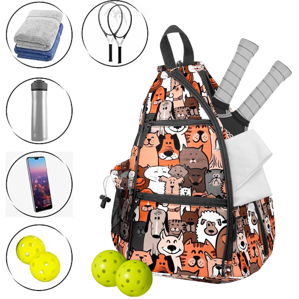 <p>This peakball backpack boasts a spacious 14-inch x 10-inch x 19-inch interior. The main compartment is clearly divided, easily accommodating 2-3 rackets and 6-8 peakballs. A side pocket can hold a water bottle, and an inner pocket provides storage for small items like phones and keys. The adjustable, thickened shoulder straps can be adjusted to fit different body types, effectively distributing weight and preventing shoulder and back pain even when fully loaded and worn for extended periods. Its convenience is particularly outstanding – all peakball accessories can be neatly stored in one bag, making travel easy. Moreover, its versatility is incredibly broad. Besides peakballs, it can also be used as a badminton or table tennis racket bag, and is perfect for carrying clothes and personal items when going to the gym or on short trips. One bag, multiple uses, and super convenient. For pickleball players of all ages and genders, this is not just an essential equipment storage bag, but also a thoughtful gift—its simple and durable design suits everyone, making it perfect for birthdays, holidays, or as a team reward for teammates. Almost every sports enthusiast who has used it praises its practicality and versatility.</p>