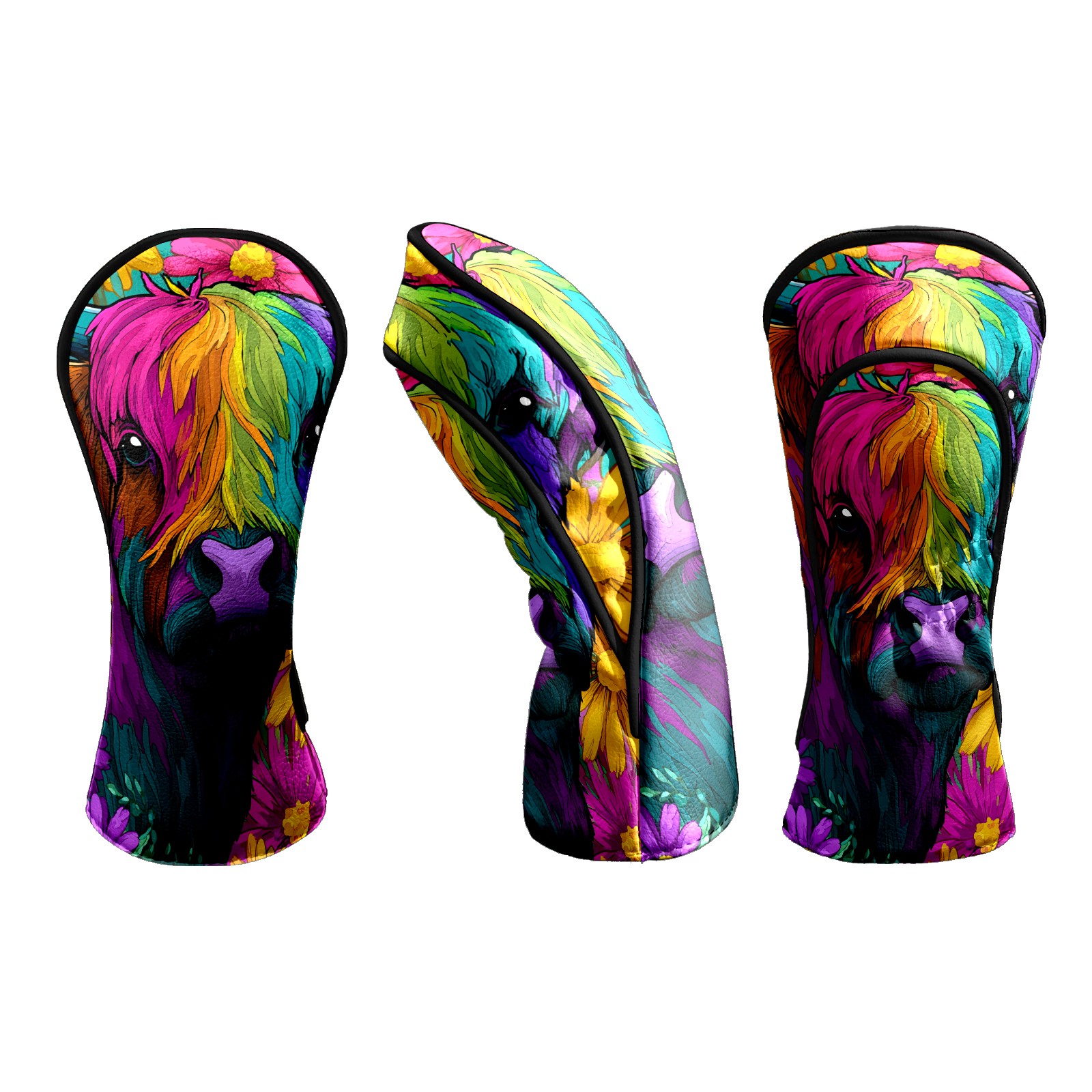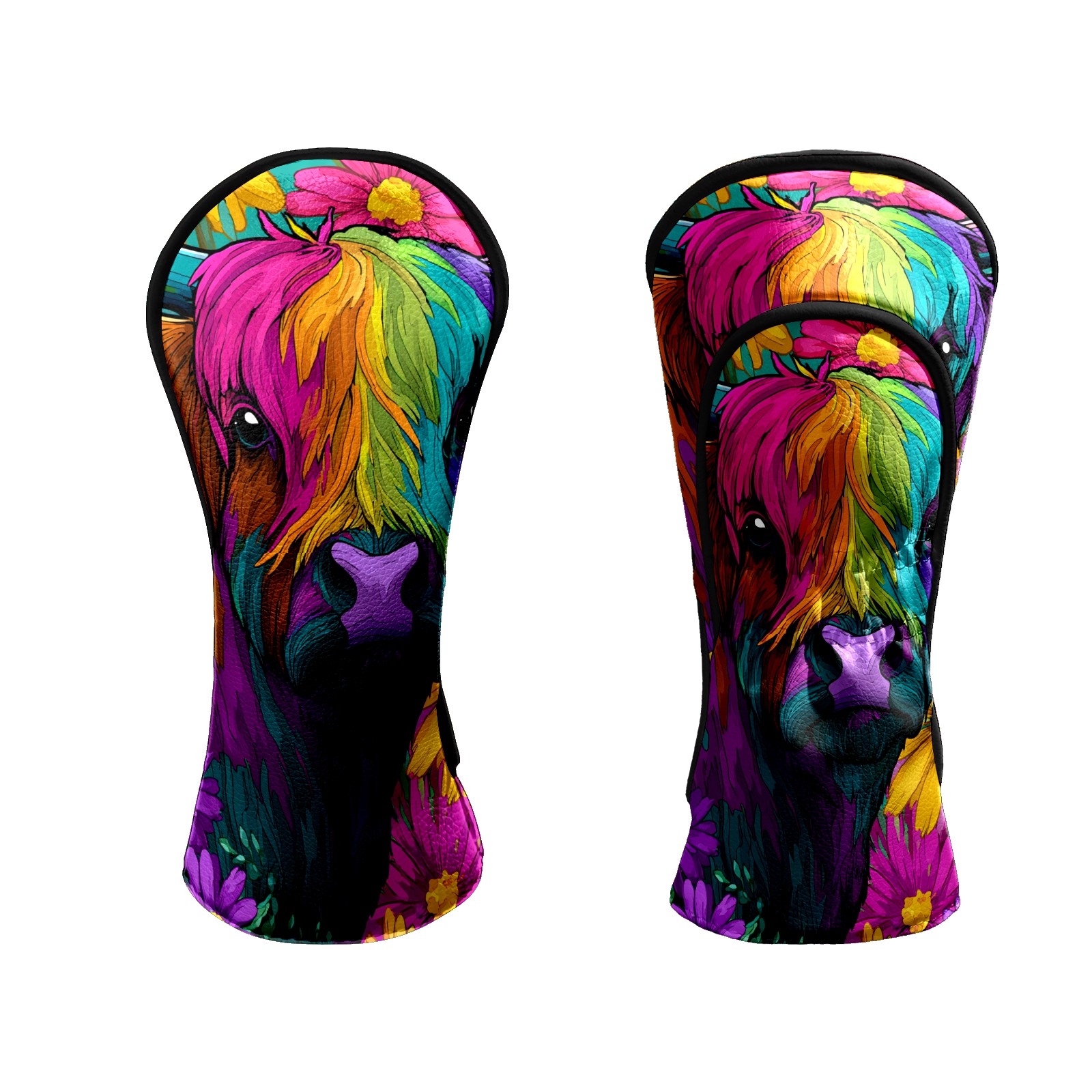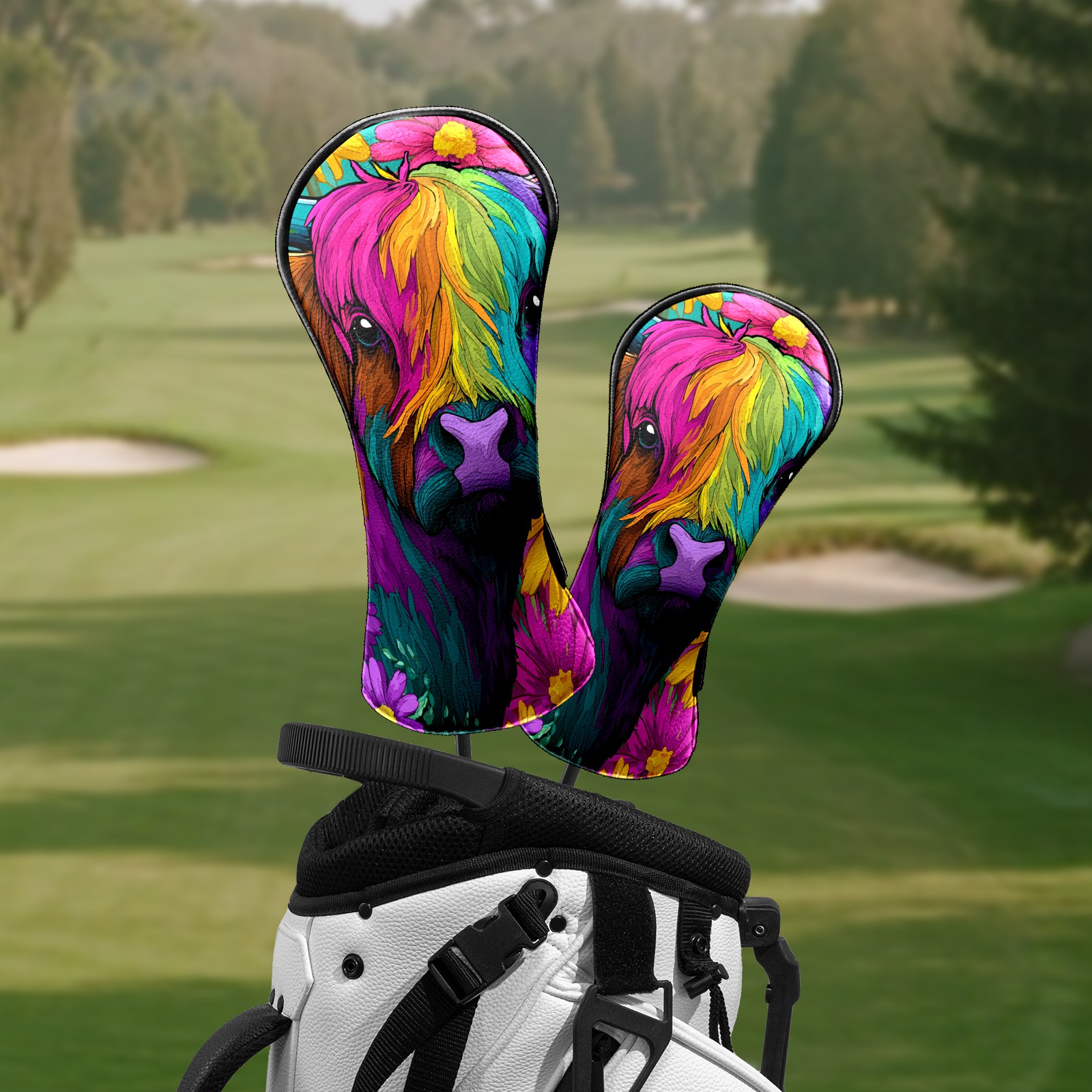 Golf Club Head Covers - Highland Cow Pink Driver Fairway Headcover, Premium PU Leather, Protective Velvet Lining, Secure Elastic Band, Fits All Golf Brands, Perfect Gift for Golfers Men Women