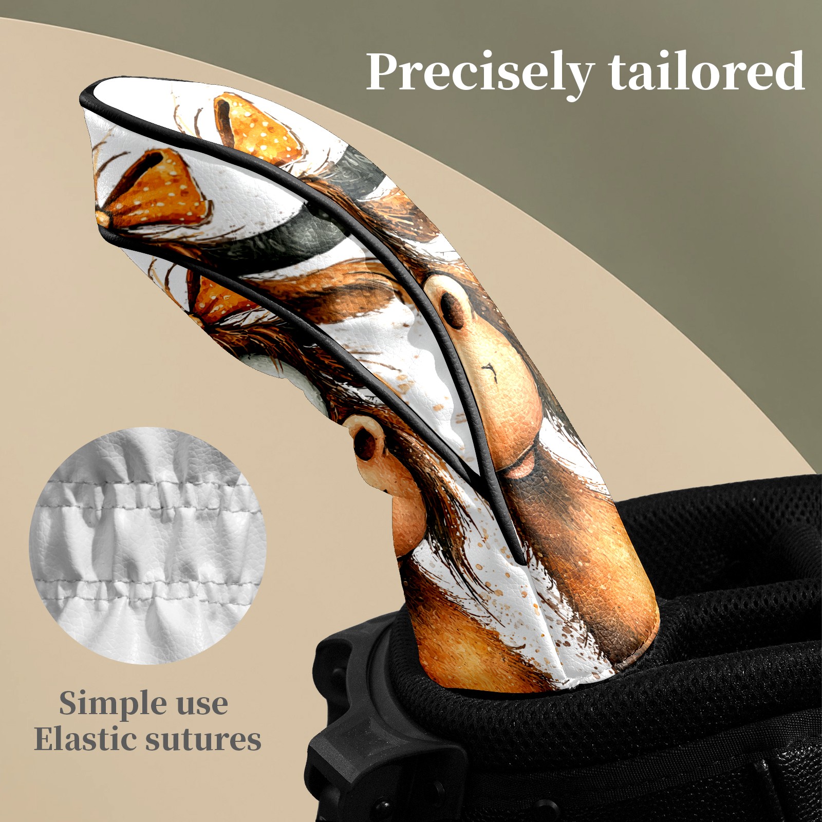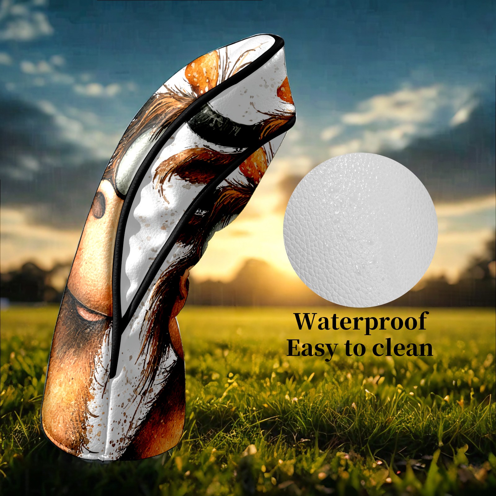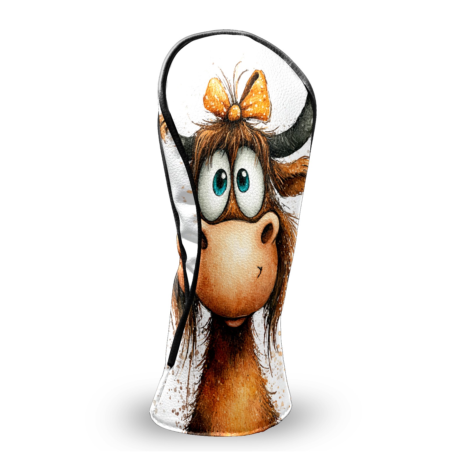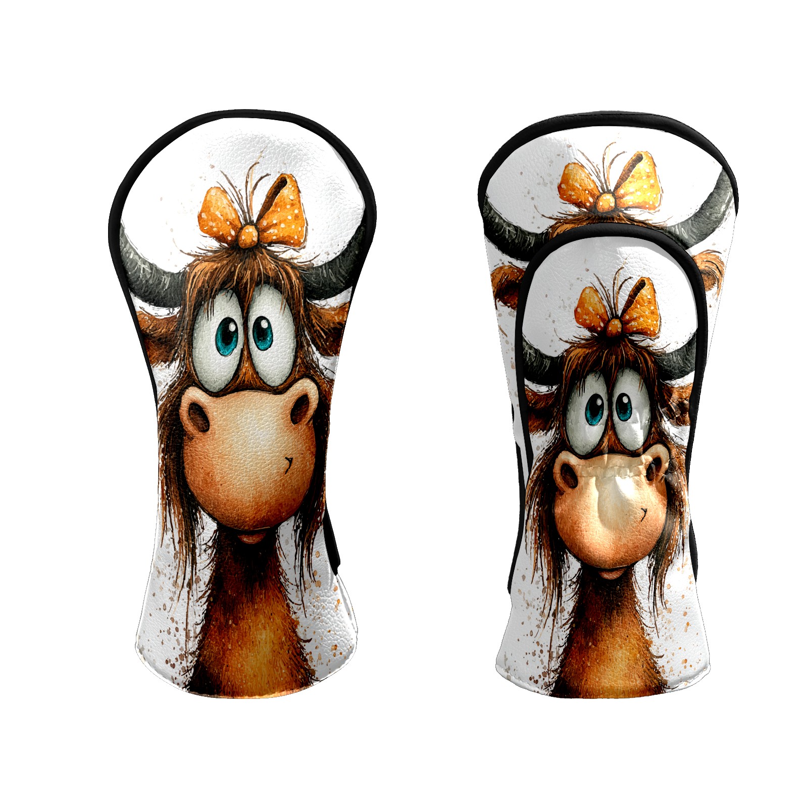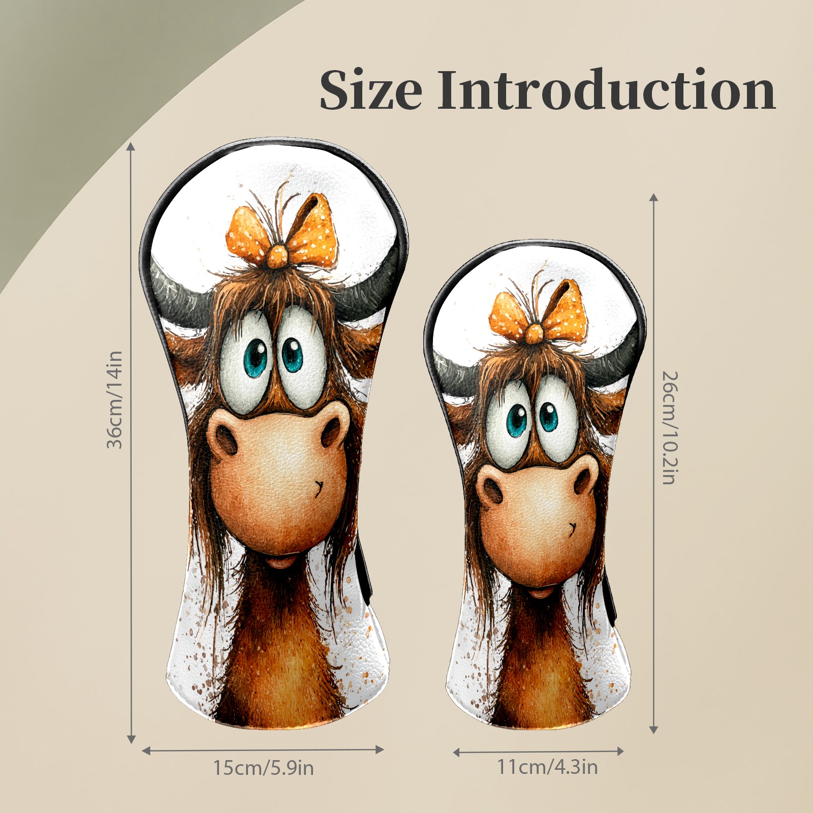 Golf Club Head Covers - Cartoon Cow Brown Driver Fairway Headcover, Premium PU Leather, Protective Velvet Lining, Secure Elastic Band, Fits All Golf Brands, Perfect Gift for Golfers Men Women