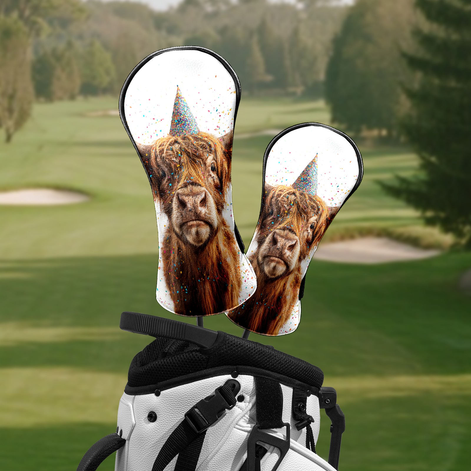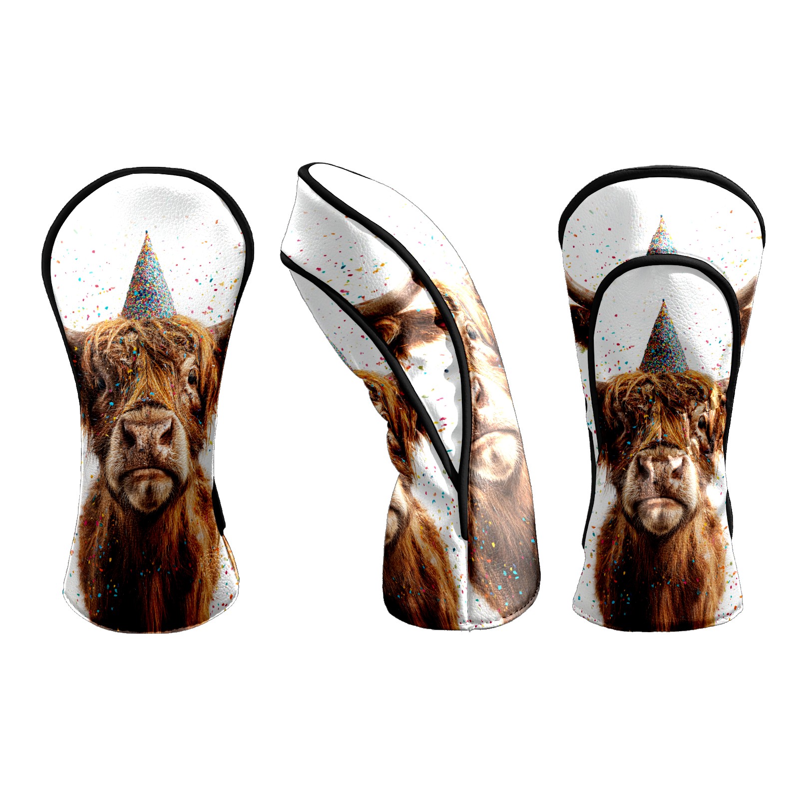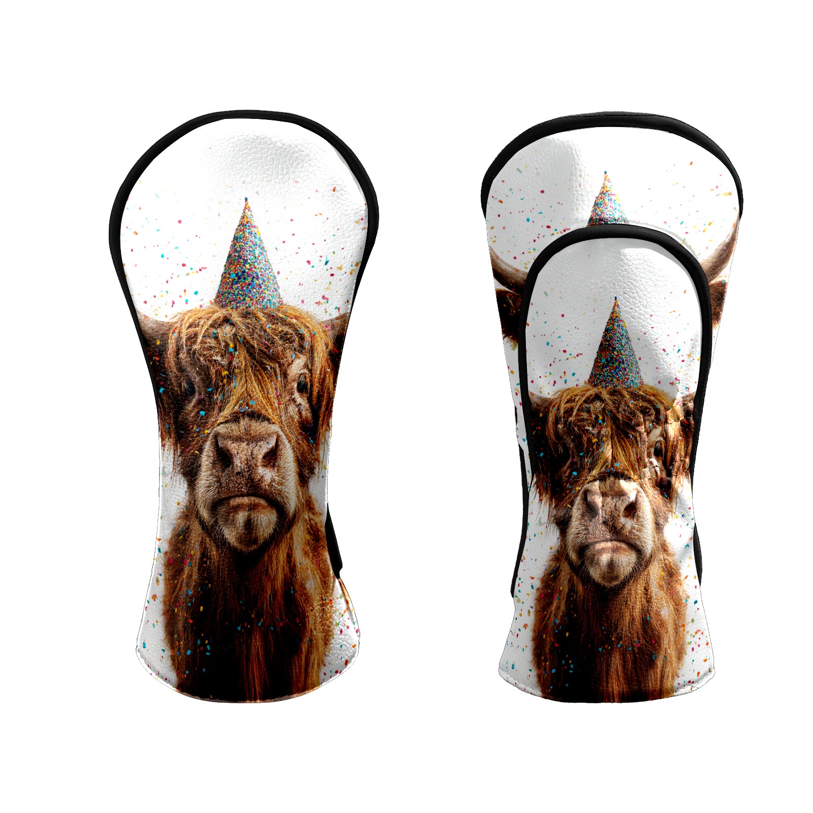 Golf Club Head Covers - Party Hat Cow Gold Driver Fairway Headcover, Premium PU Leather, Protective Velvet Lining, Secure Elastic Band, Fits All Golf Brands, Perfect Gift for Golfers Men Women