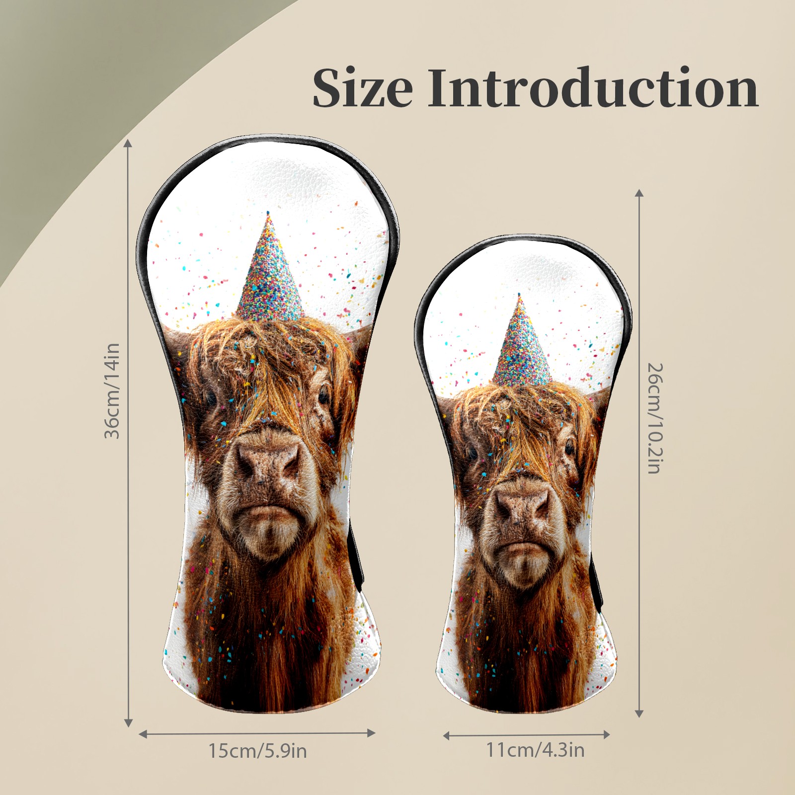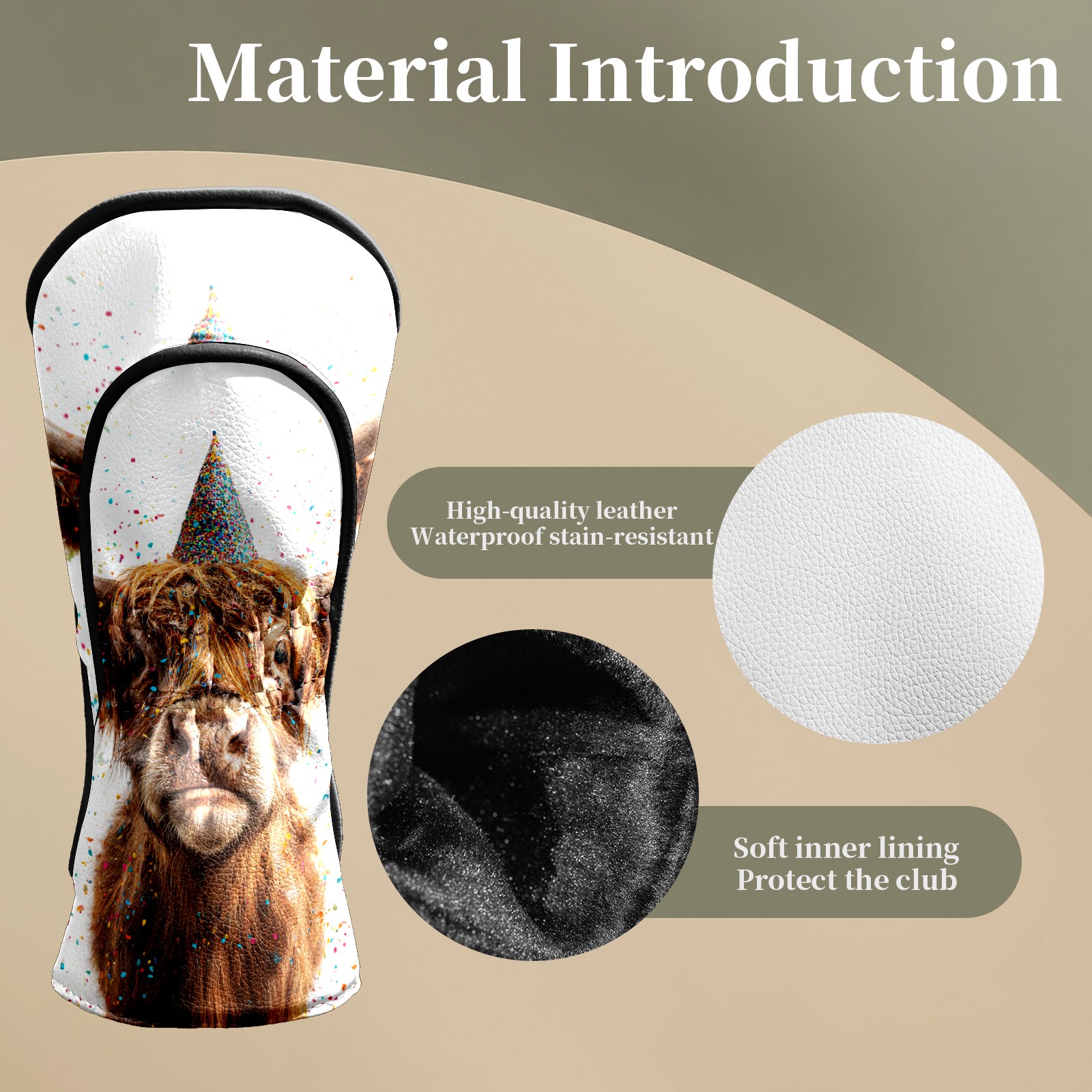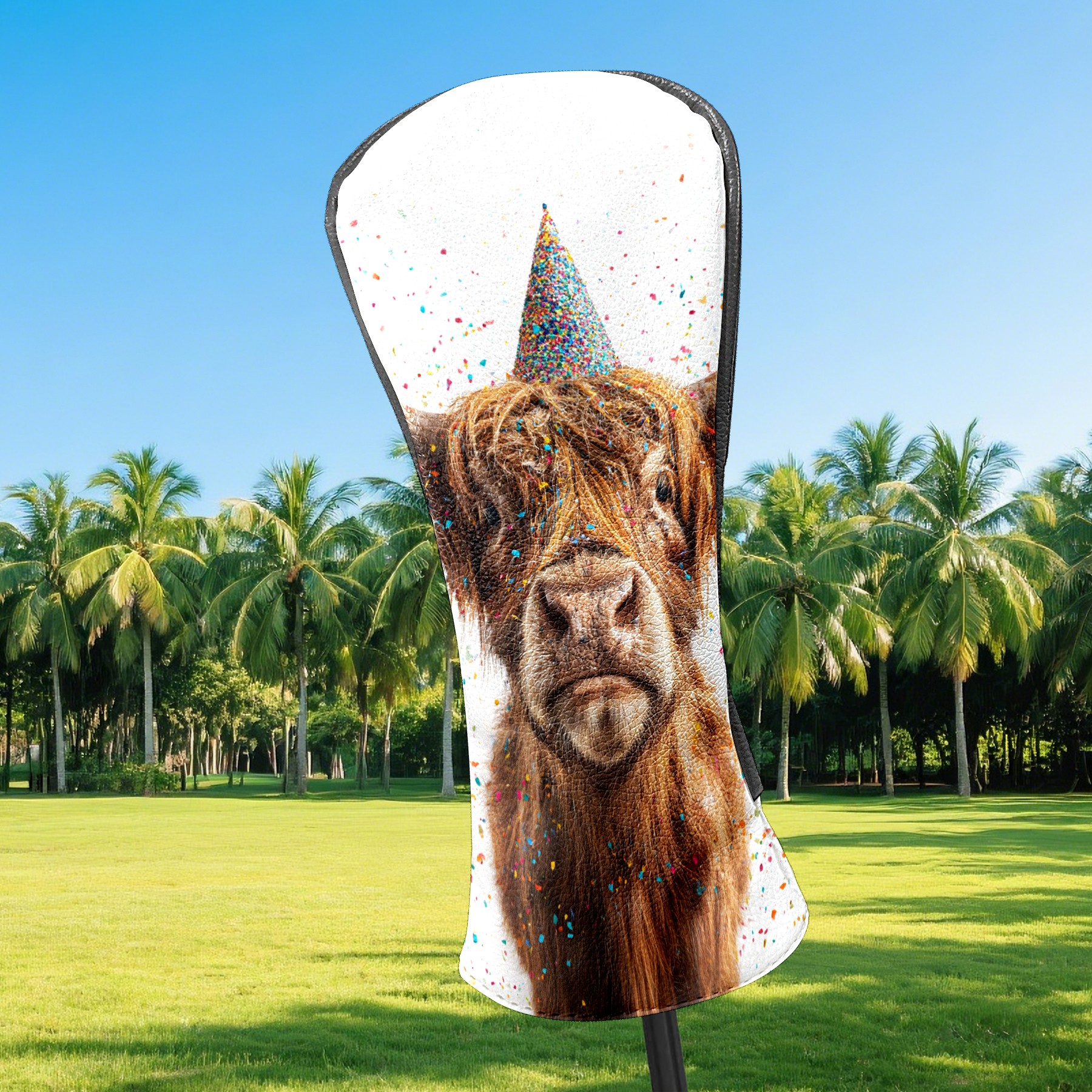 Golf Club Head Covers - Party Hat Cow Gold Driver Fairway Headcover, Premium PU Leather, Protective Velvet Lining, Secure Elastic Band, Fits All Golf Brands, Perfect Gift for Golfers Men Women