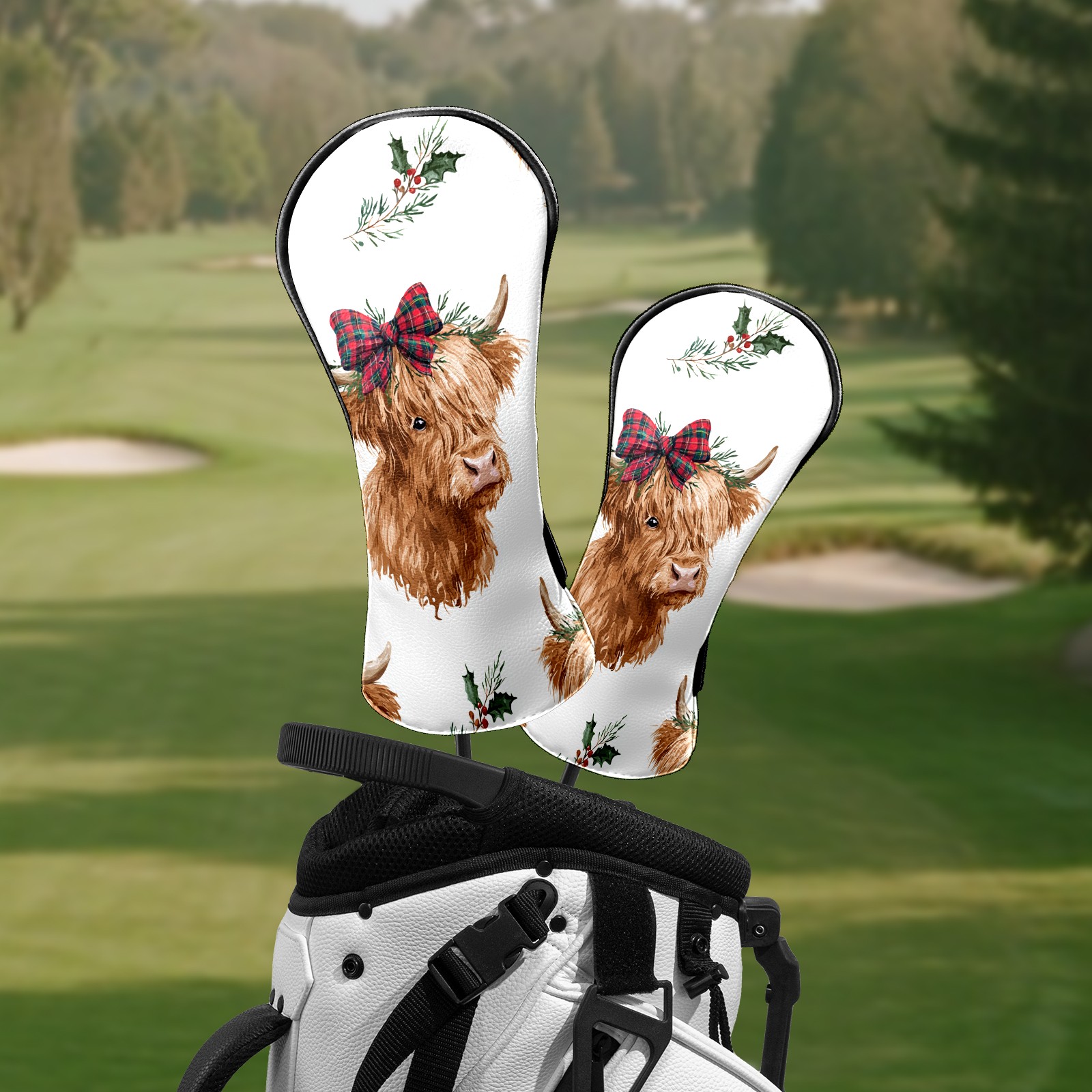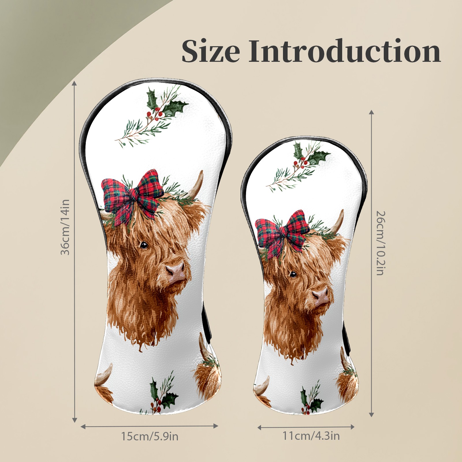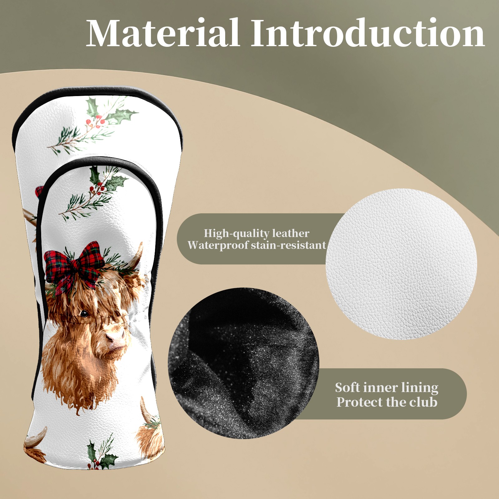 Golf Club Head Covers - Bow Cow Brownish Driver Fairway Headcover, Premium PU Leather, Protective Velvet Lining, Secure Elastic Band, Fits All Golf Brands, Perfect Gift for Golfers Men Women