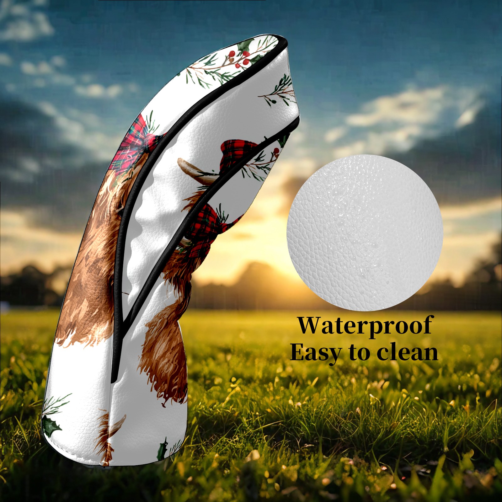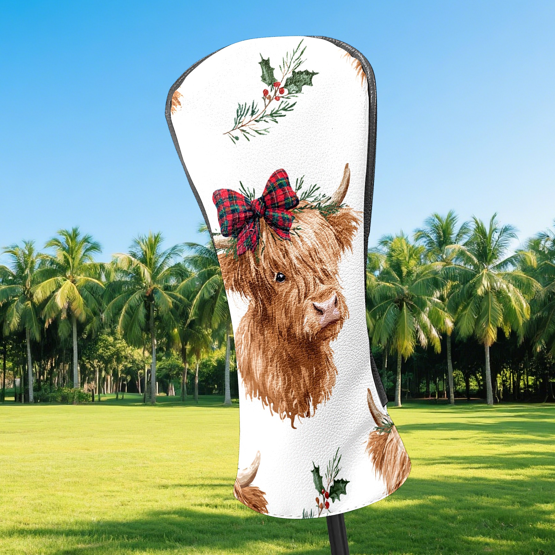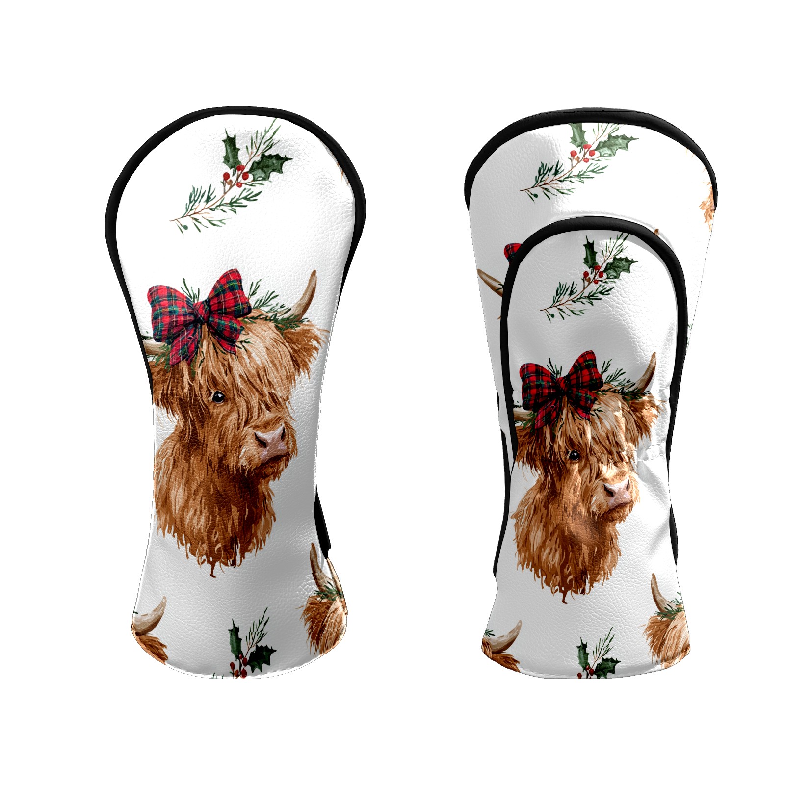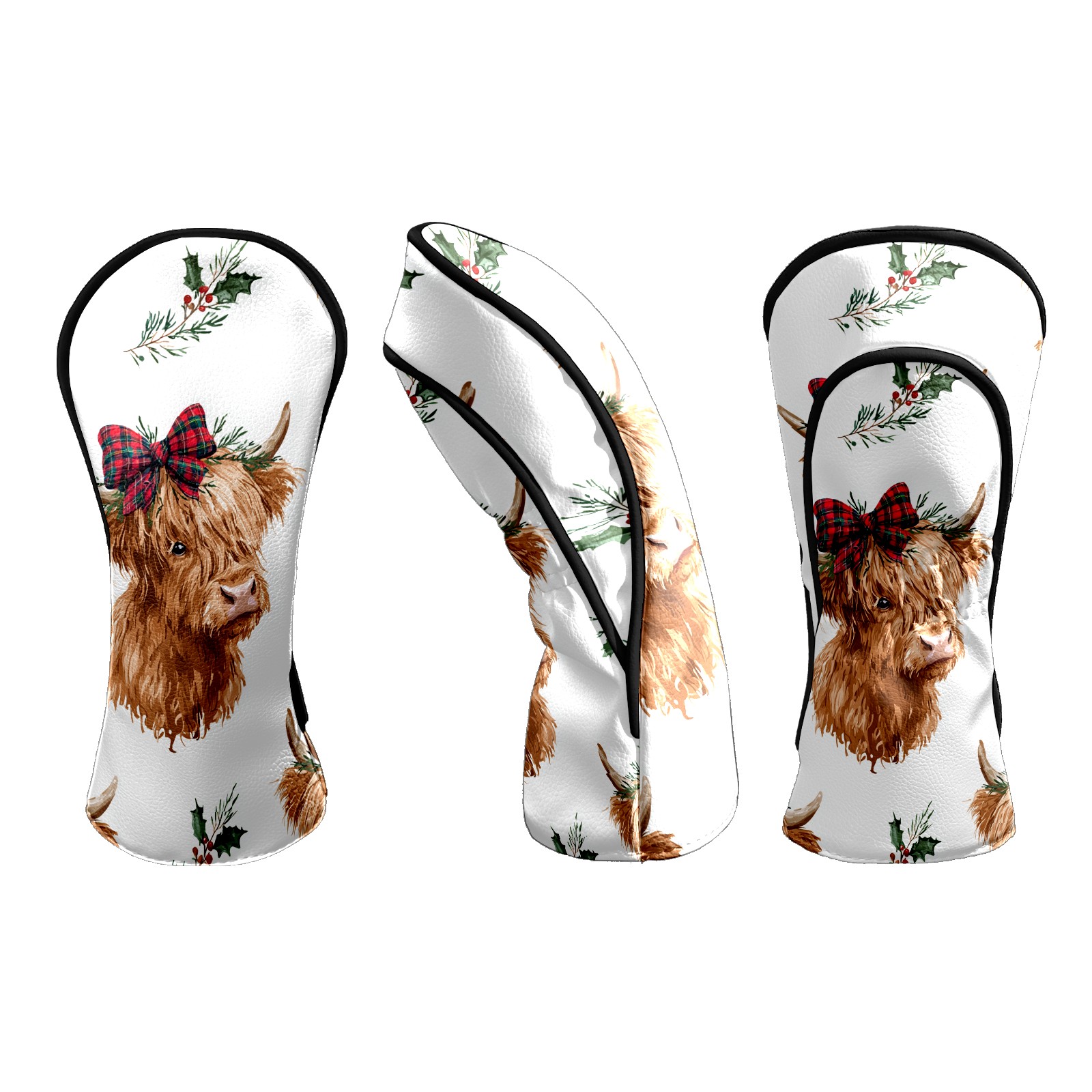 Golf Club Head Covers - Bow Cow Brownish Driver Fairway Headcover, Premium PU Leather, Protective Velvet Lining, Secure Elastic Band, Fits All Golf Brands, Perfect Gift for Golfers Men Women
