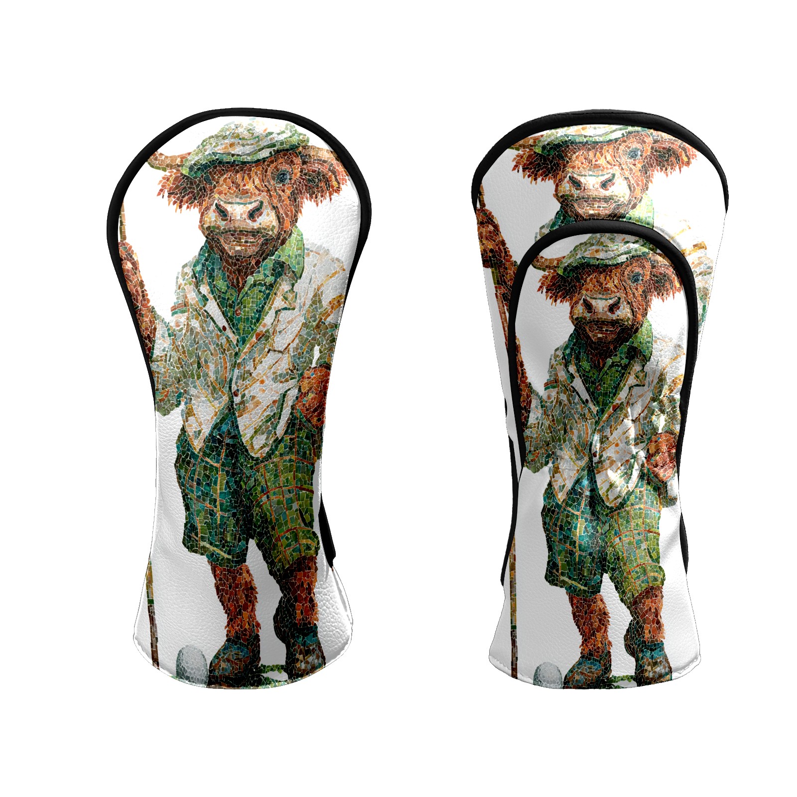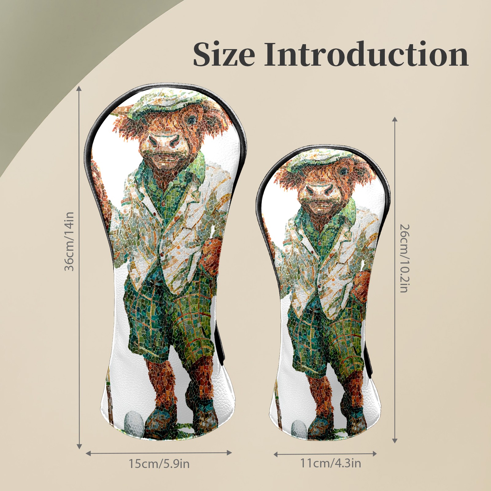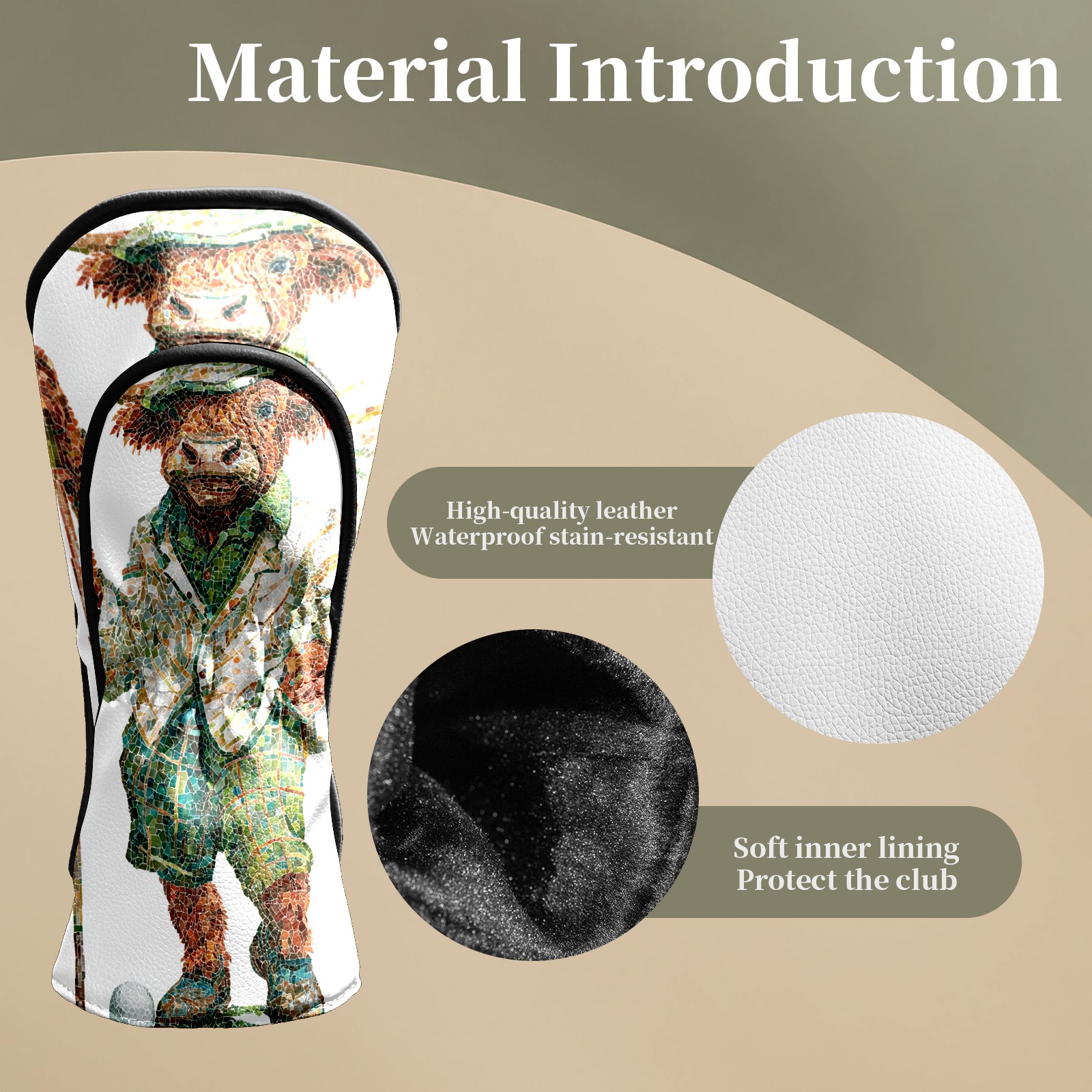 Golf Club Head Covers - Vintage Cow Green Driver Fairway Headcover, Premium PU Leather, Protective Velvet Lining, Secure Elastic Band, Fits All Golf Brands, Perfect Gift for Golfers Men Women