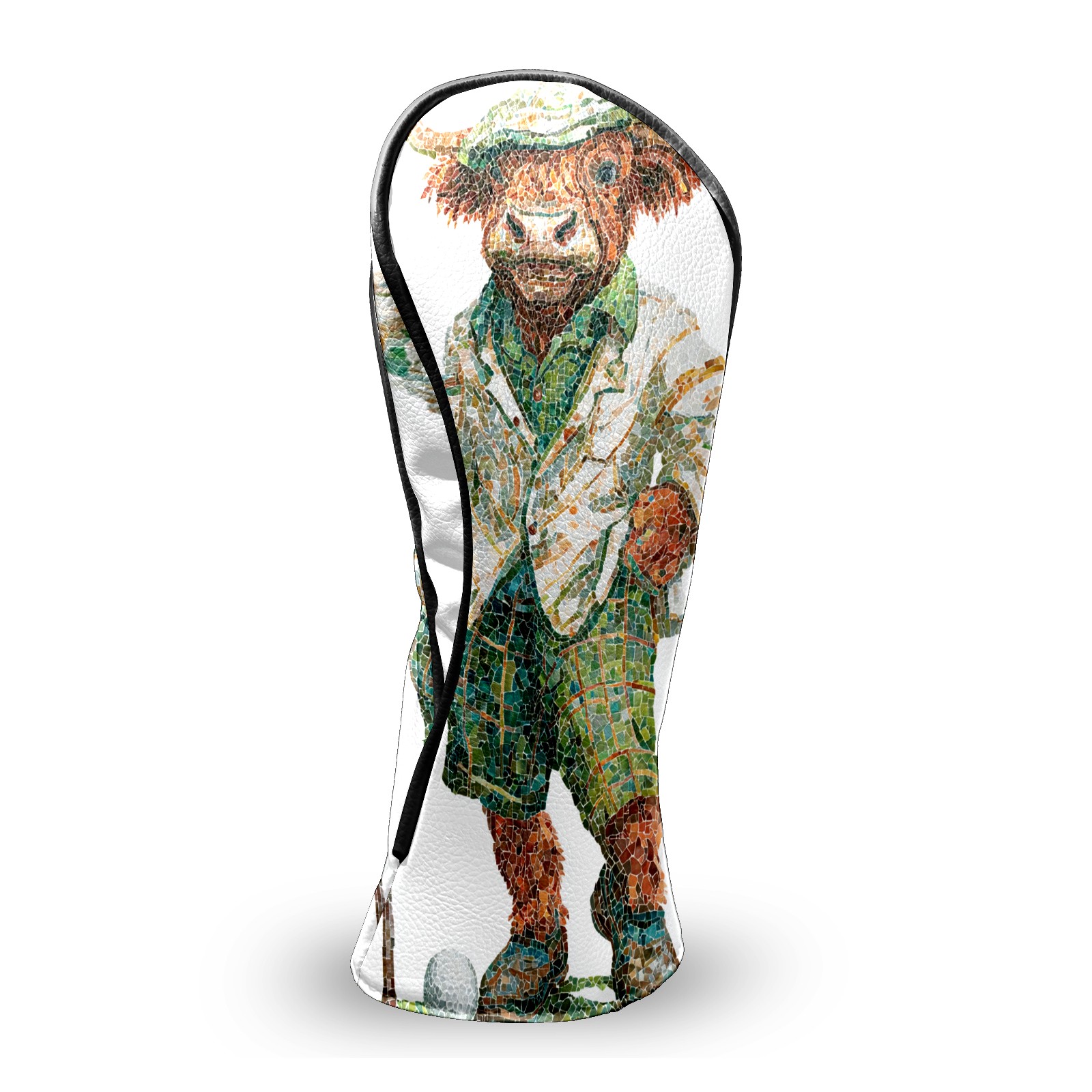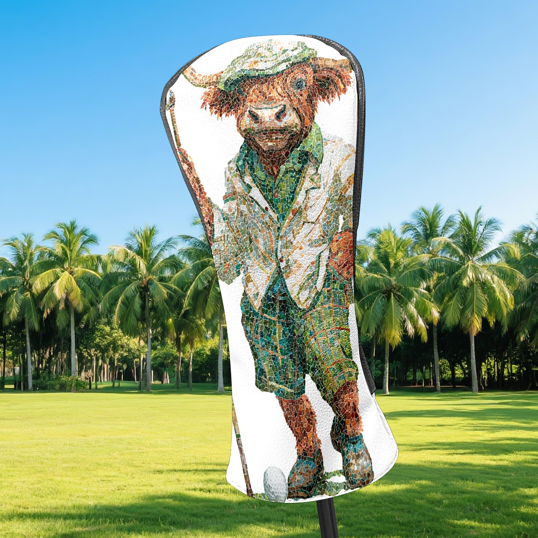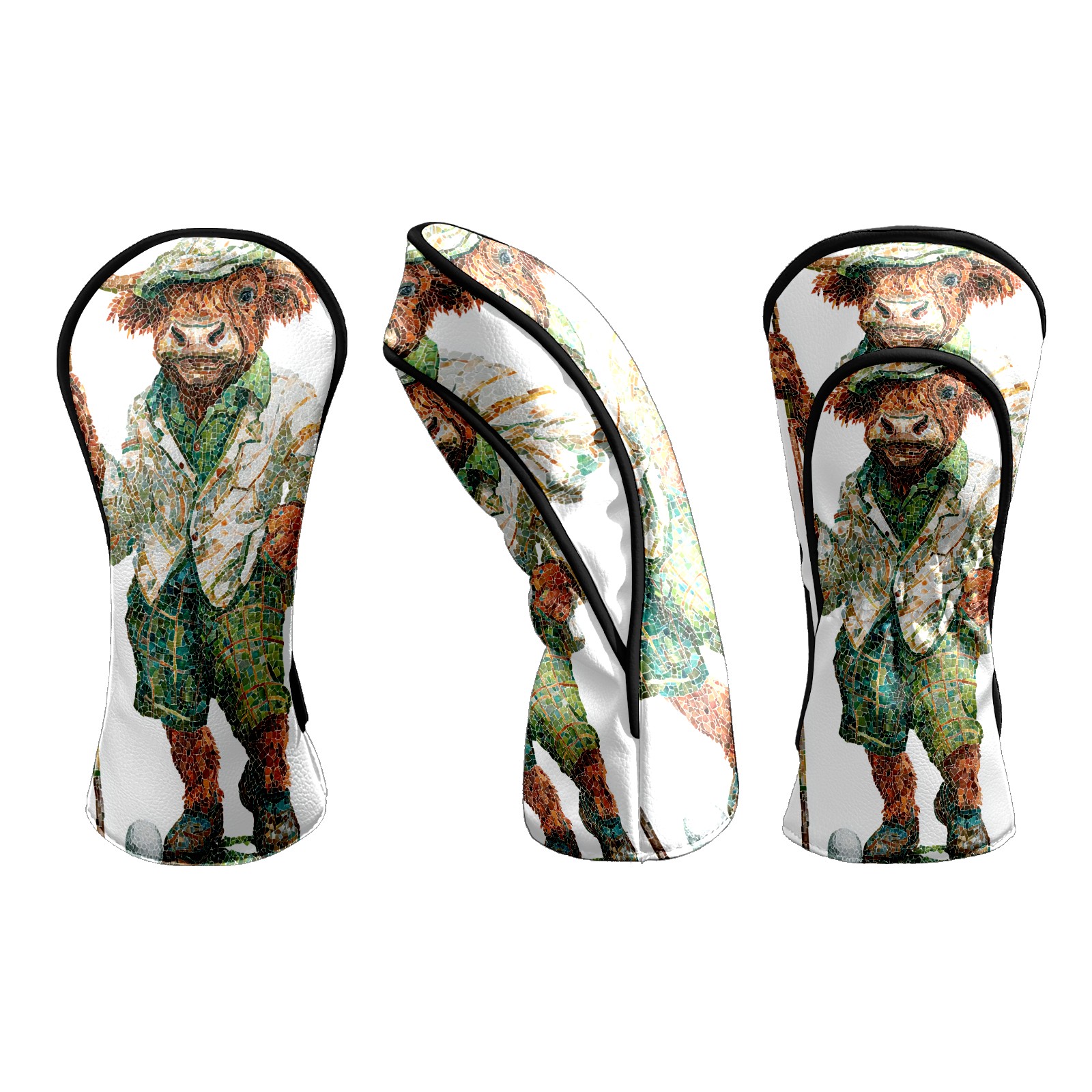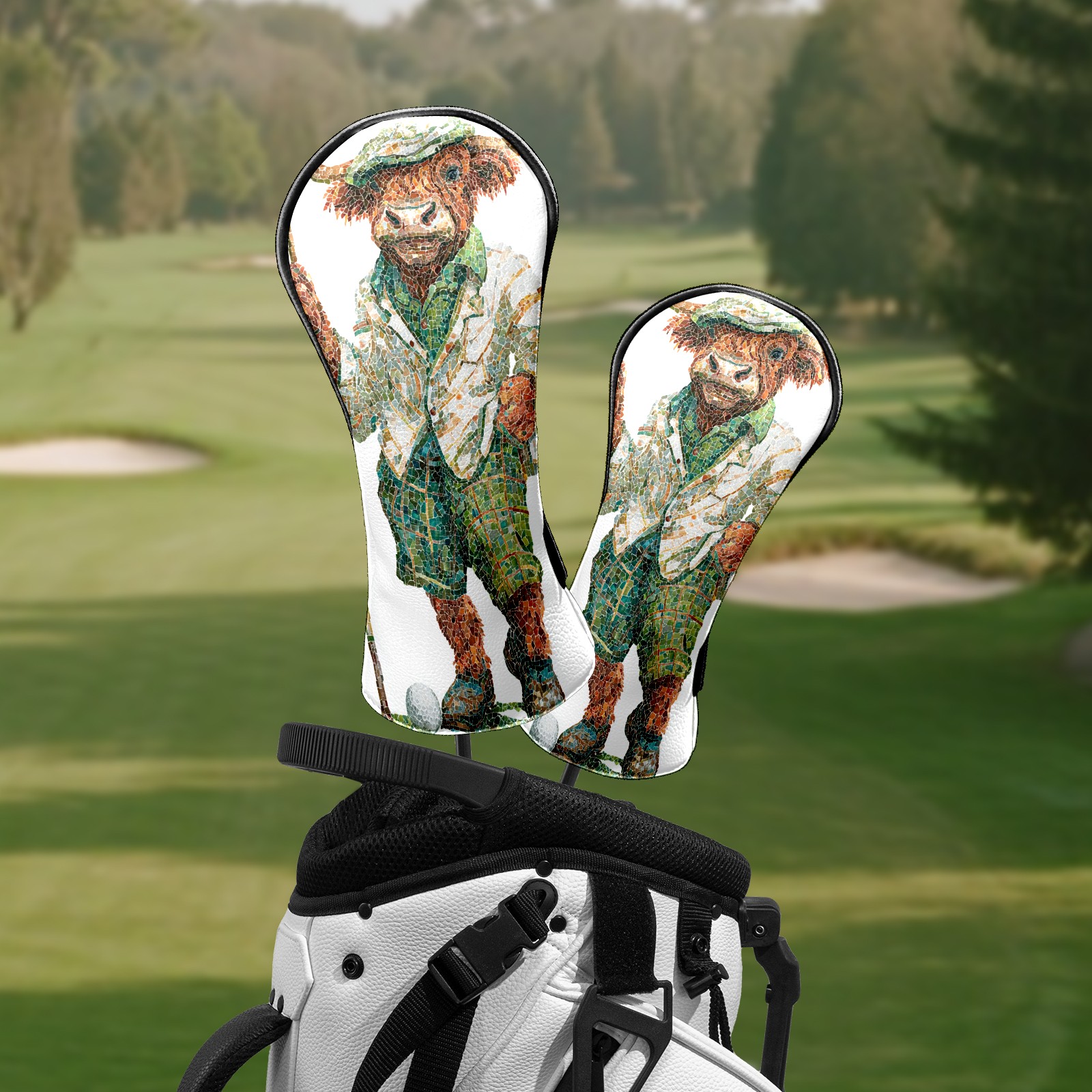 Golf Club Head Covers - Vintage Cow Green Driver Fairway Headcover, Premium PU Leather, Protective Velvet Lining, Secure Elastic Band, Fits All Golf Brands, Perfect Gift for Golfers Men Women