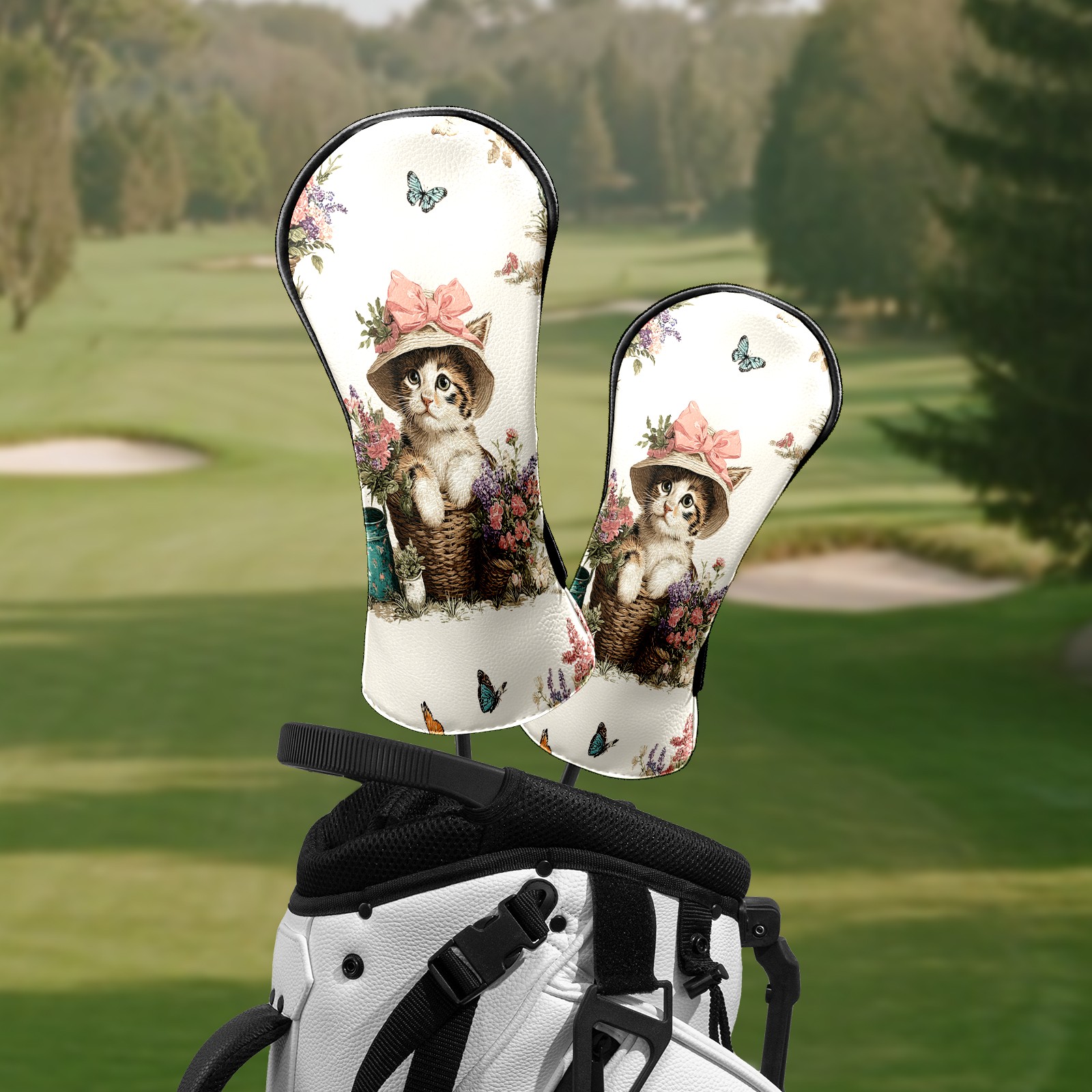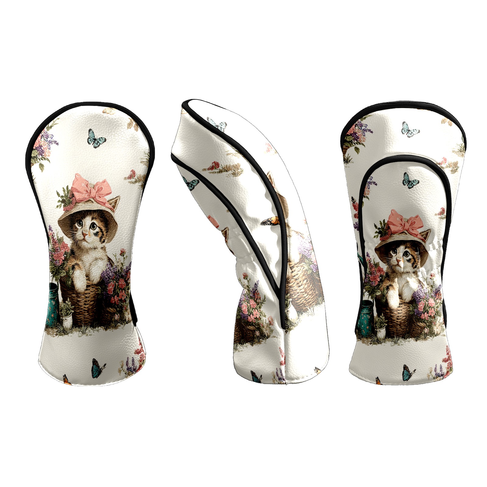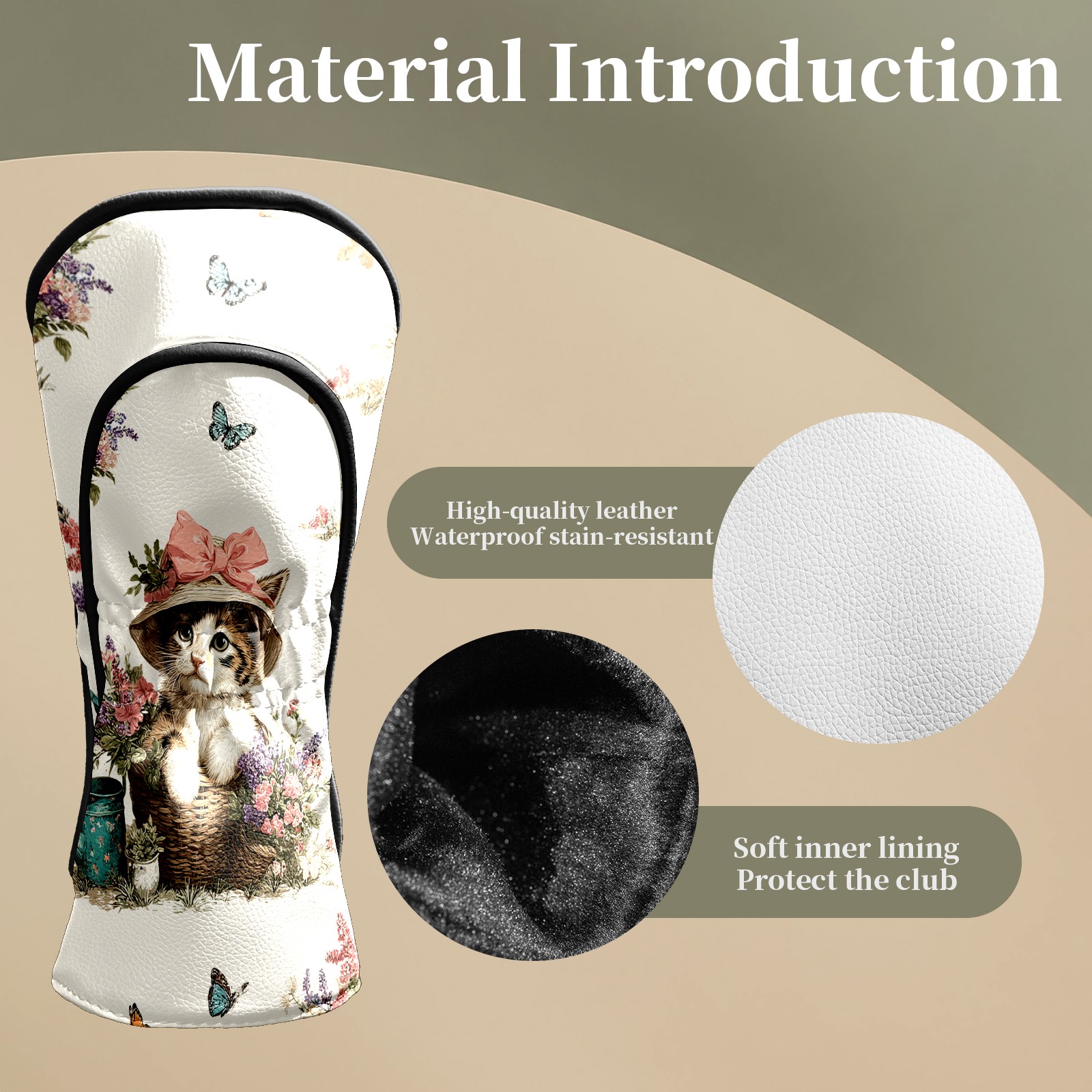 Golf Club Head Covers - Cat Beige Driver Fairway Headcover, Premium PU Leather, Protective Velvet Lining, Secure Elastic Band, Fits All Golf Brands, Perfect Gift for Golfers Men Women