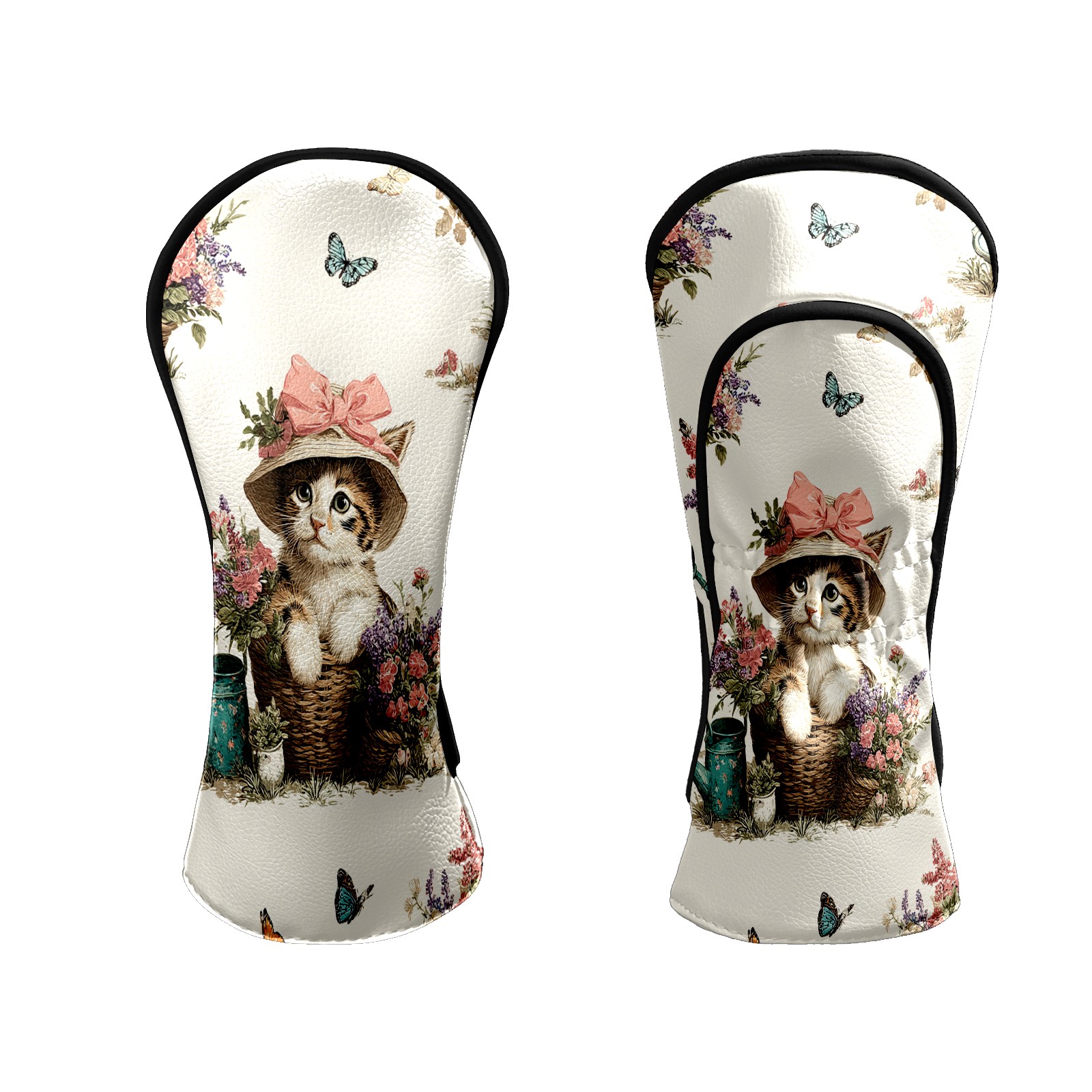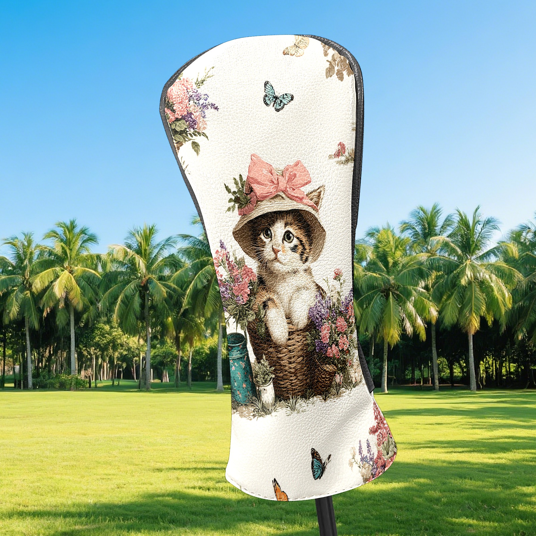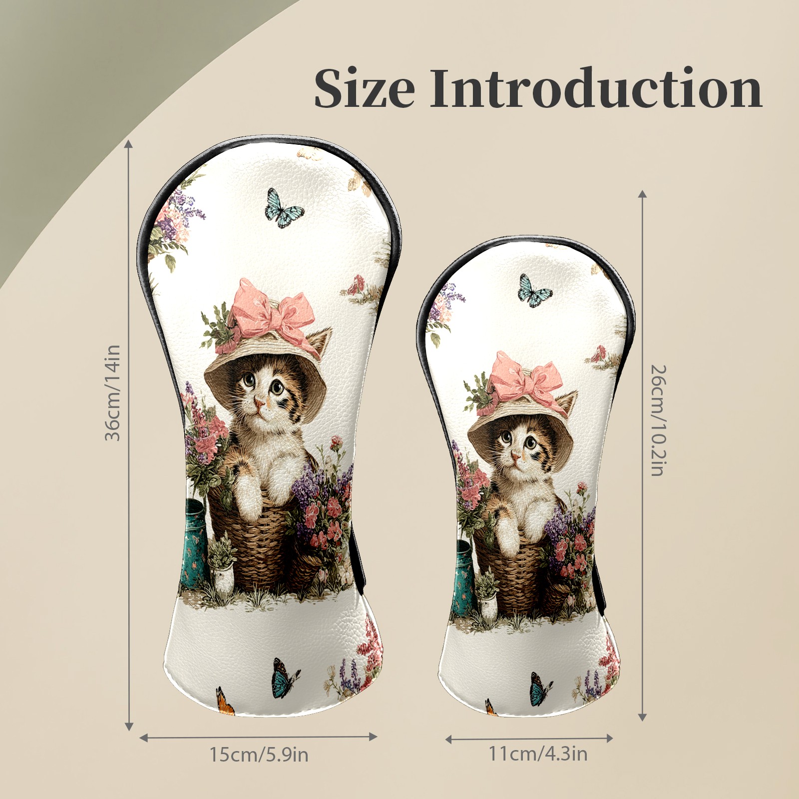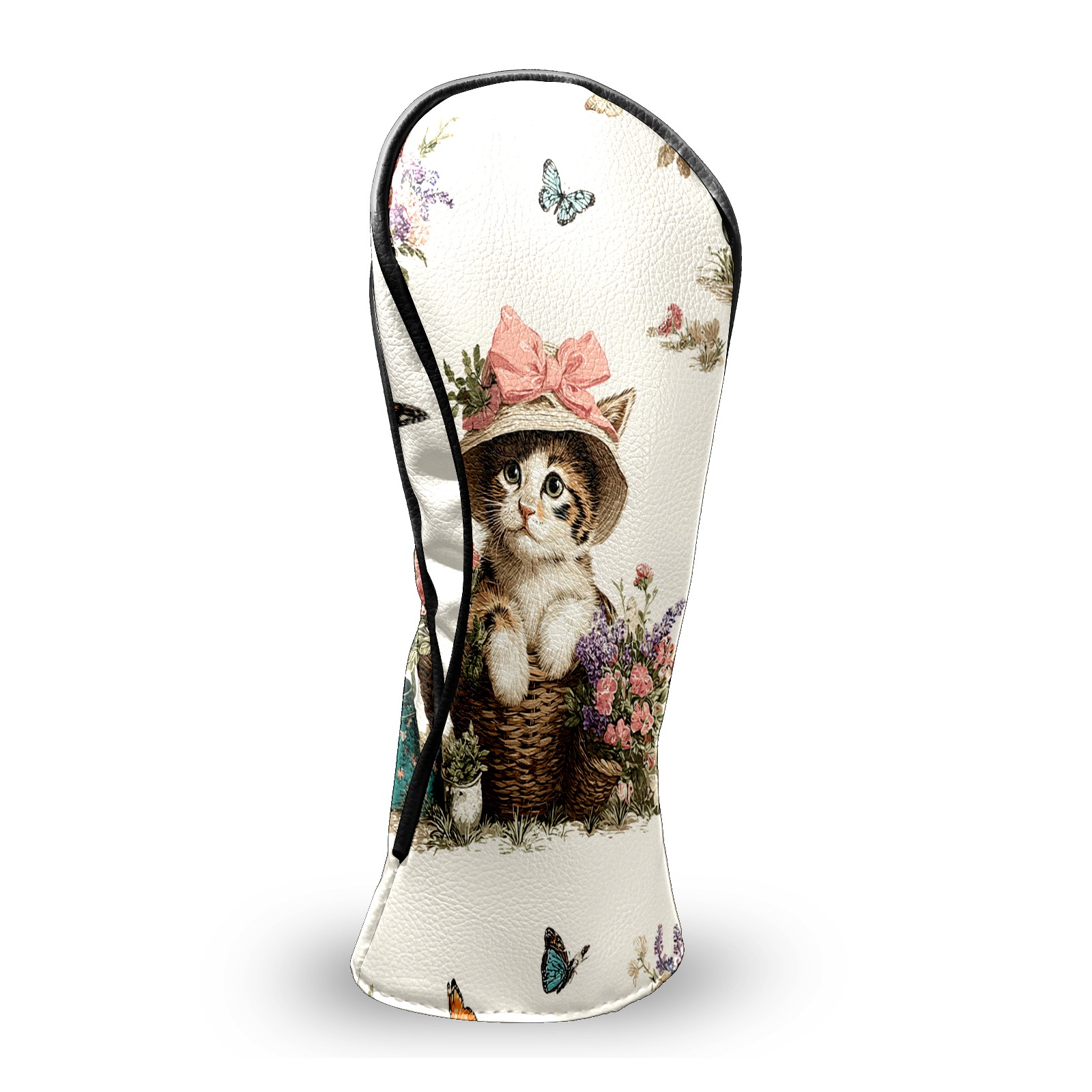 Golf Club Head Covers - Cat Beige Driver Fairway Headcover, Premium PU Leather, Protective Velvet Lining, Secure Elastic Band, Fits All Golf Brands, Perfect Gift for Golfers Men Women