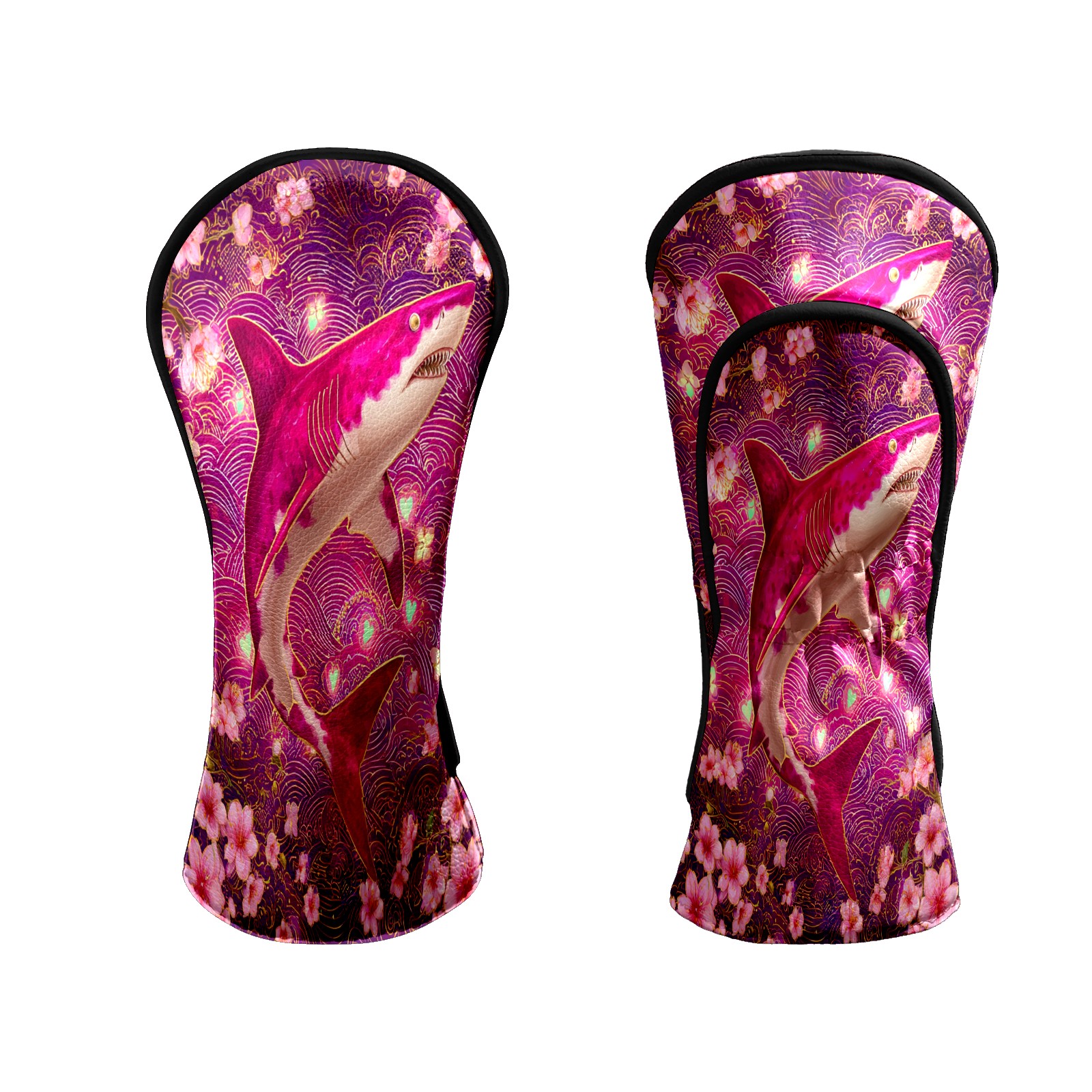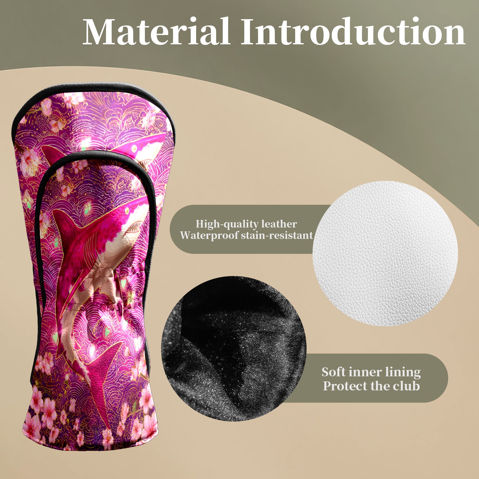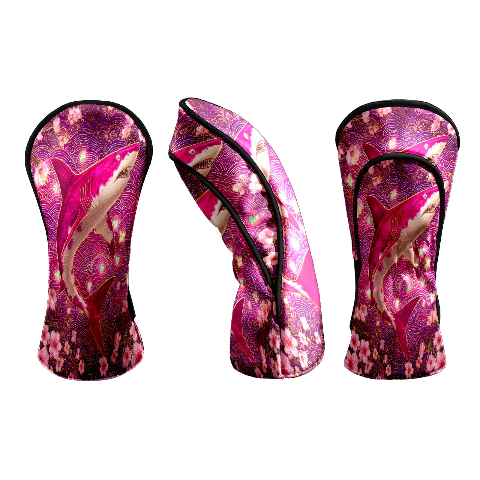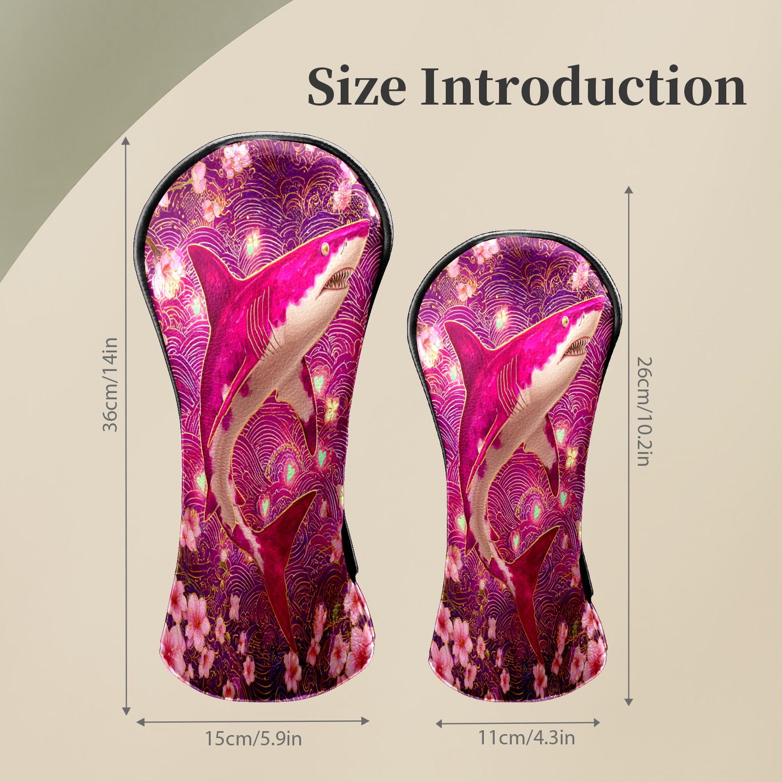 Golf Club Head Covers - Pink Shark Driver Fairway Headcover, Premium PU Leather, Protective Velvet Lining, Secure Elastic Band, Fits All Golf Brands, Perfect Gift for Golfers Men Women