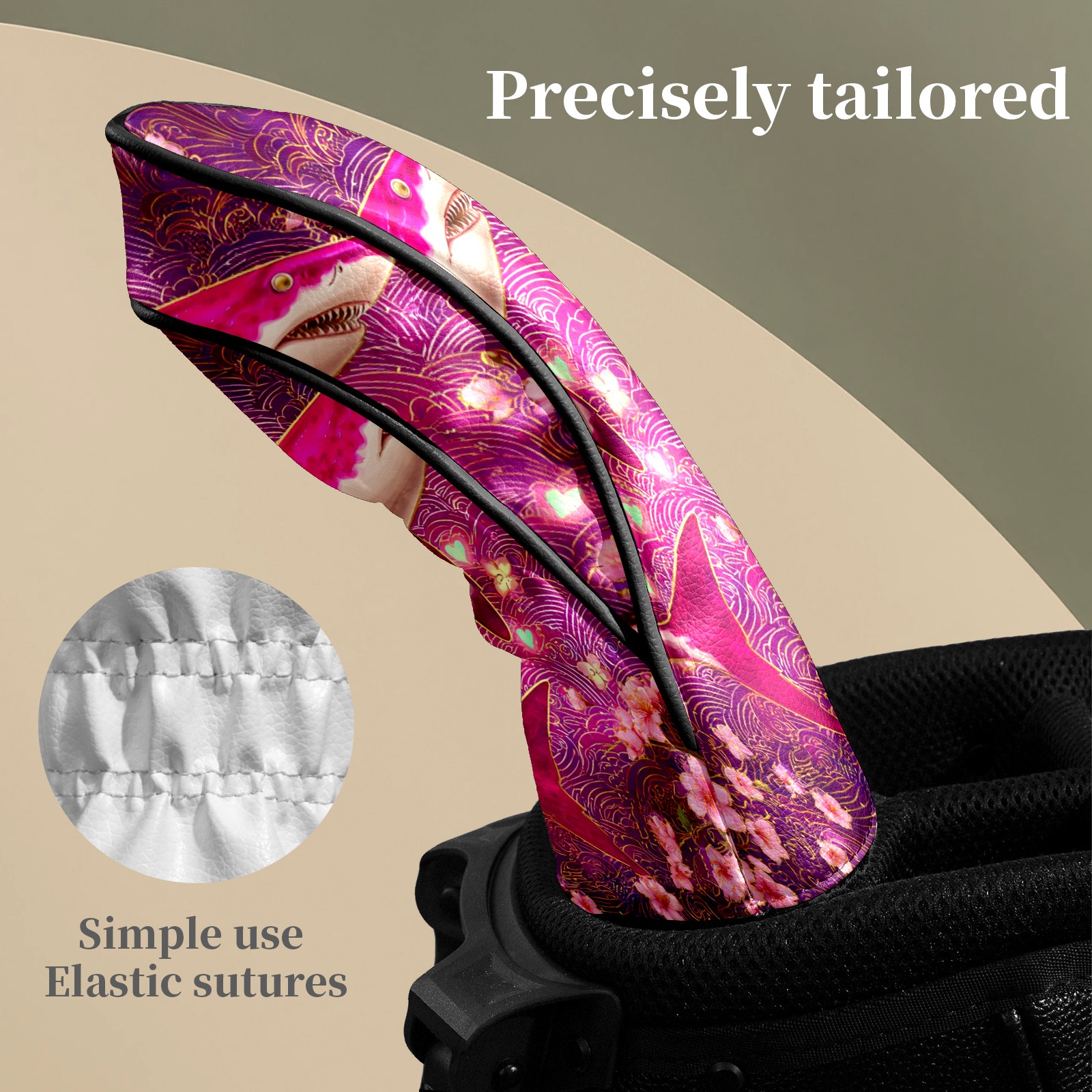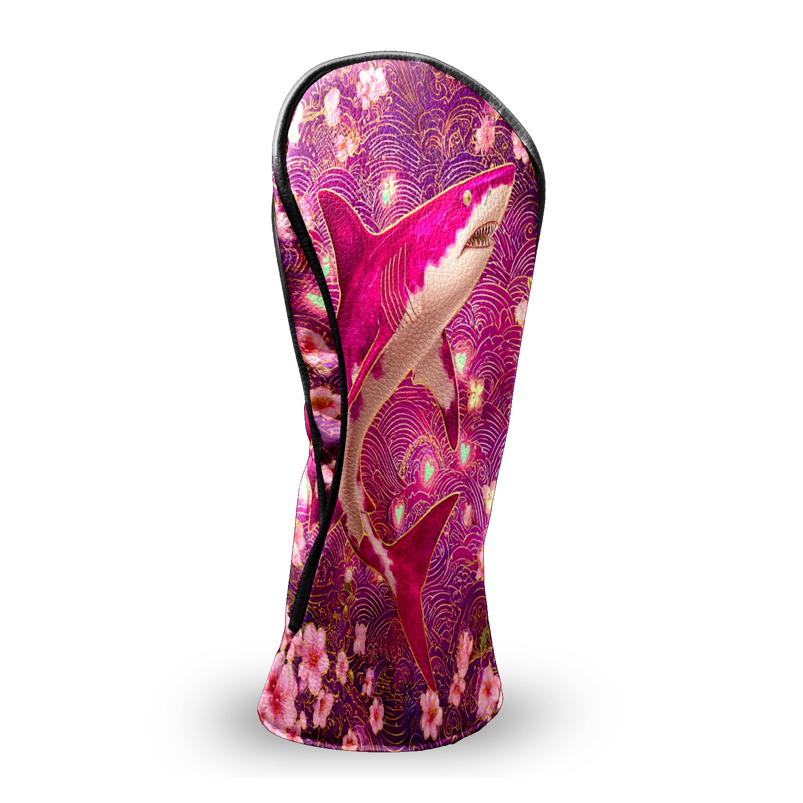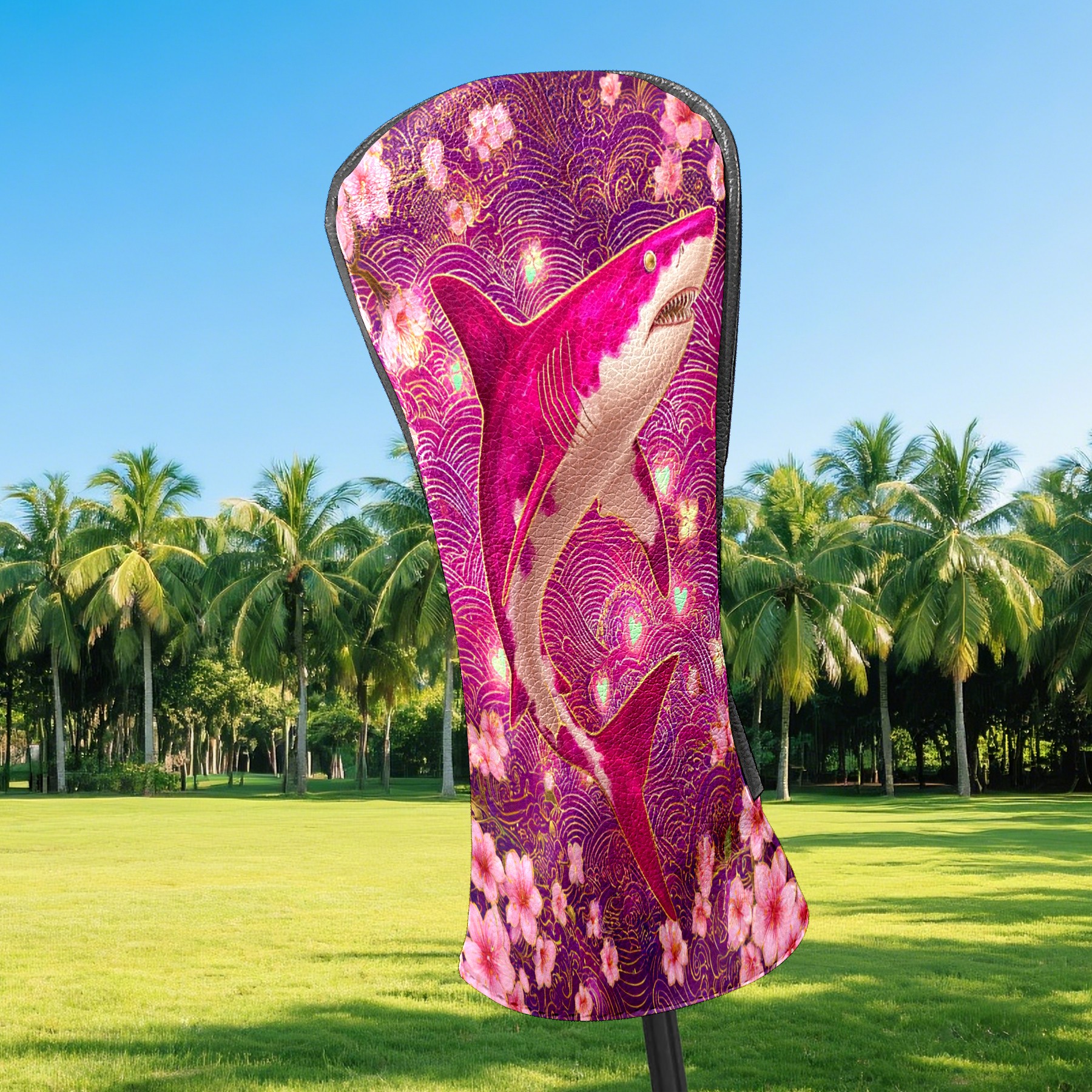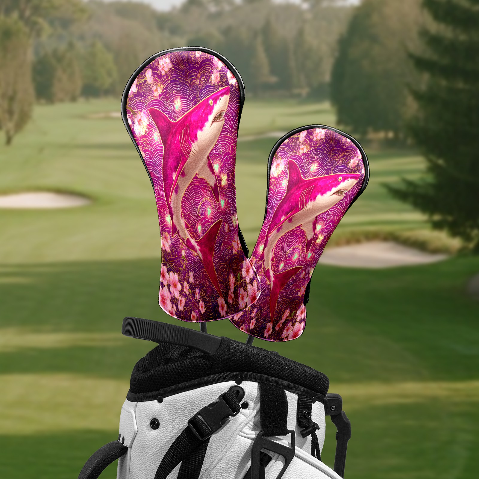 Golf Club Head Covers - Pink Shark Driver Fairway Headcover, Premium PU Leather, Protective Velvet Lining, Secure Elastic Band, Fits All Golf Brands, Perfect Gift for Golfers Men Women