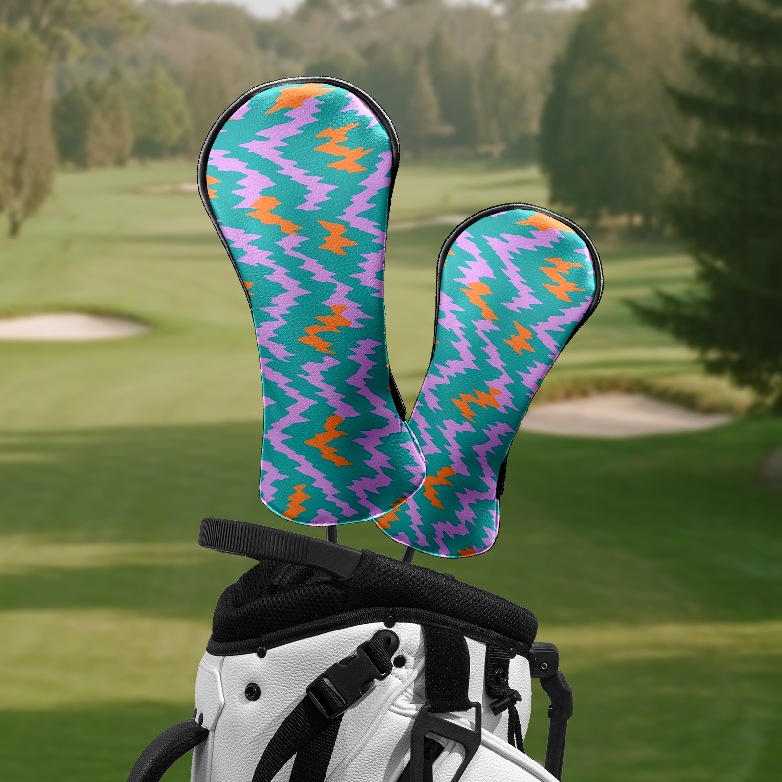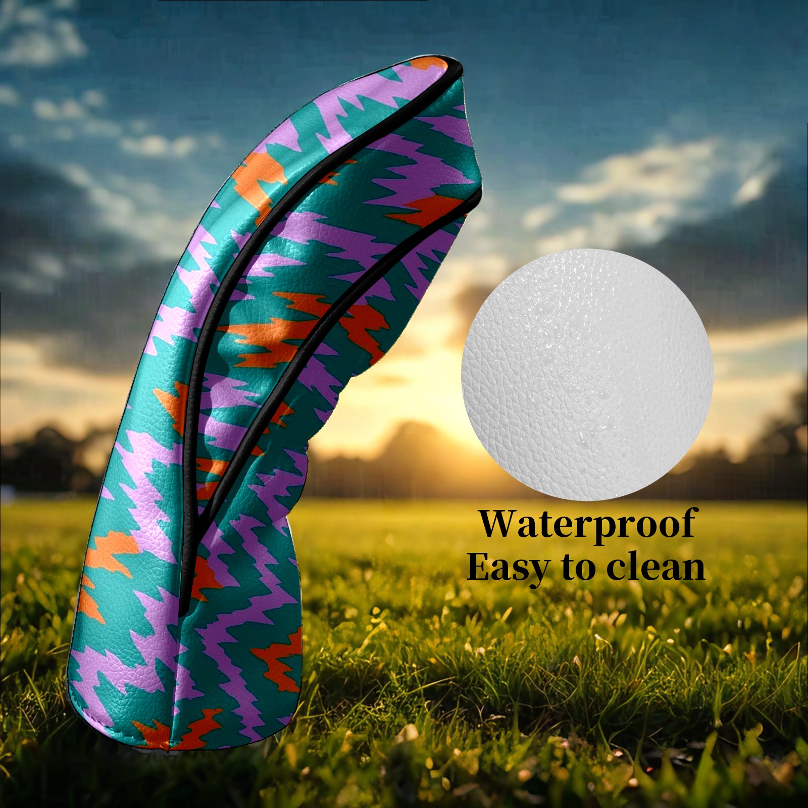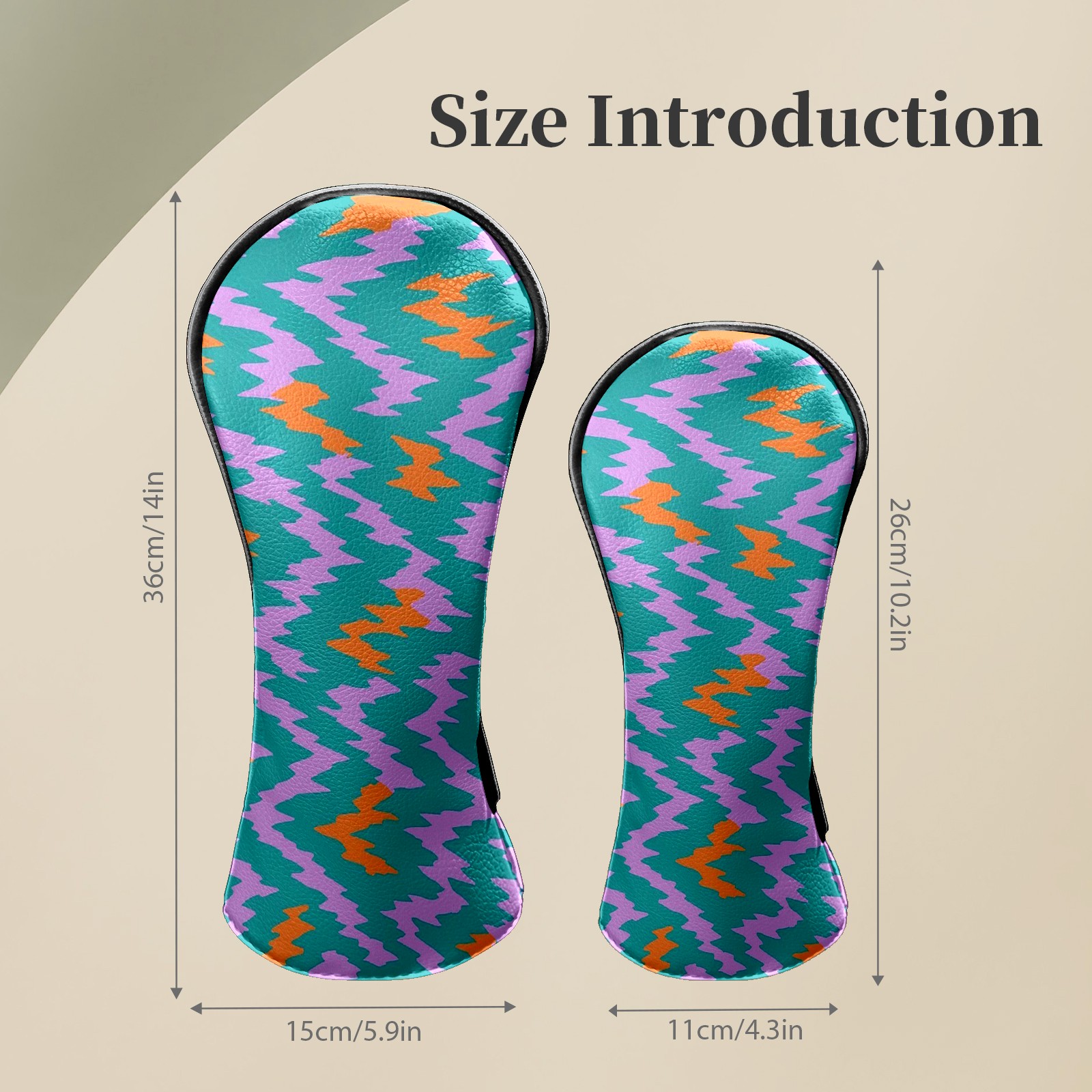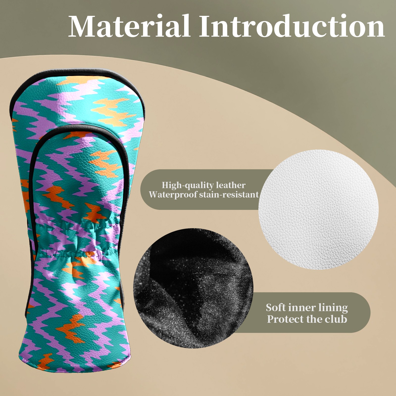 Golf Club Head Covers - Wave Pattern Green Driver Fairway Headcover, Premium PU Leather, Protective Velvet Lining, Secure Elastic Band, Fits All Golf Brands, Perfect Gift for Golfers Men Women