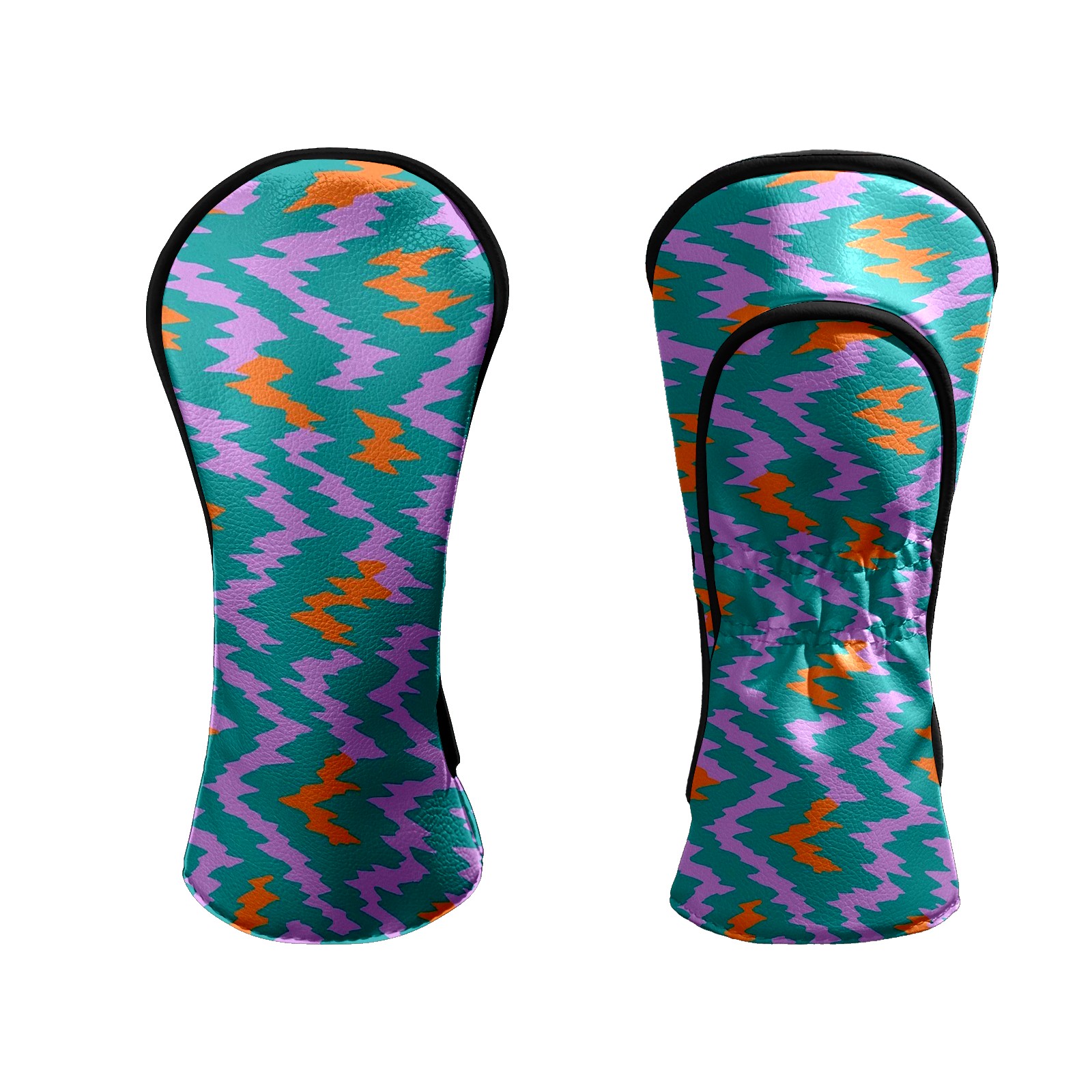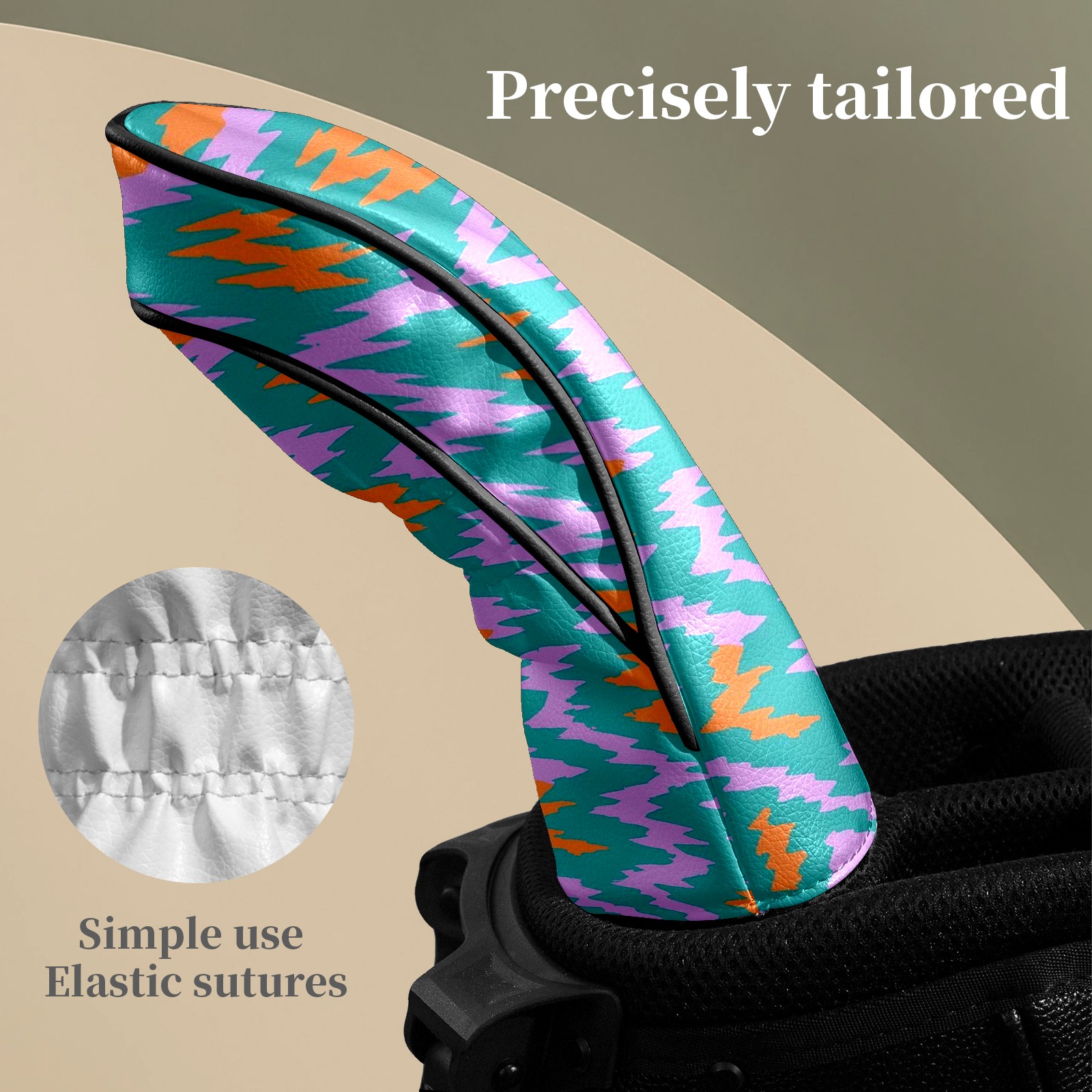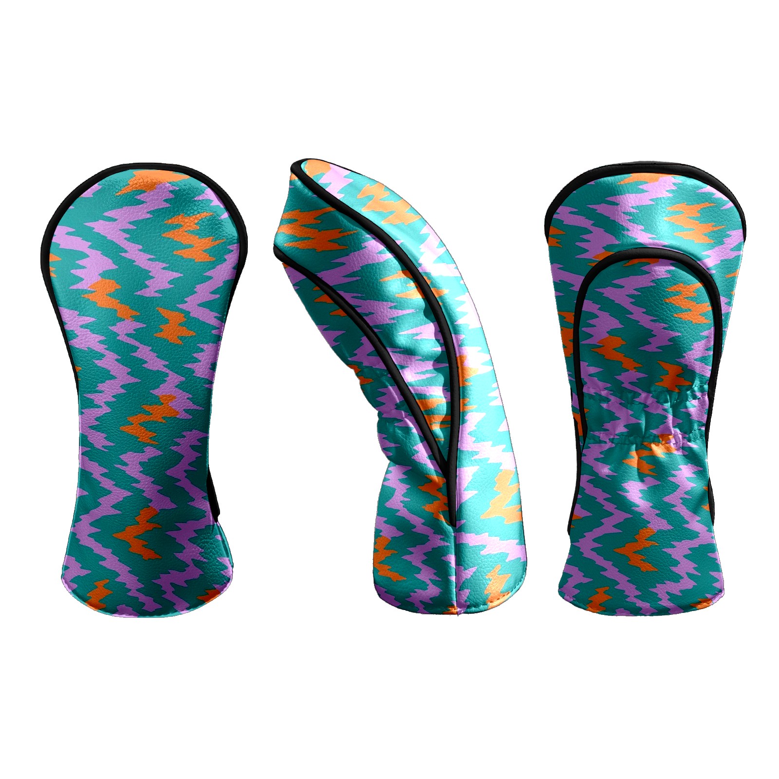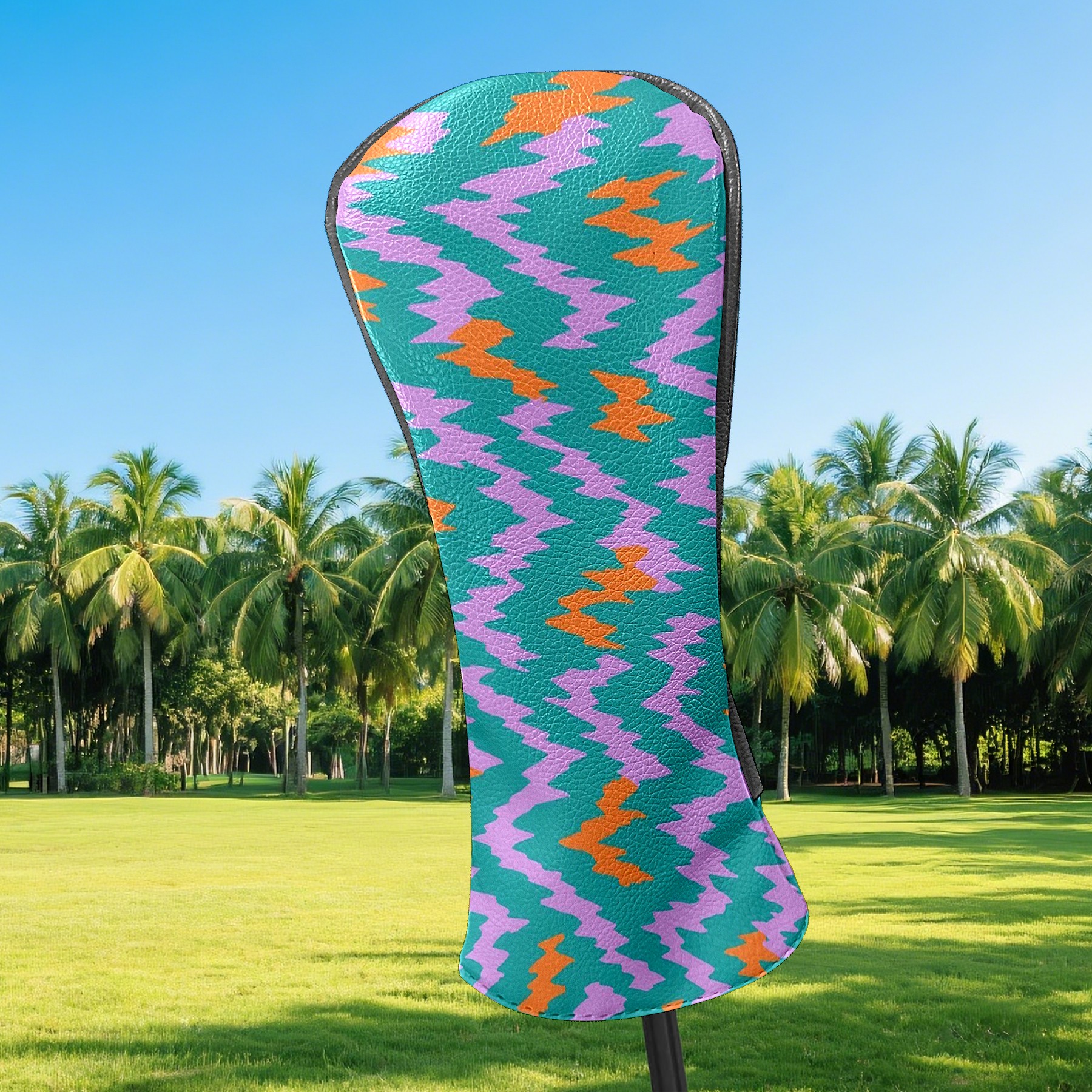 Golf Club Head Covers - Wave Pattern Green Driver Fairway Headcover, Premium PU Leather, Protective Velvet Lining, Secure Elastic Band, Fits All Golf Brands, Perfect Gift for Golfers Men Women