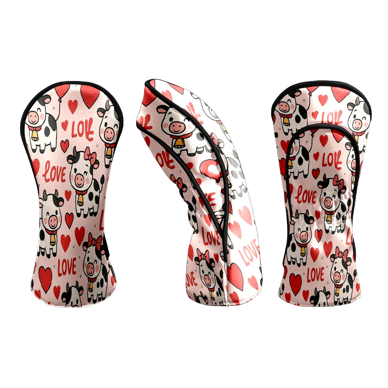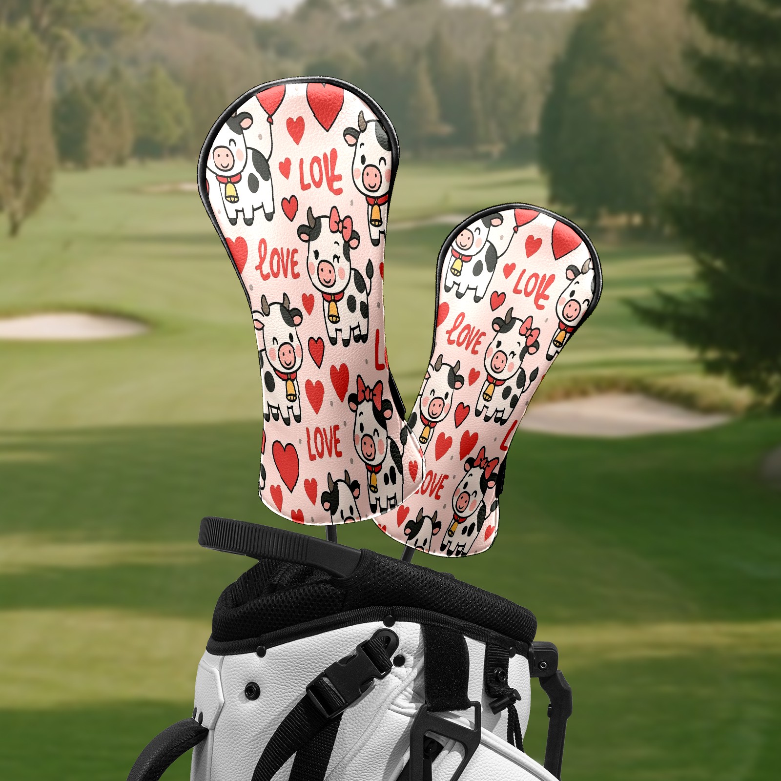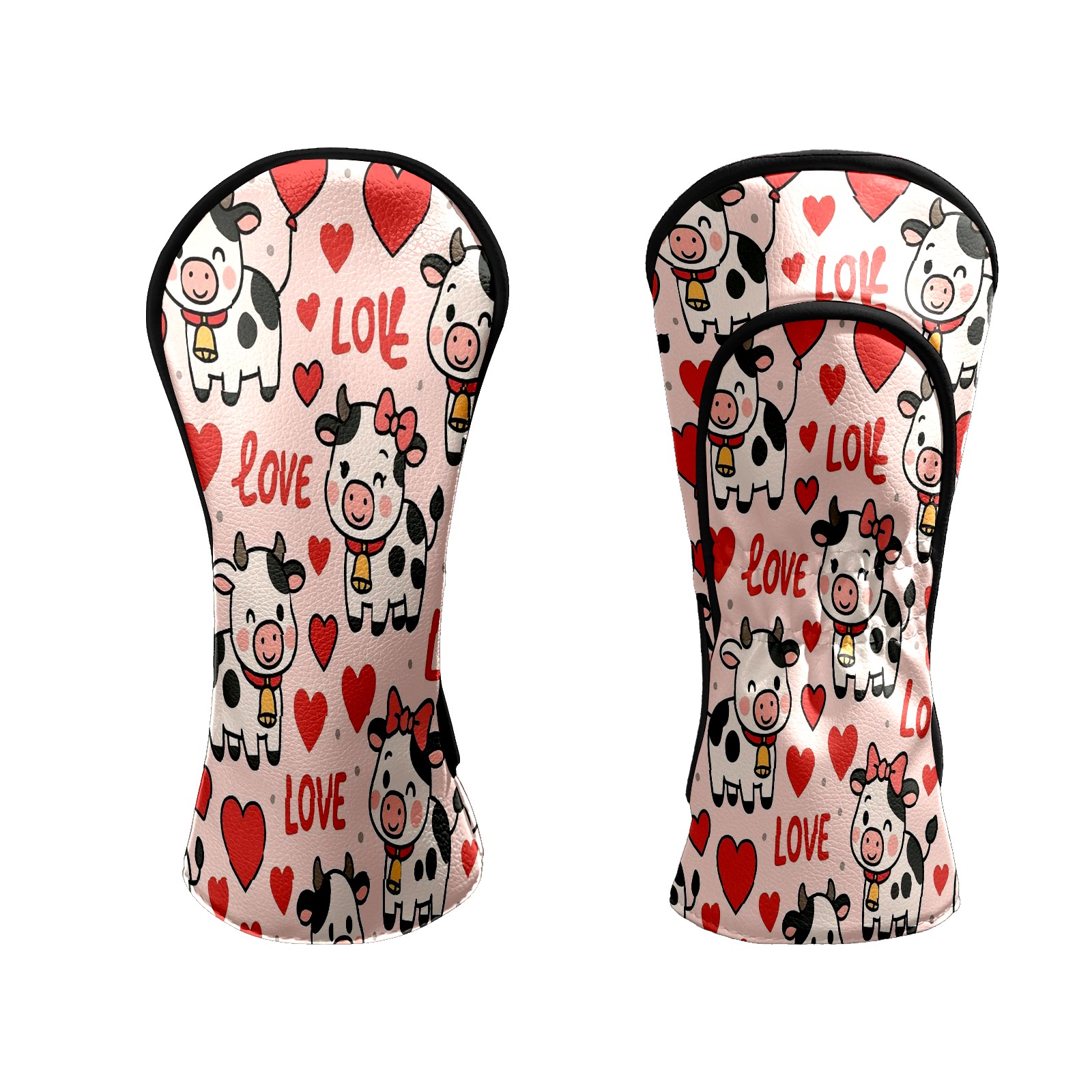 Golf Club Head Covers - Cow Hearts Pink Driver Fairway Headcover, Premium PU Leather, Protective Velvet Lining, Secure Elastic Band, Fits All Golf Brands, Perfect Gift for Golfers Men Women