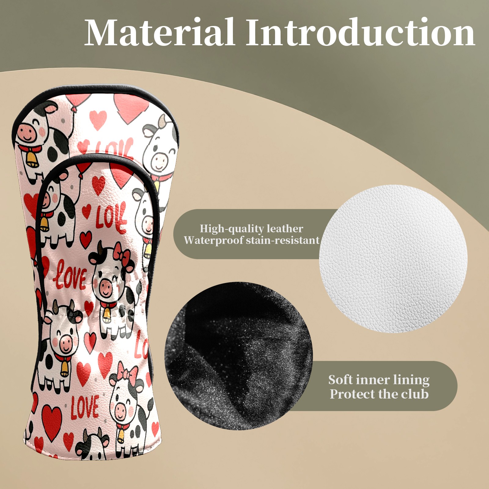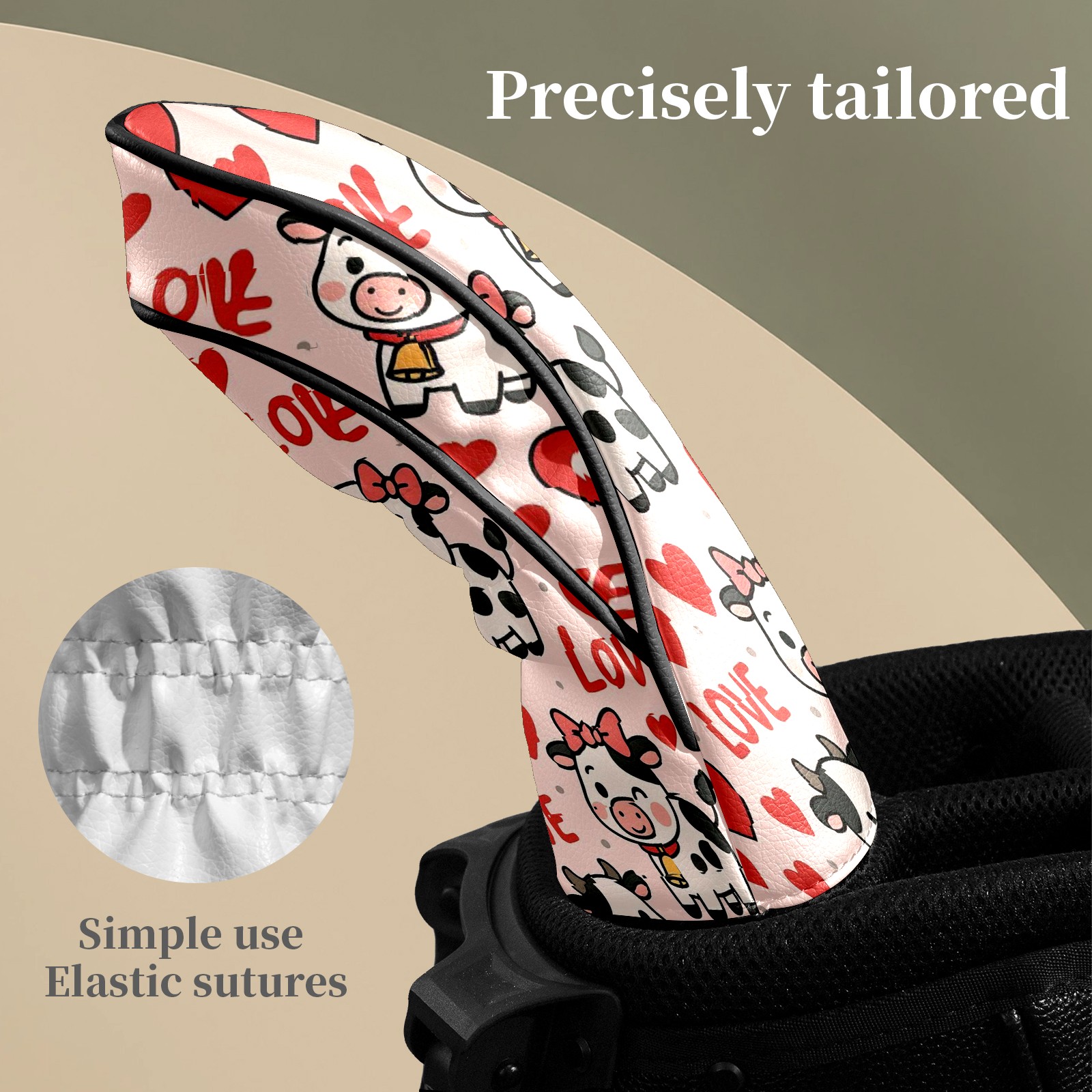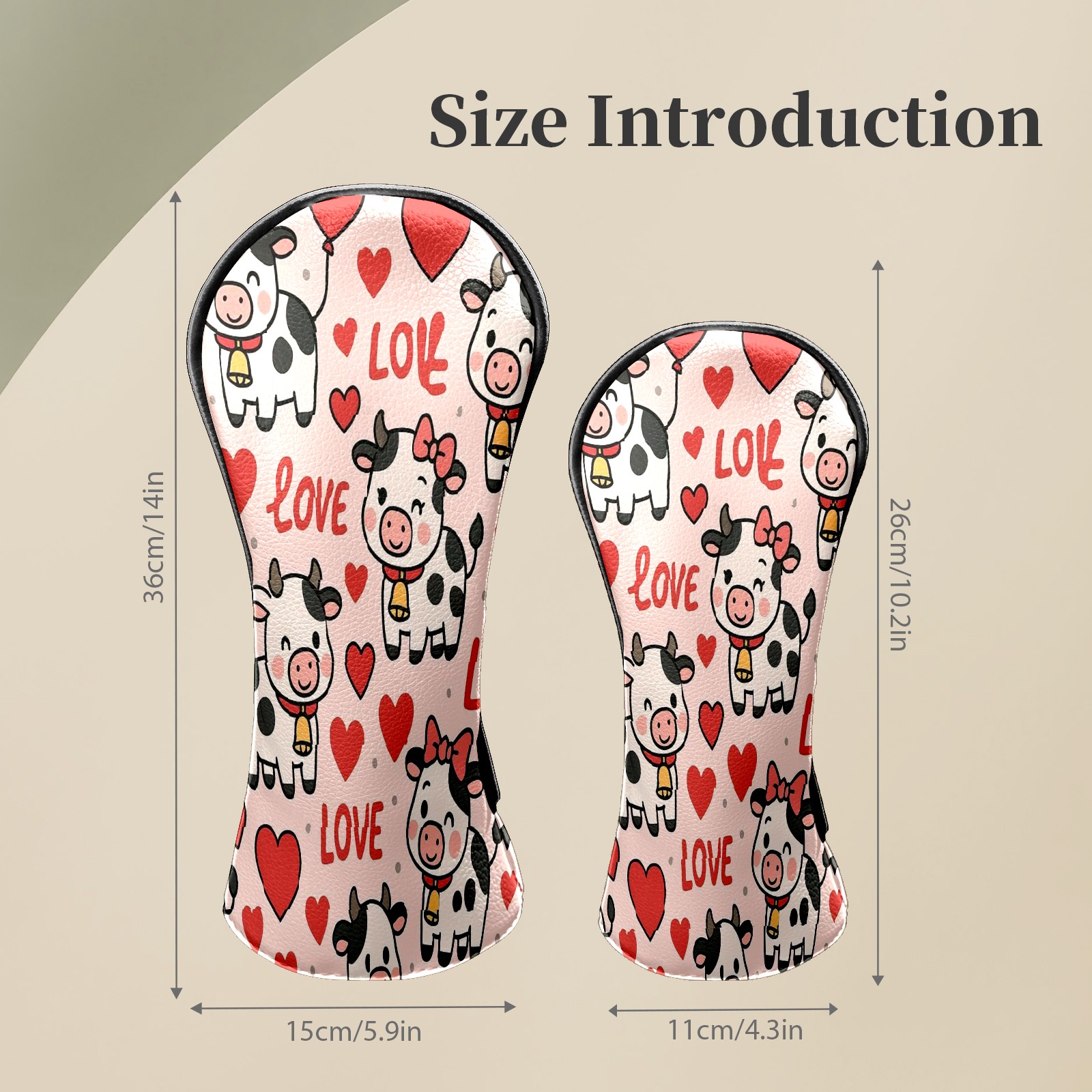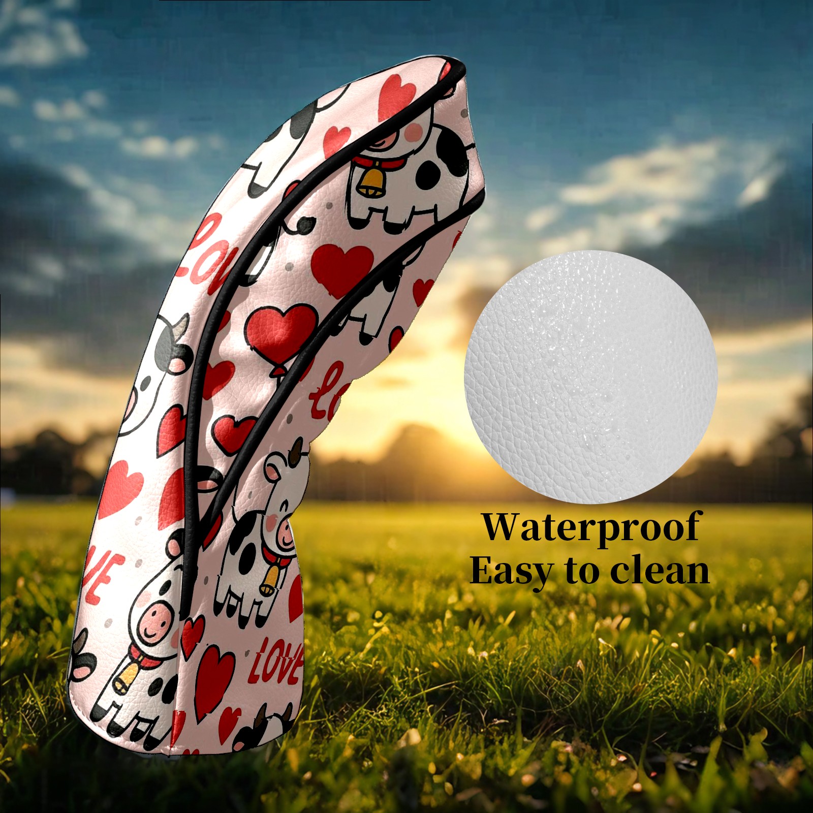 Golf Club Head Covers - Cow Hearts Pink Driver Fairway Headcover, Premium PU Leather, Protective Velvet Lining, Secure Elastic Band, Fits All Golf Brands, Perfect Gift for Golfers Men Women
