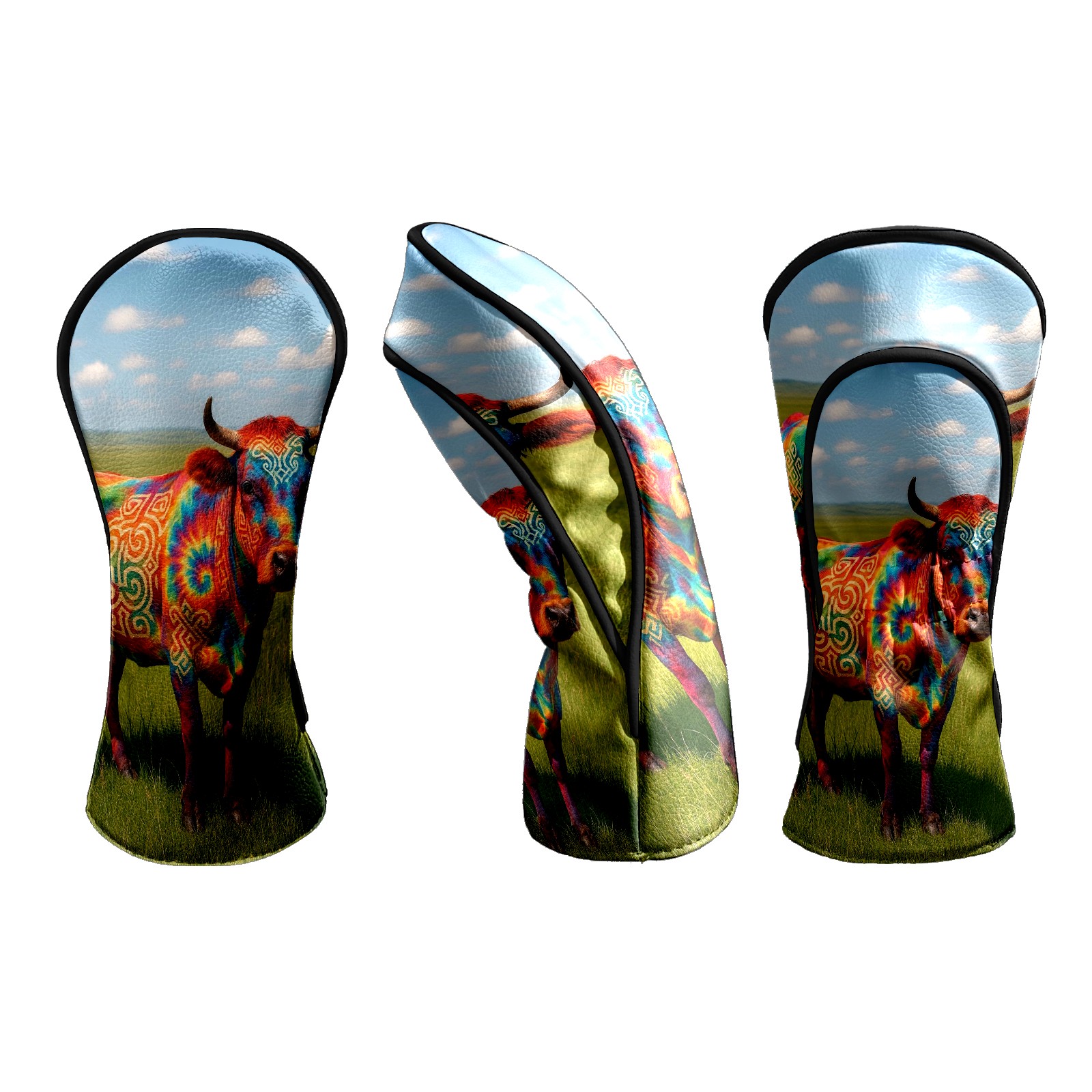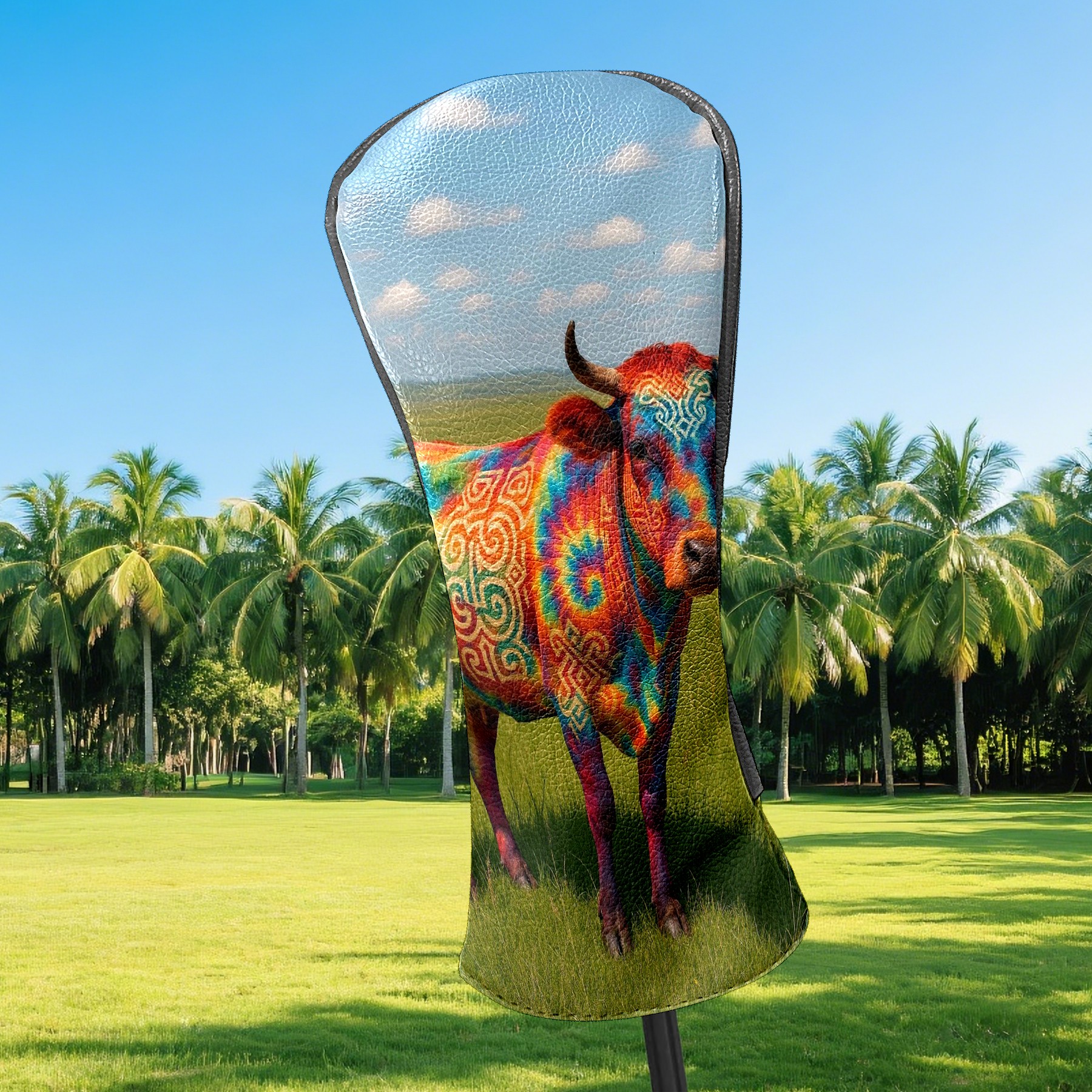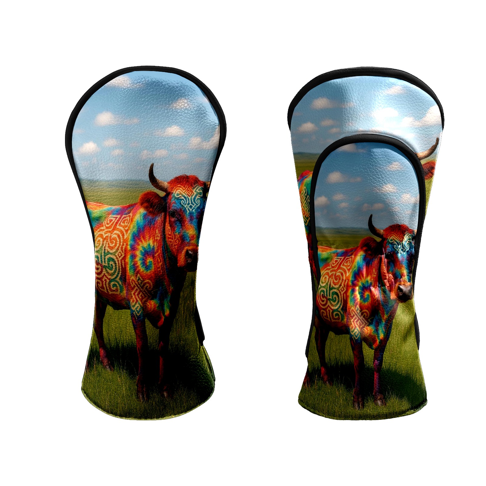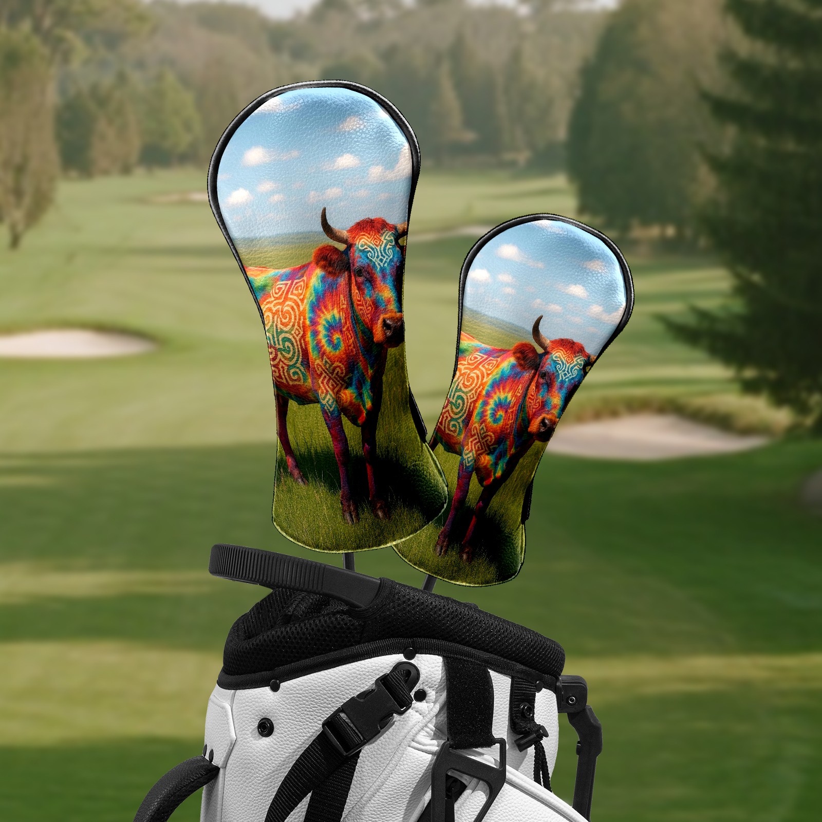 Golf Club Head Covers - Colorful Cow Green Driver Fairway Headcover, Premium PU Leather, Protective Velvet Lining, Secure Elastic Band, Fits All Golf Brands, Perfect Gift for Golfers Men Women
