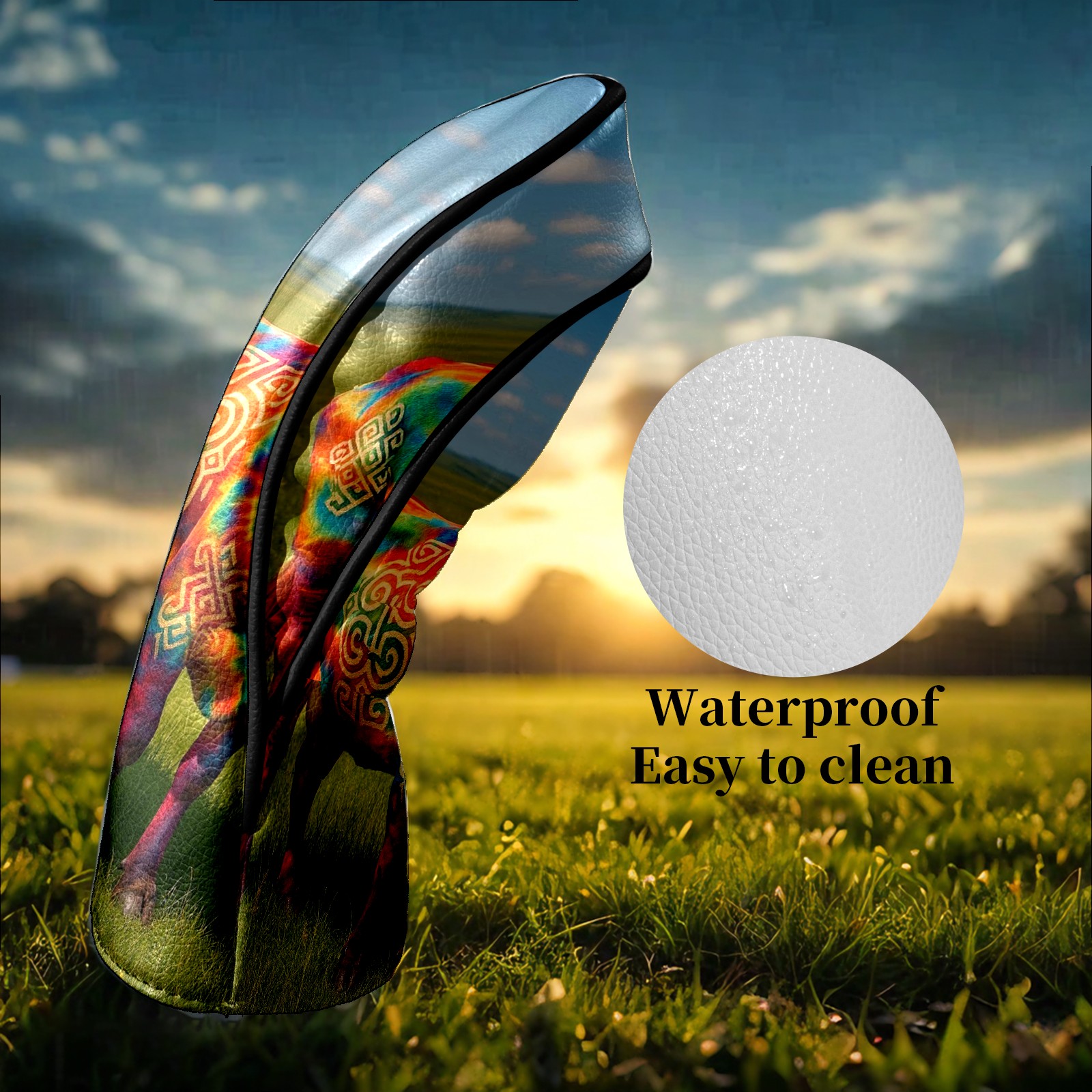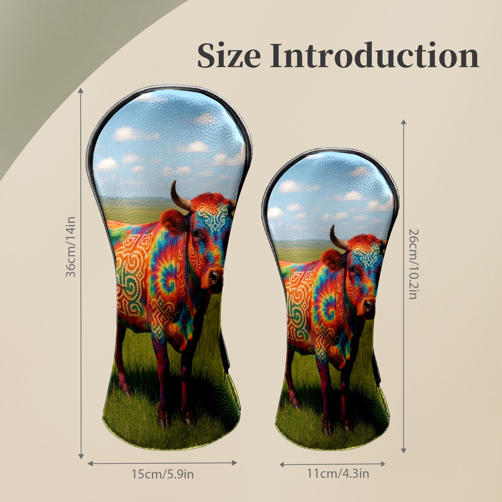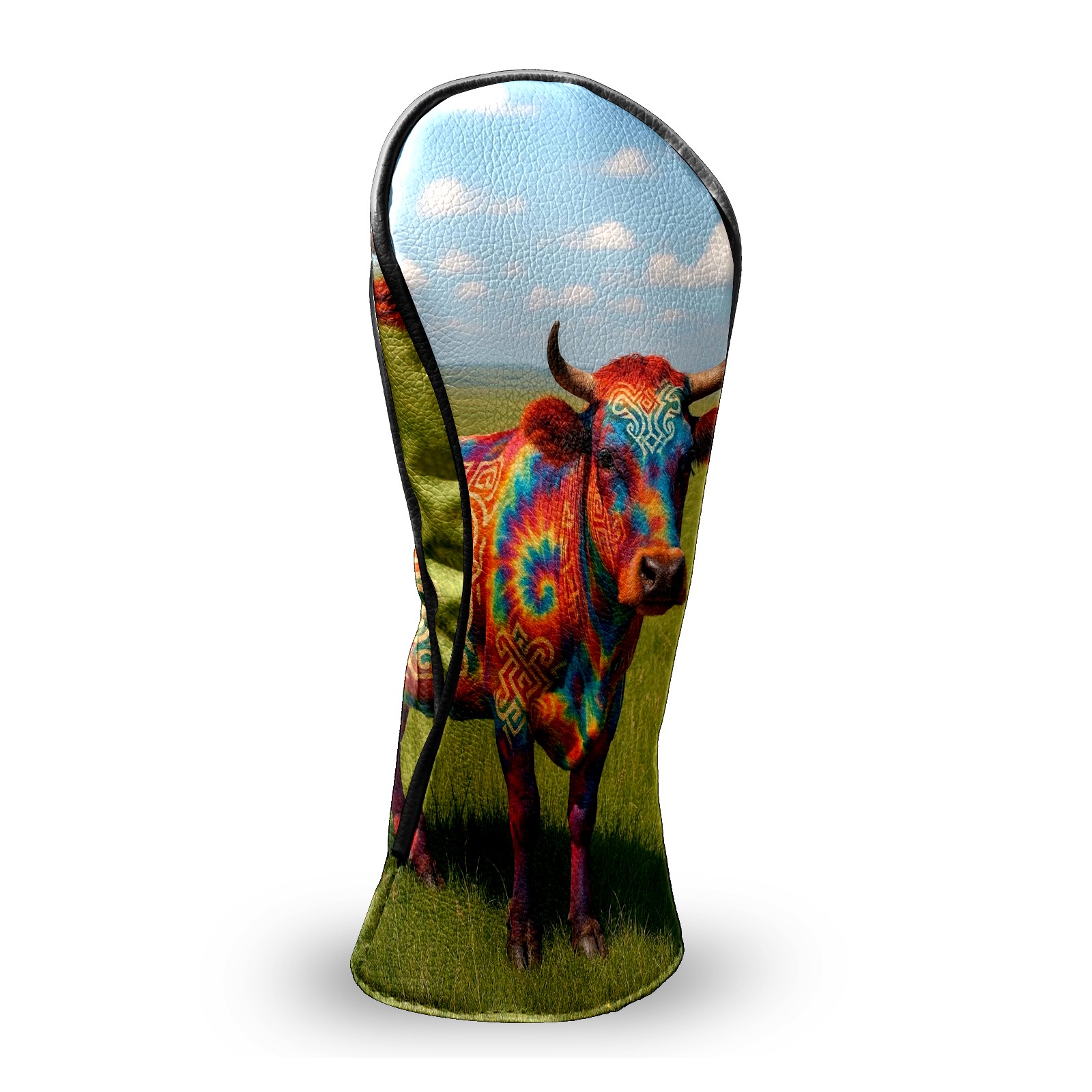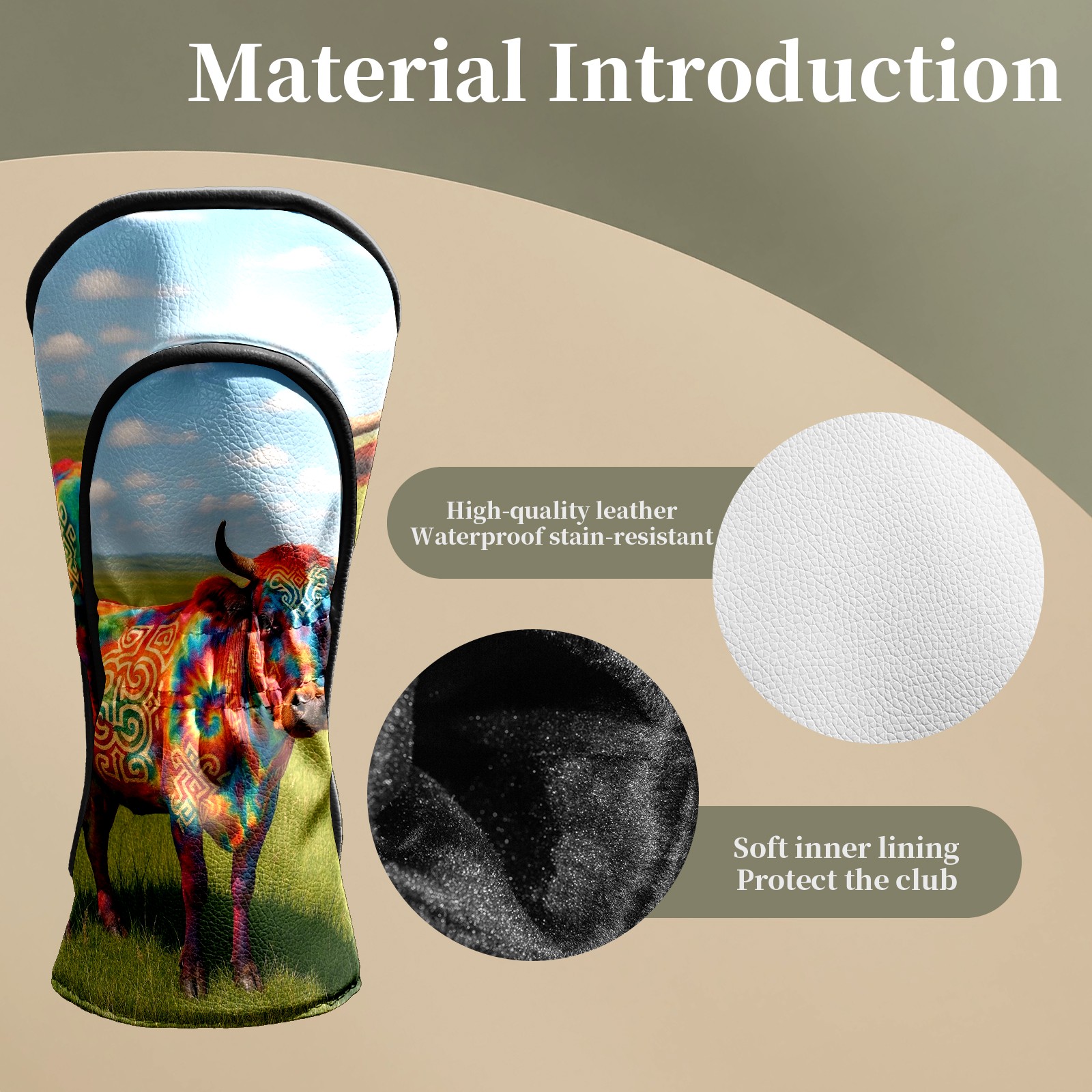Golf Club Head Covers - Colorful Cow Green Driver Fairway Headcover, Premium PU Leather, Protective Velvet Lining, Secure Elastic Band, Fits All Golf Brands, Perfect Gift for Golfers Men Women