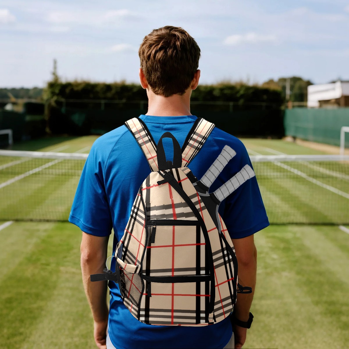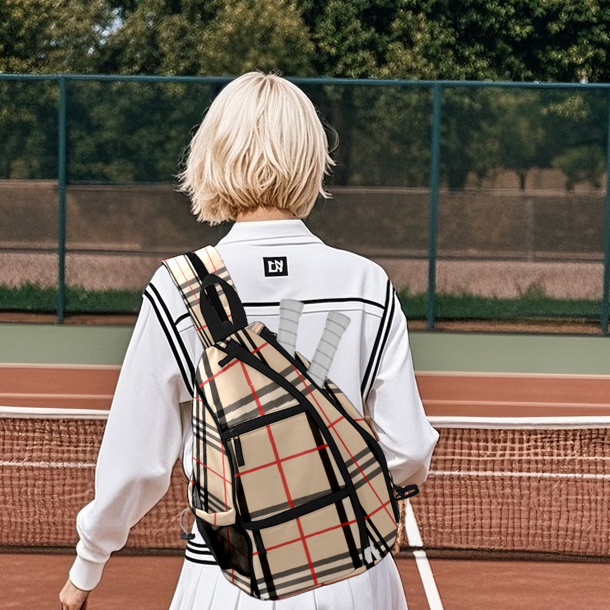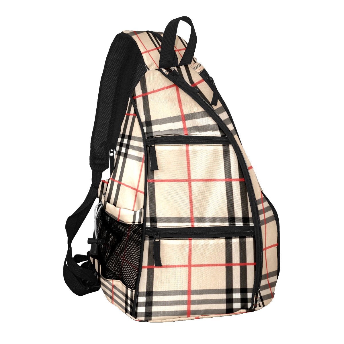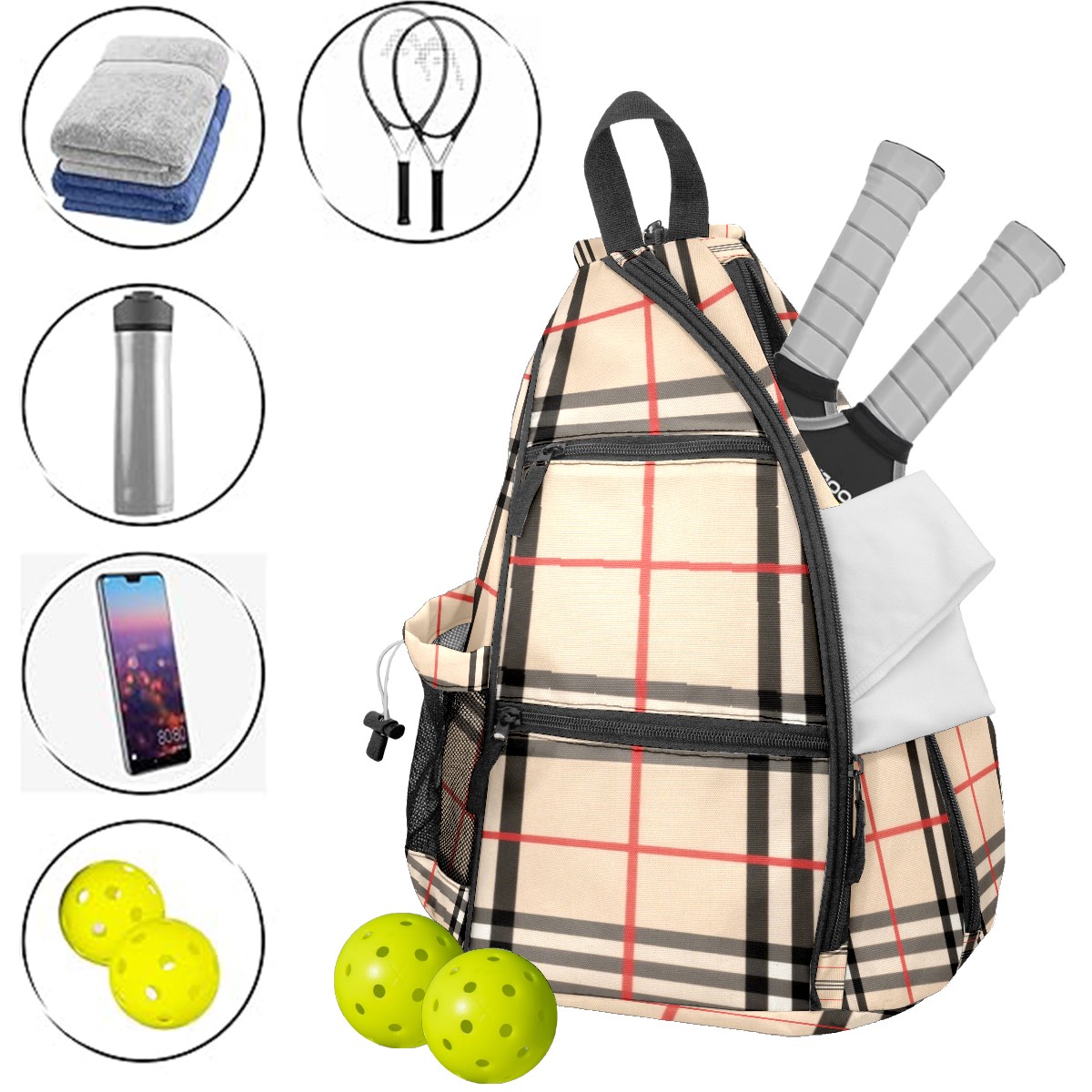 Pickleball Sling Bag for Women and Men - Backpack with Nylon Fabric/Woven Strap/Mesh Pocket/Fence Hook/Adjustable Bag Plaid