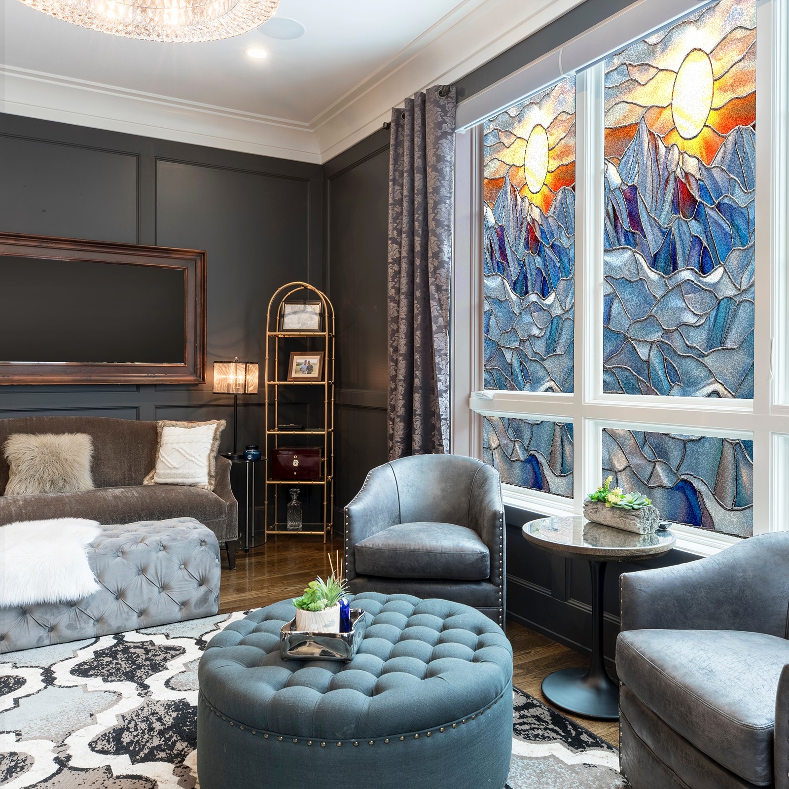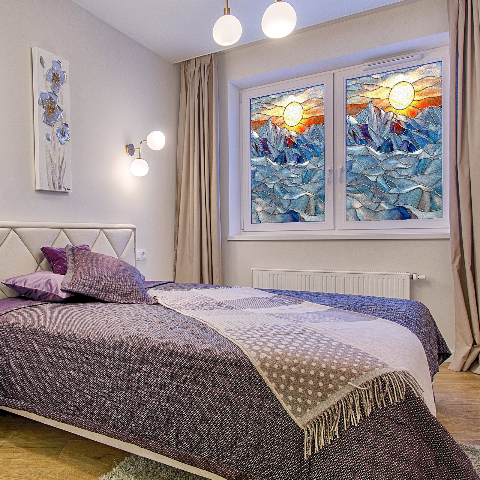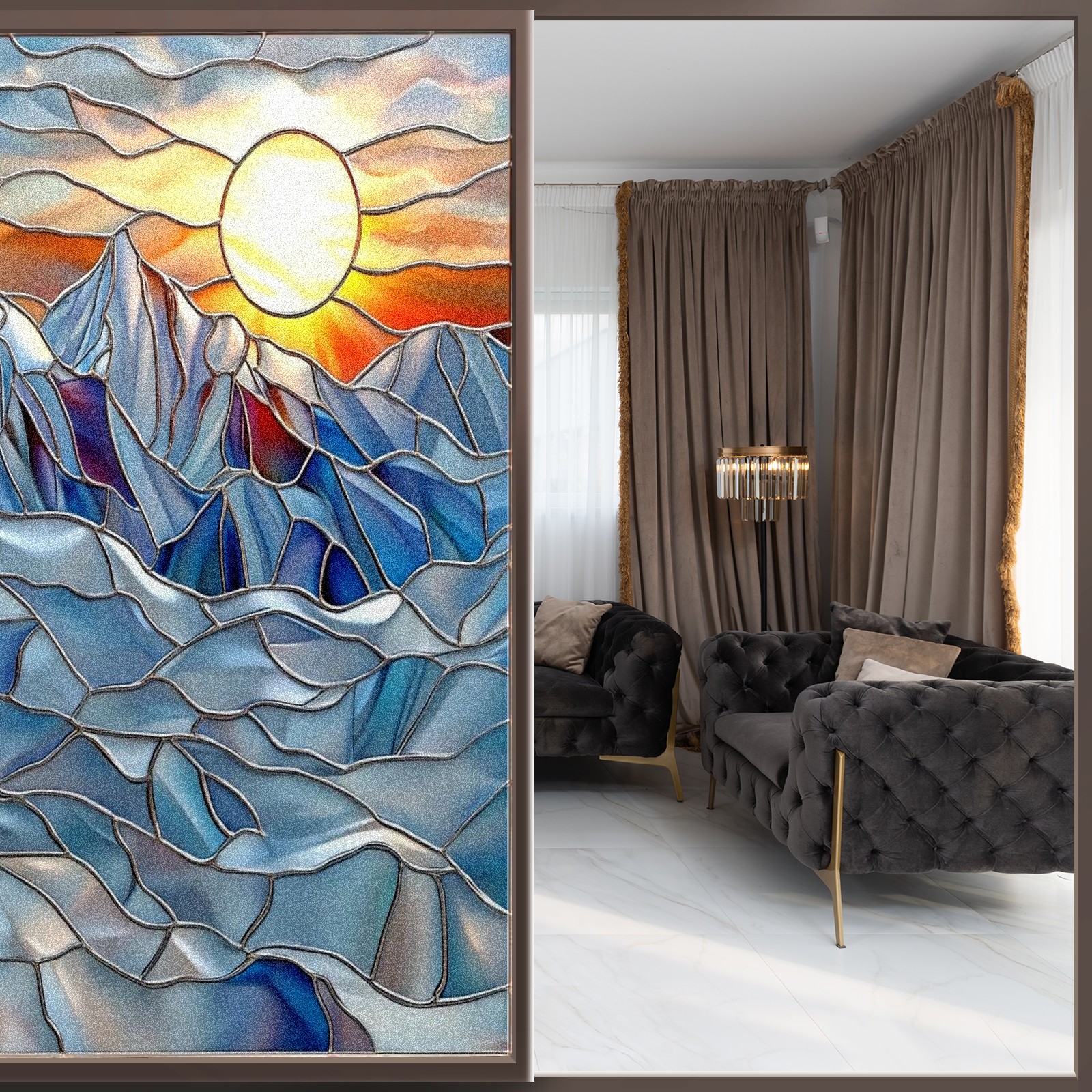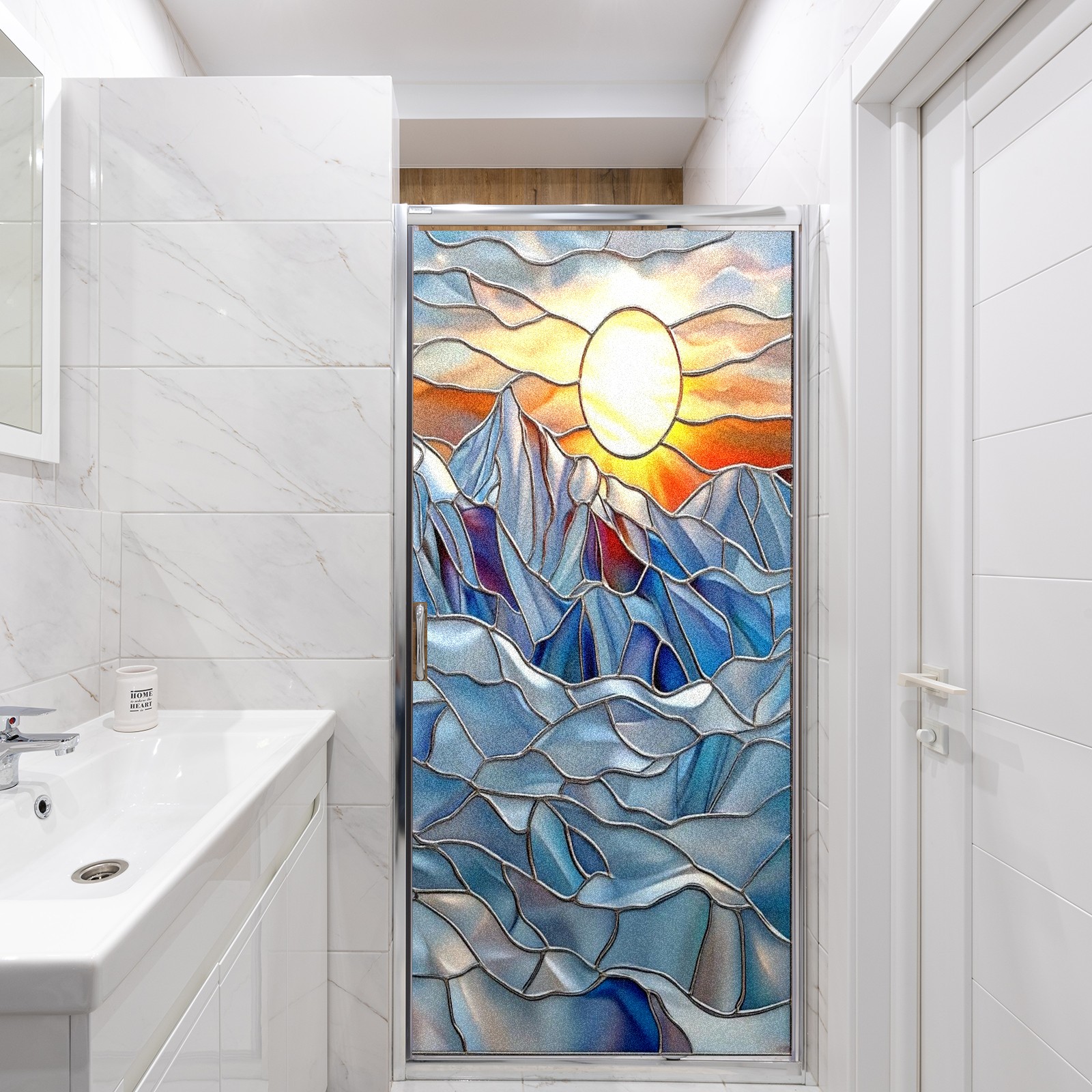 Scrub Glass Films Privacy Window Film Frosted Stained Film Decorative Static Cling for Home Office Bathroom Winter Mountains Sunrise