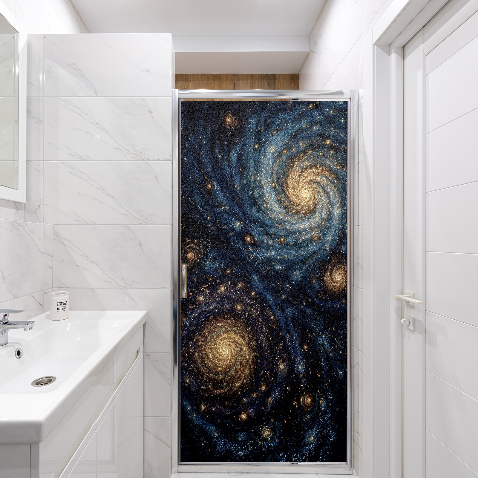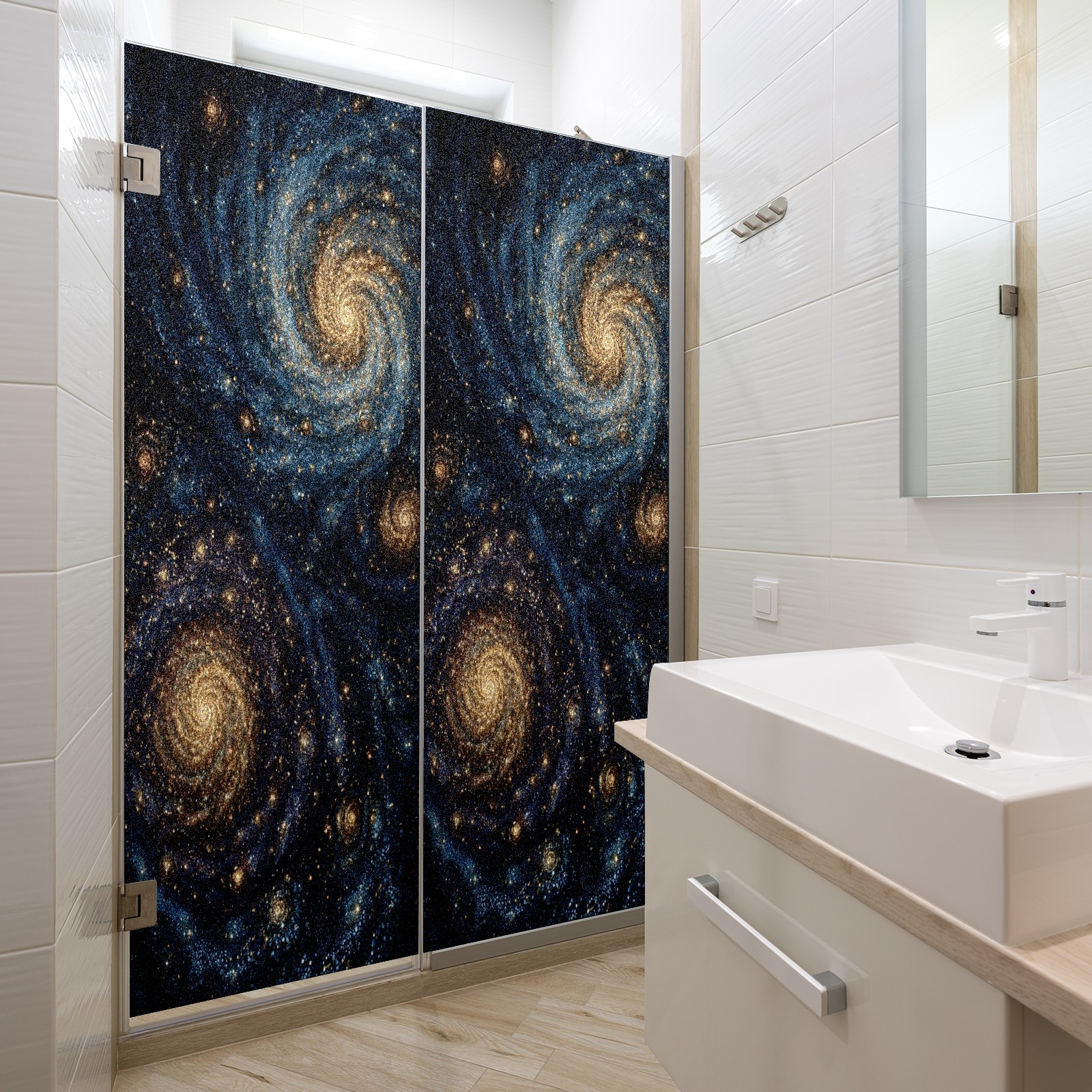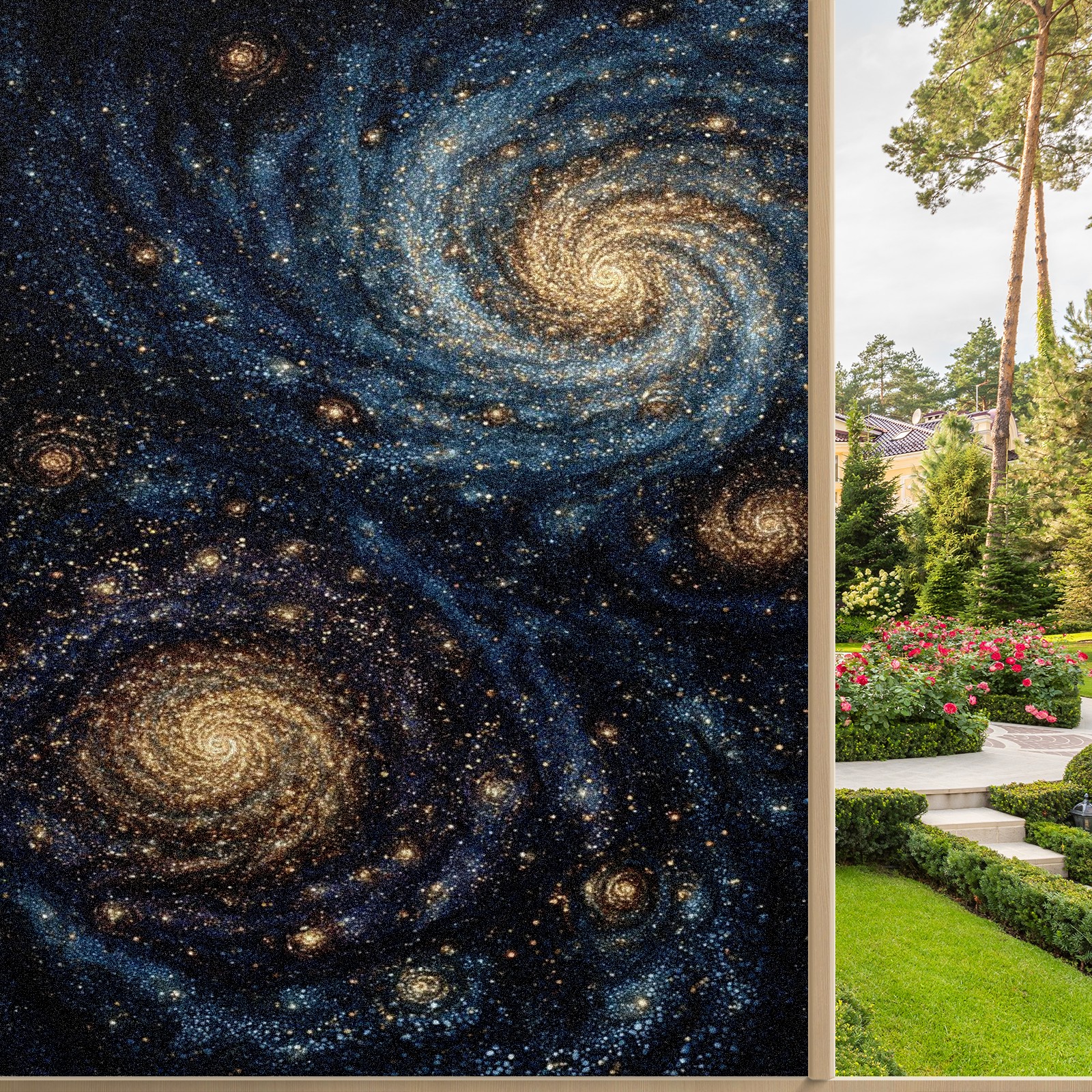 Scrub Glass Films Privacy Window Film Frosted Stained Film Decorative Static Cling for Home Office Bathroom Dark Blue Universe