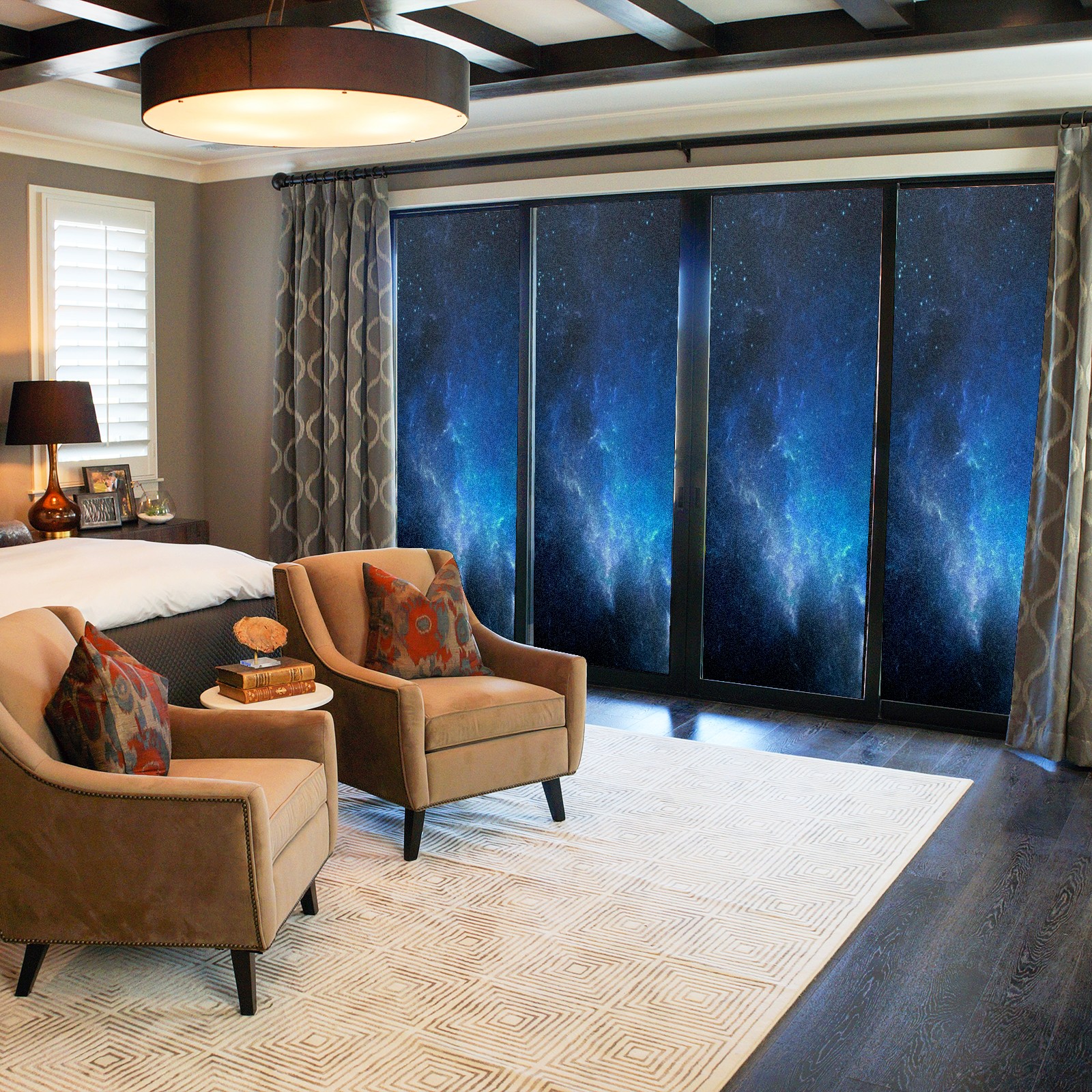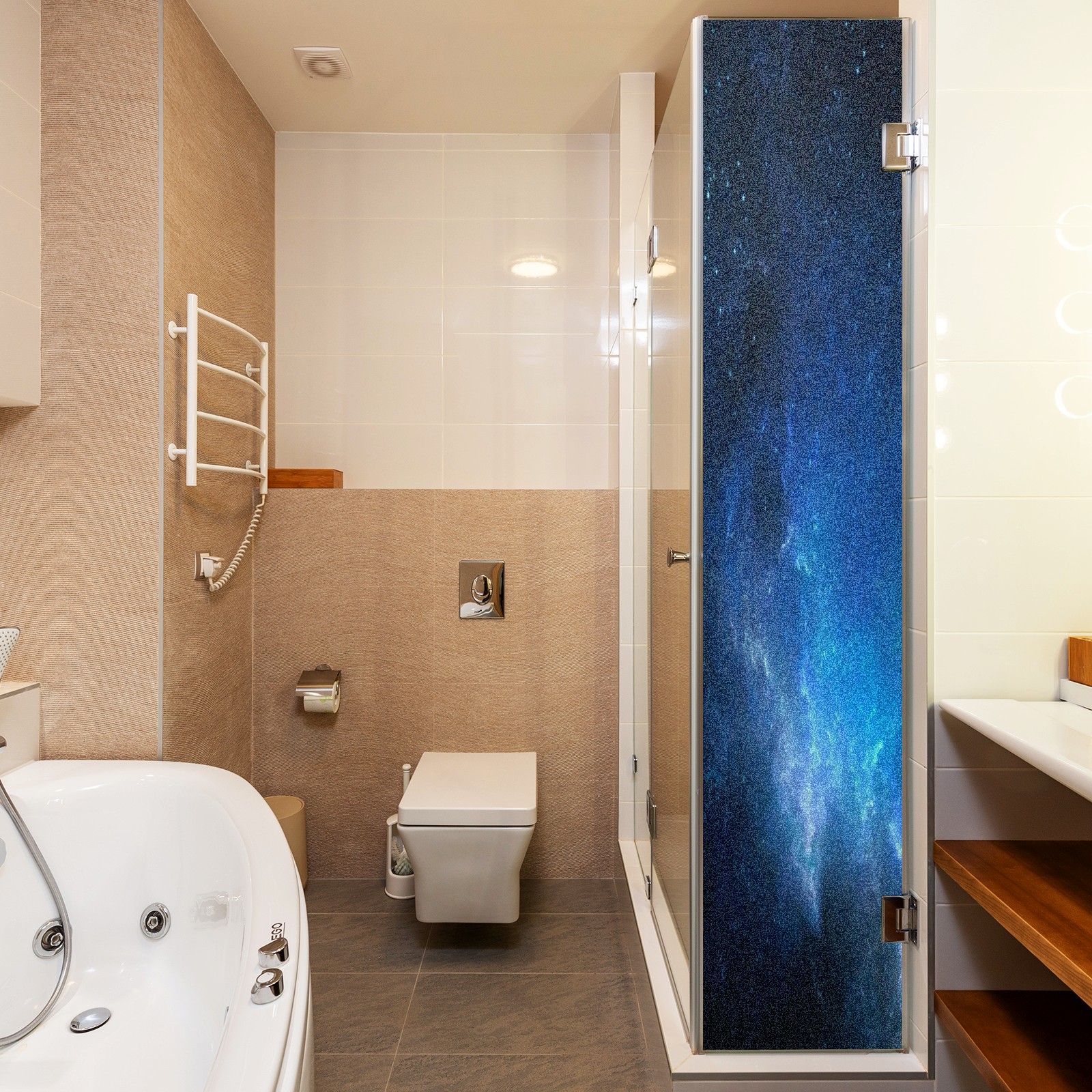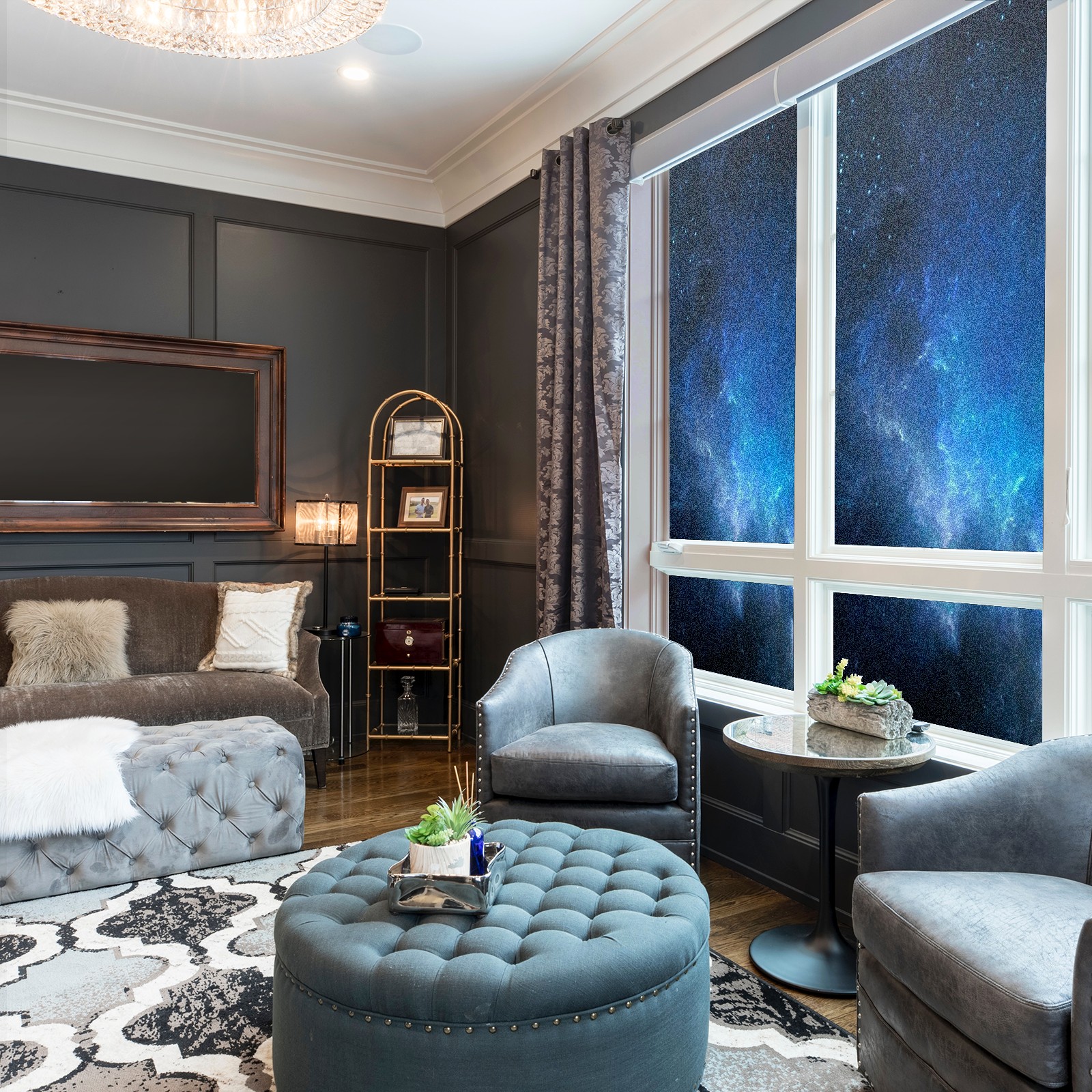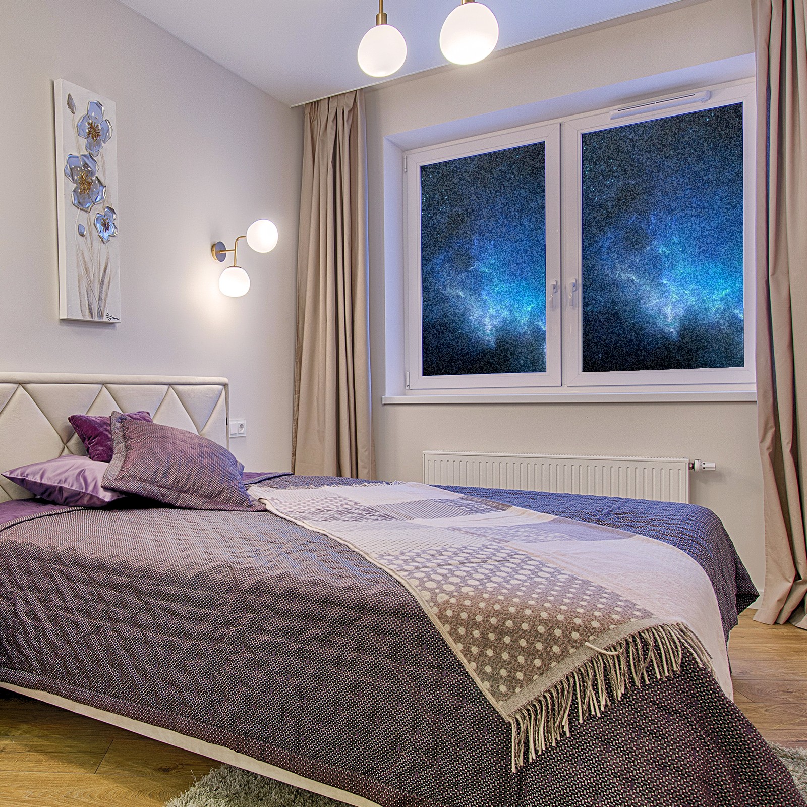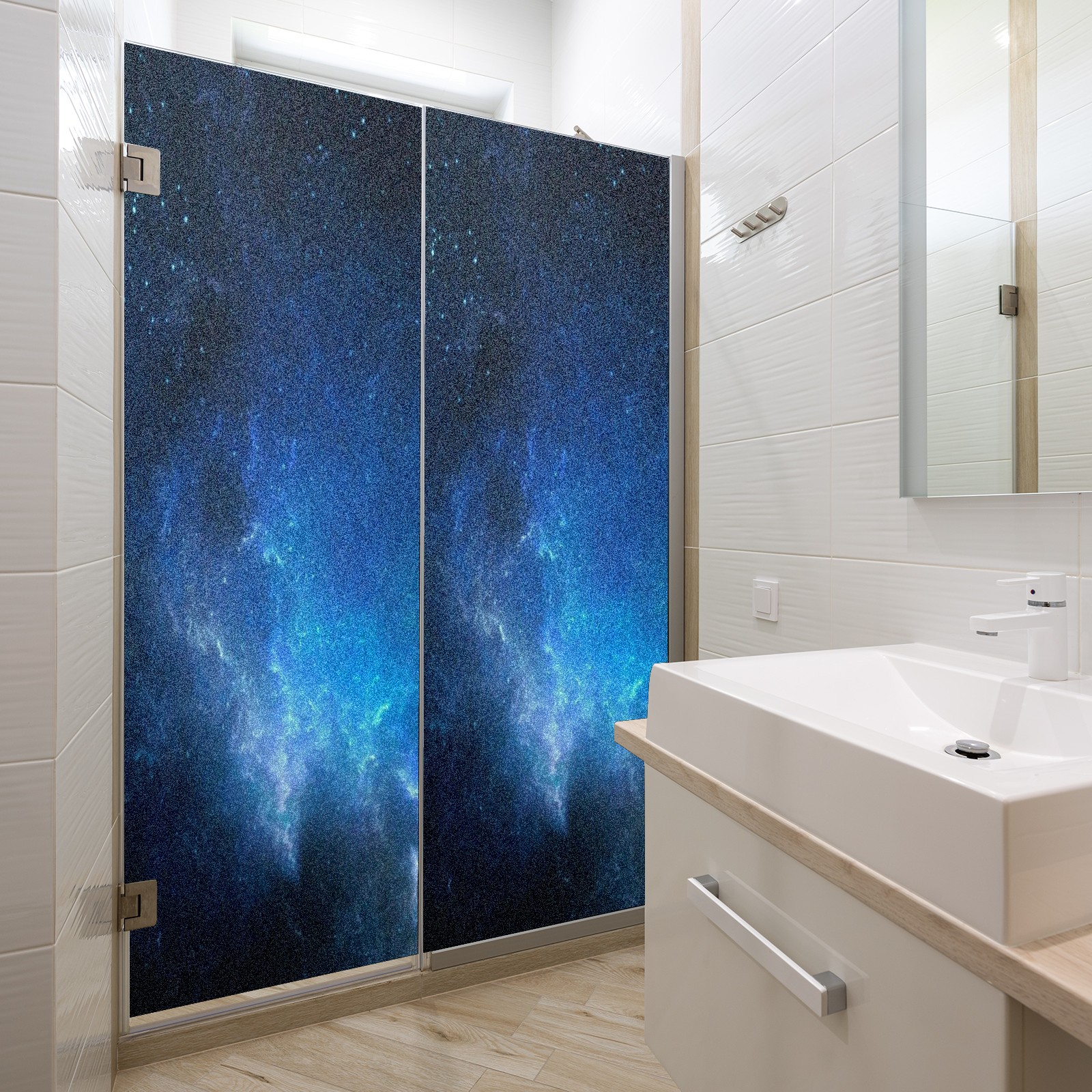 Scrub Glass Films Privacy Window Film Frosted Stained Film Decorative Static Cling for Home Office Bathroom Blue Universe