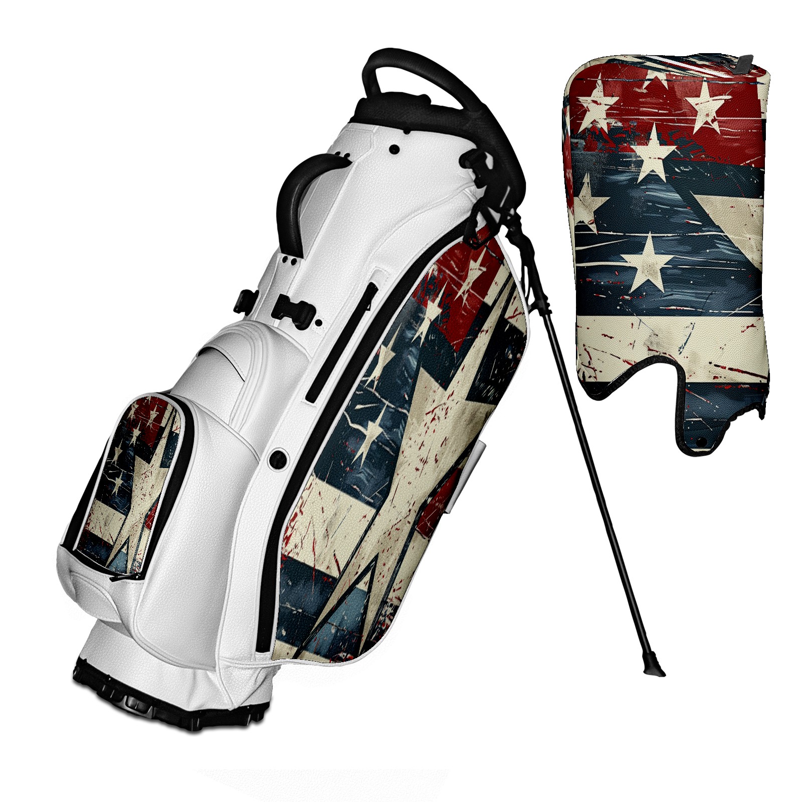 5 - Way Divider Golf Stand Bag, Lightweight Golf Bag with Padded Straps & Rain Cover for Men & Women, Ideal for Golf Courses & Driving Ranges American Flag