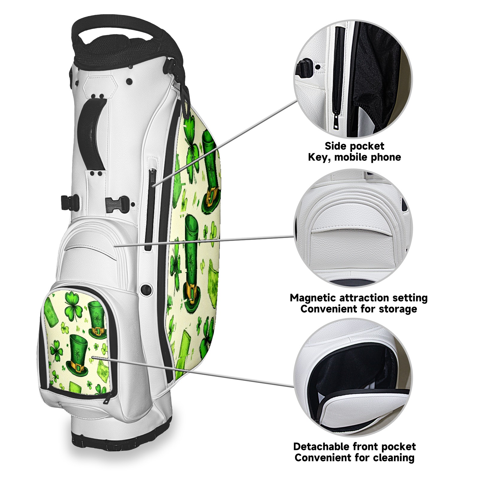 5 - Way Divider Golf Stand Bag, Lightweight Golf Bag with Padded Straps & Rain Cover for Men & Women, Ideal for Golf Courses & Driving Ranges Shamrock And Hat