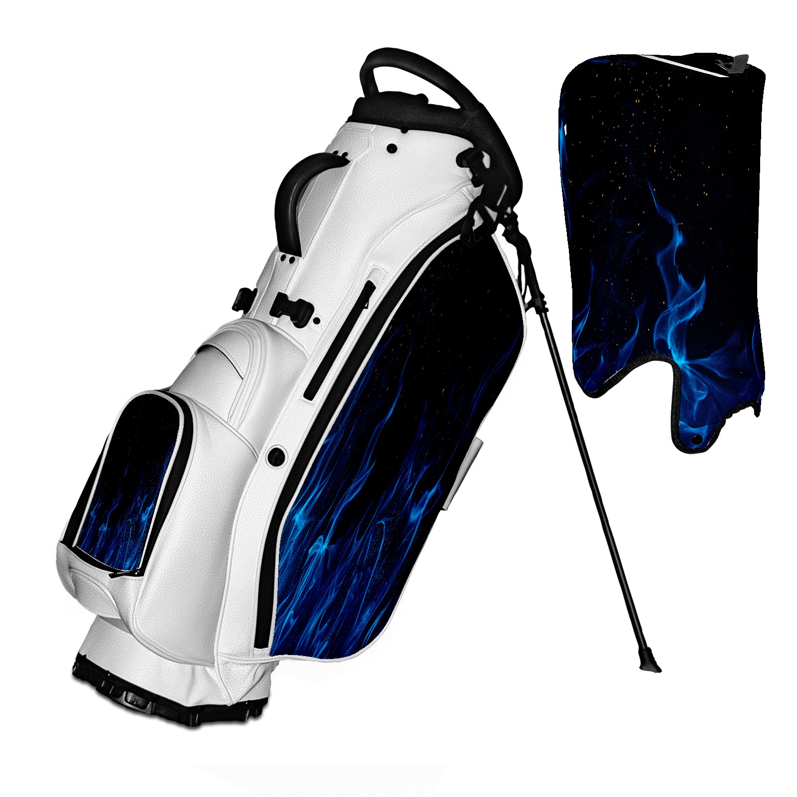 5 - Way Divider Golf Stand Bag, Lightweight Golf Bag with Padded Straps & Rain Cover for Men & Women, Ideal for Golf Courses & Driving Ranges Blue Flames