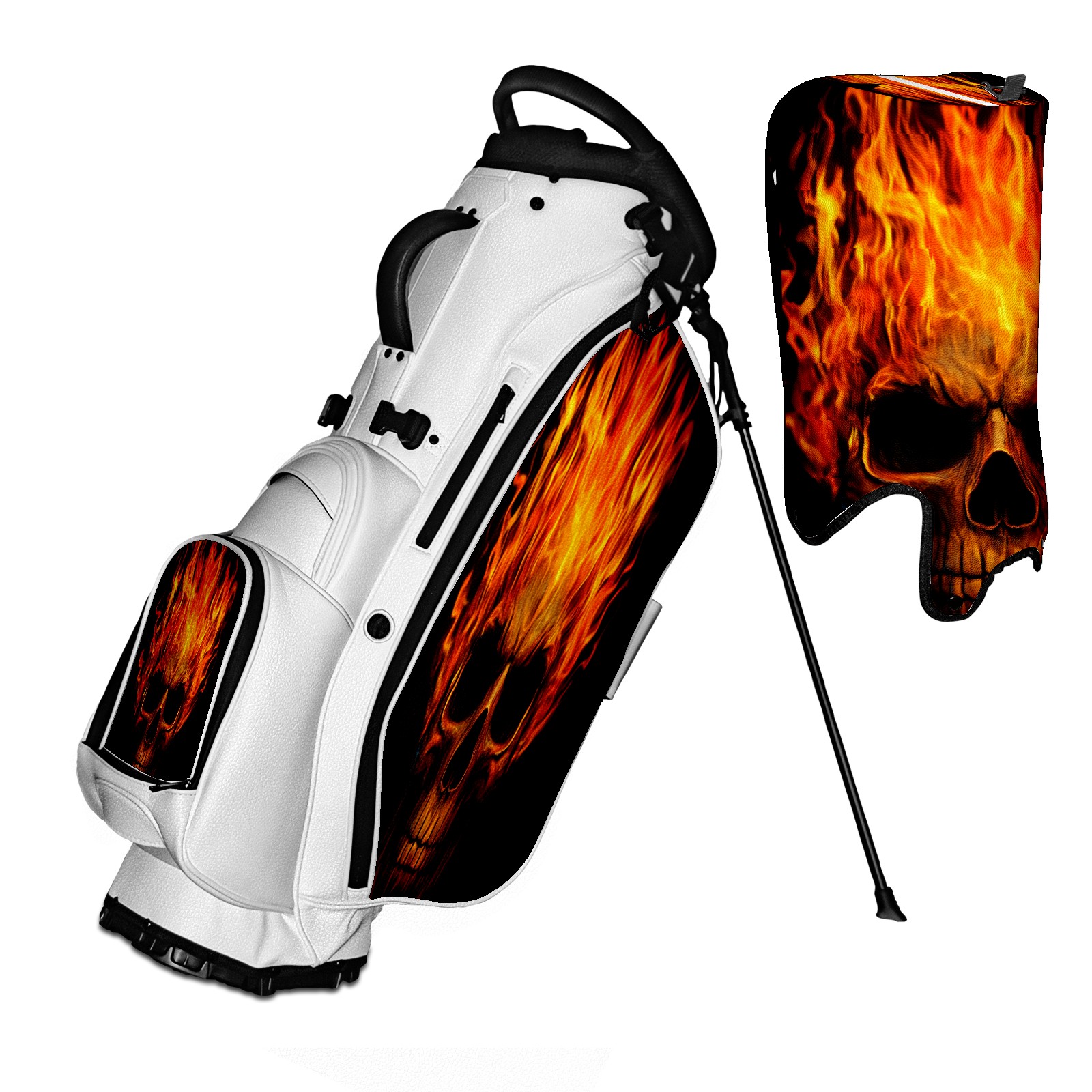 5 - Way Divider Golf Stand Bag, Lightweight Golf Bag with Padded Straps & Rain Cover for Men & Women, Ideal for Golf Courses & Driving Ranges Fiery Skull