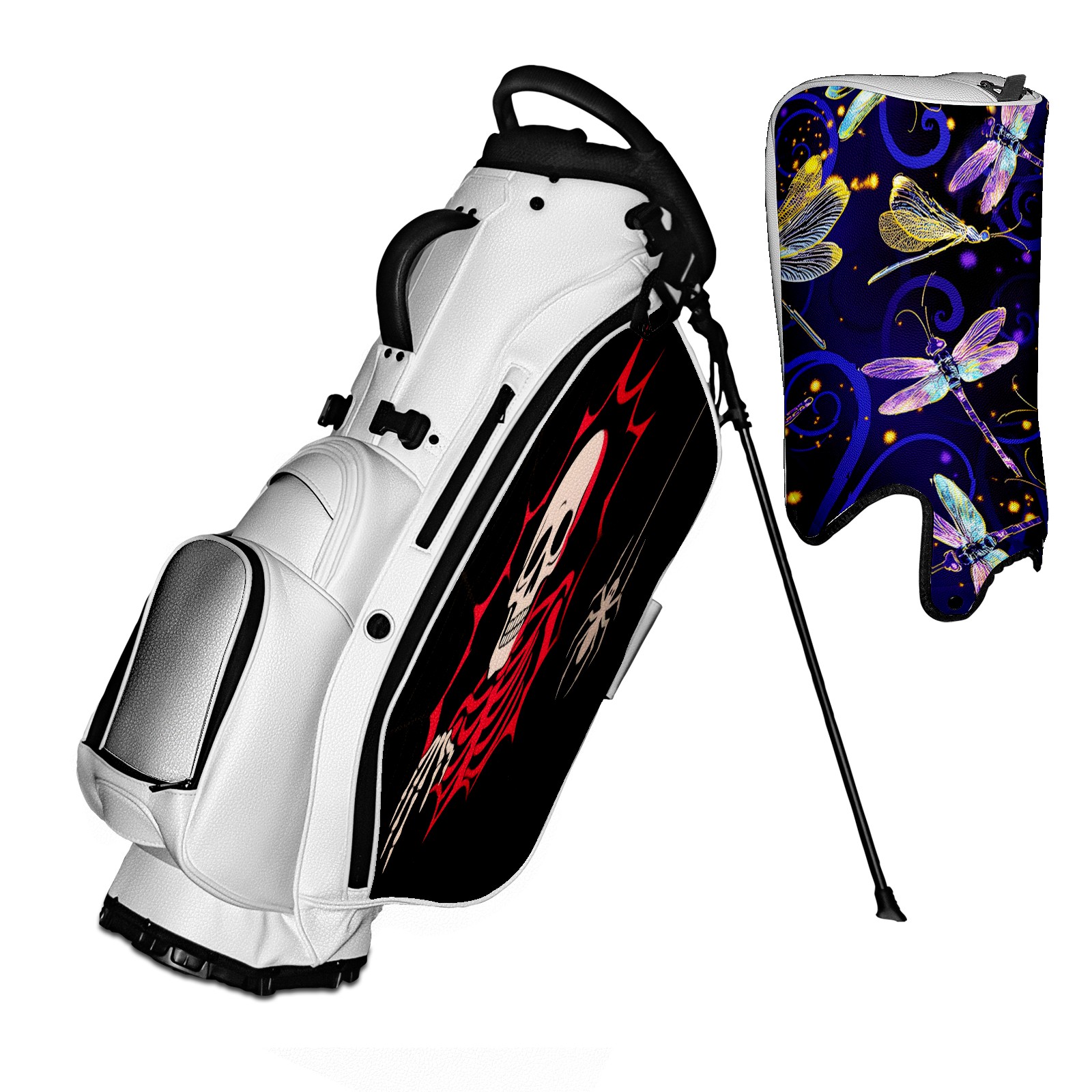 5 - Way Divider Golf Stand Bag, Lightweight Golf Bag with Padded Straps & Rain Cover for Men & Women, Ideal for Golf Courses & Driving Ranges Halloween Skull(033)