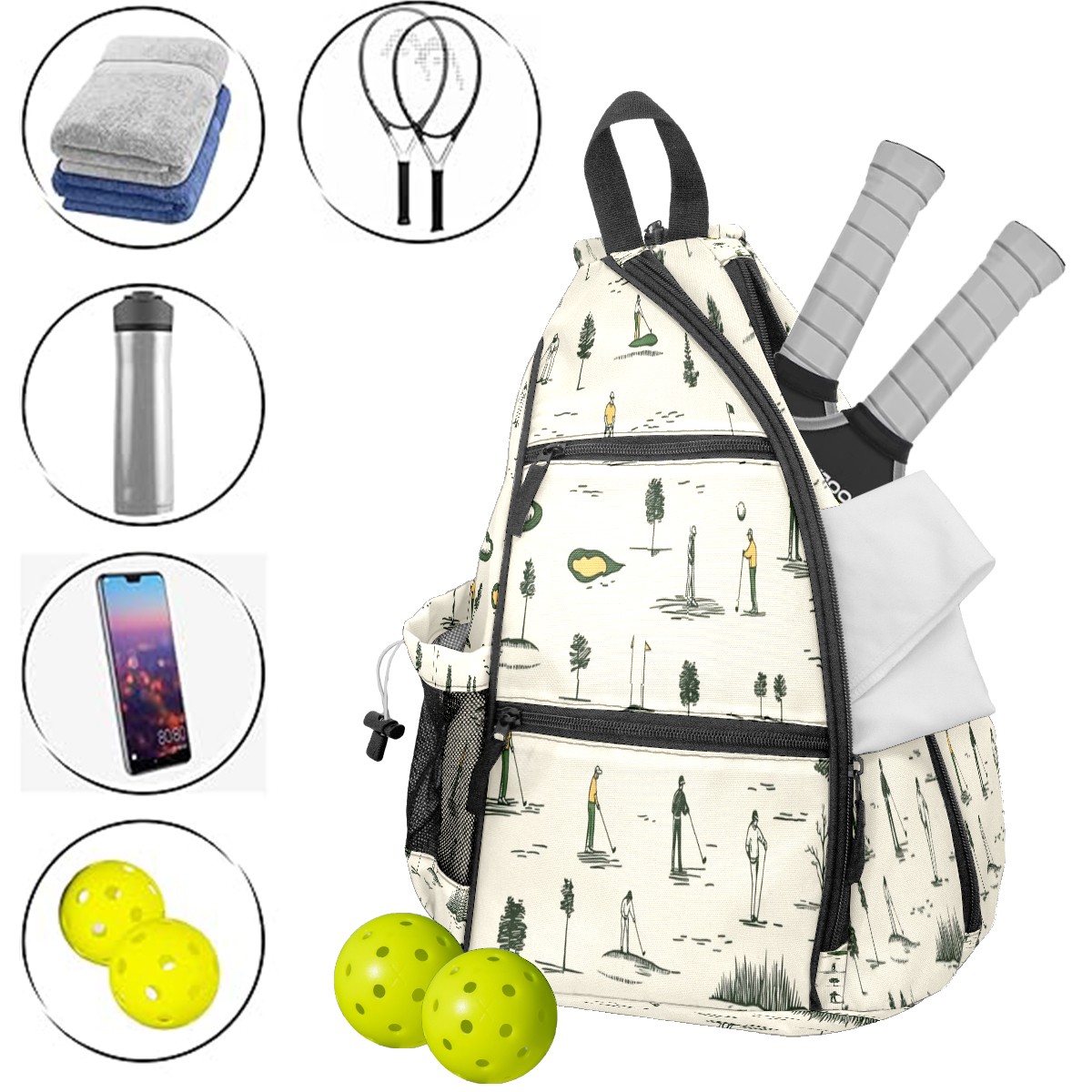 Pickleball Shoulder Bag for Men and Women - Fence Hook - Crossbody Backpack with Water Bottle Holder Leisure Sports Patterns