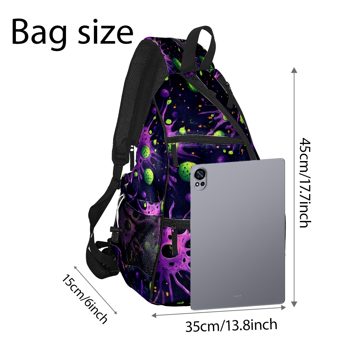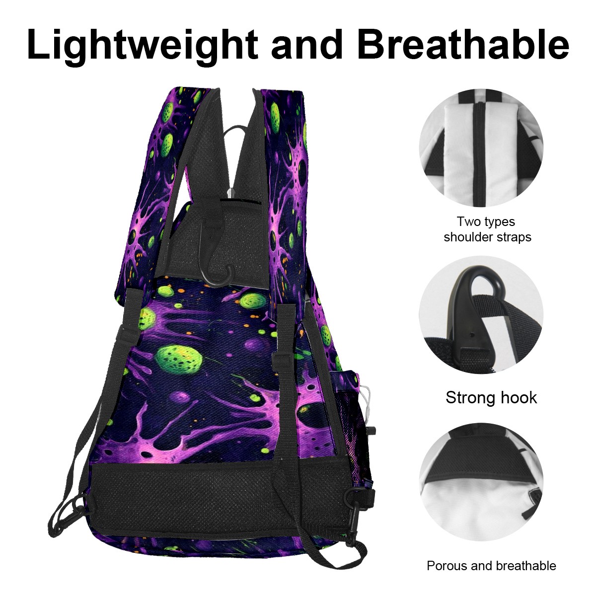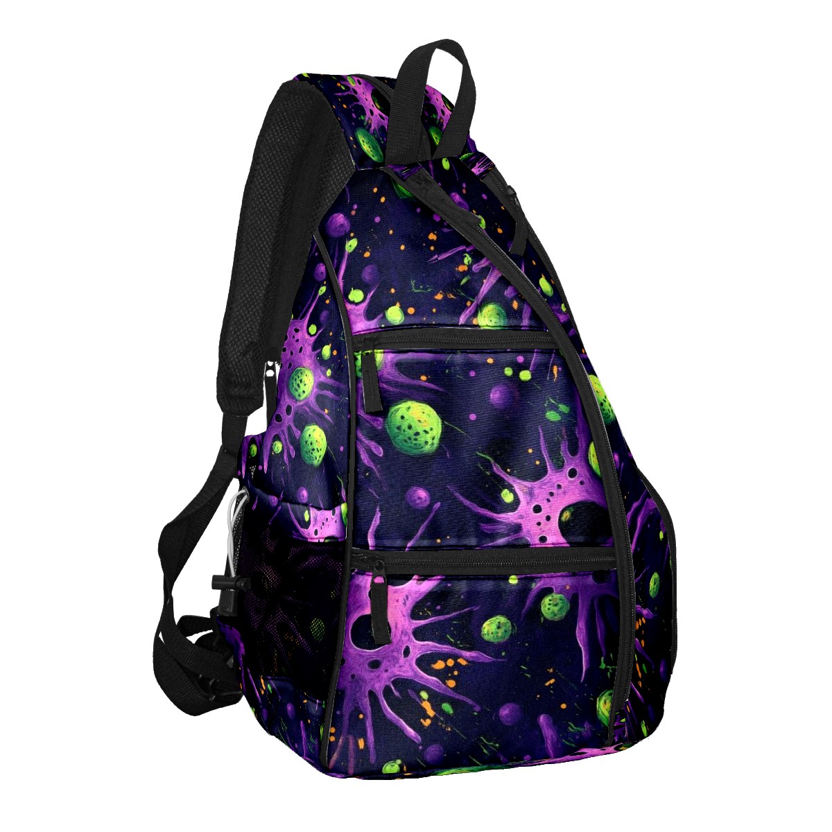 Pickleball Shoulder Bag for Men and Women - Fence Hook - Crossbody Backpack with Water Bottle Holder Purple Planet