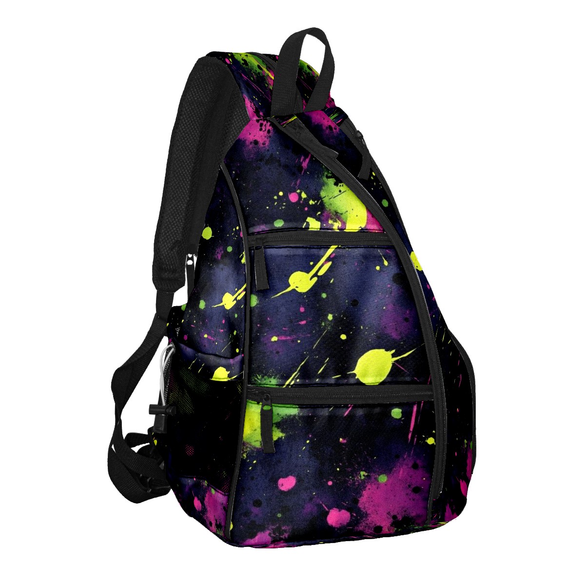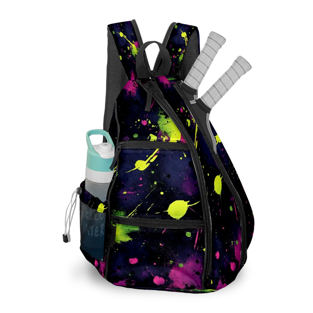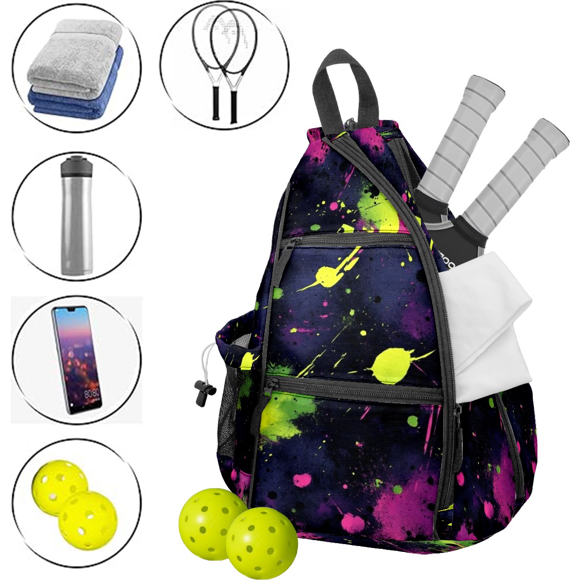 Pickleball Shoulder Bag for Men and Women - Fence Hook - Crossbody Backpack with Water Bottle Holder Purple Planet 1