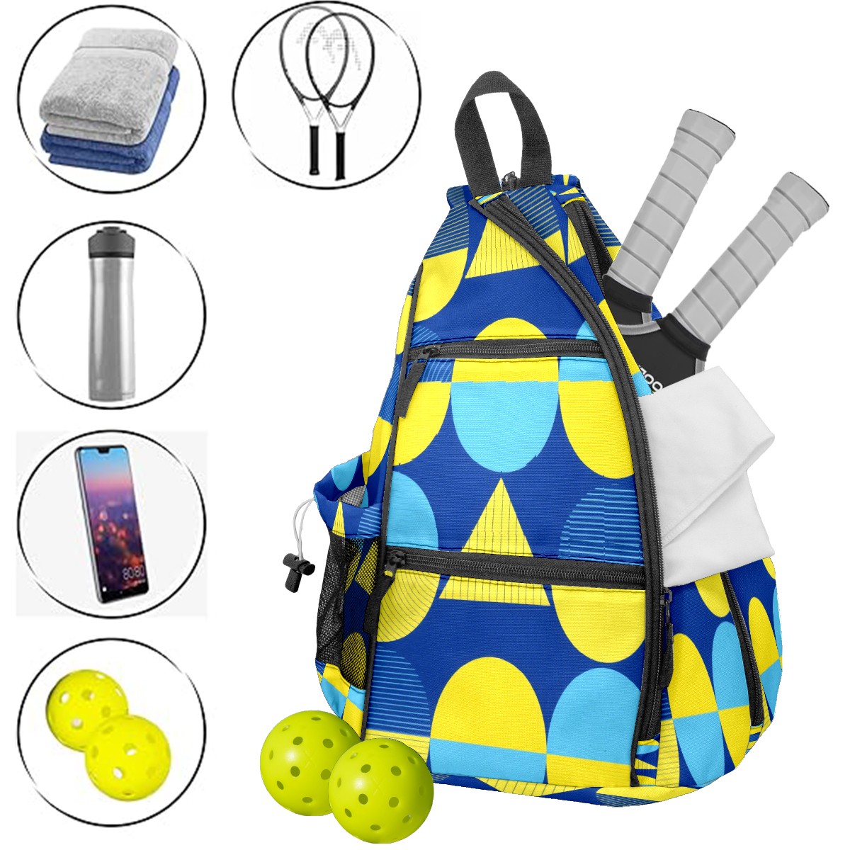Pickleball Shoulder Bag for Men and Women - Fence Hook - Crossbody Backpack with Water Bottle Holder Irregular Shapes 1