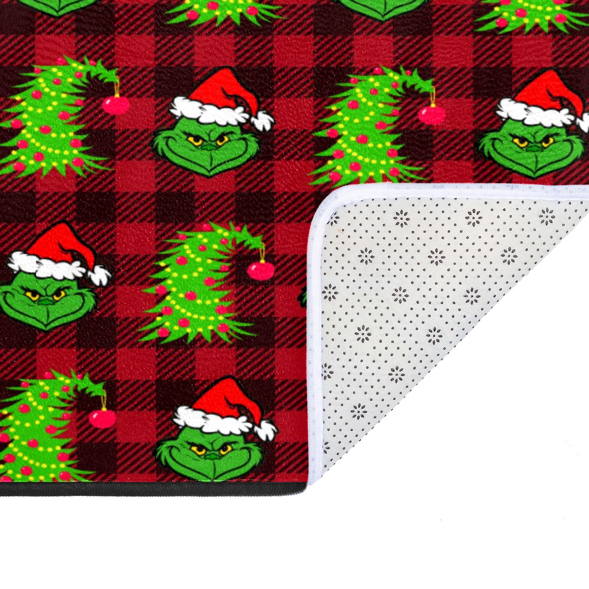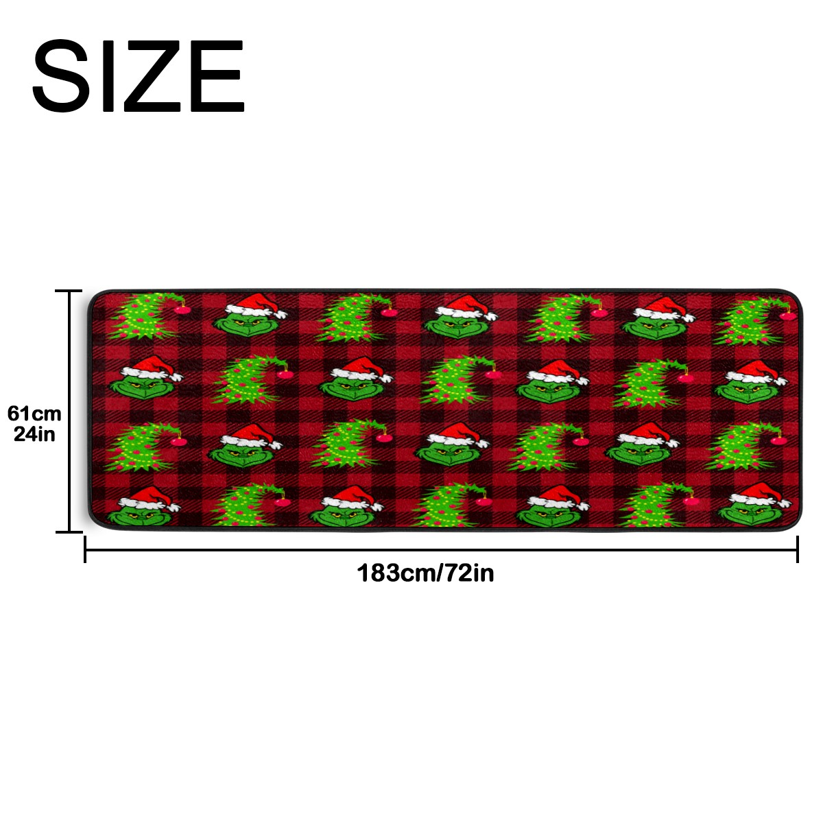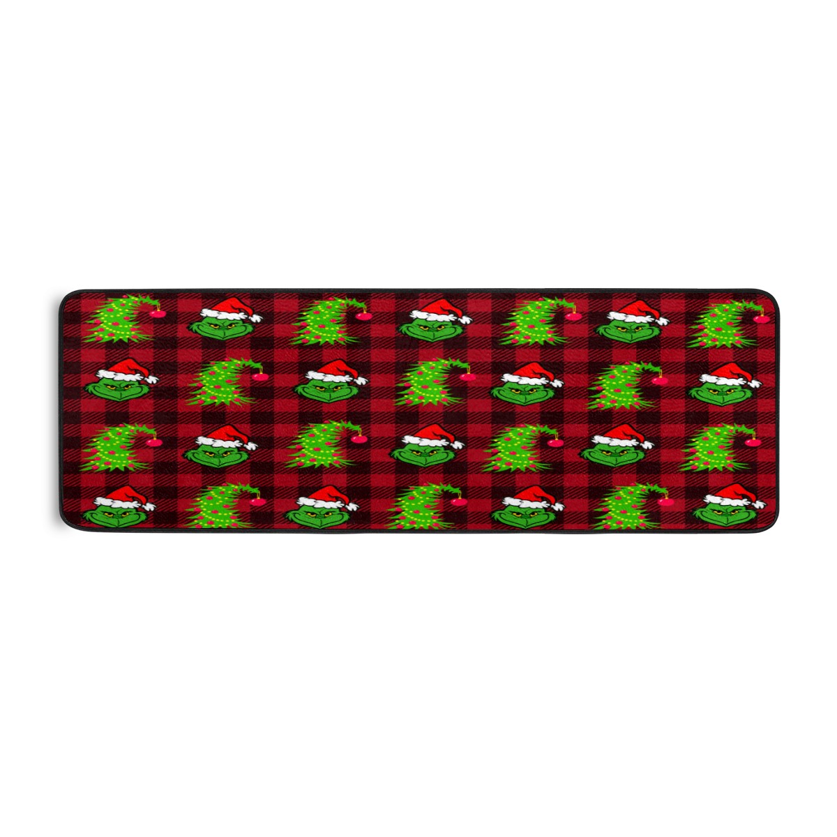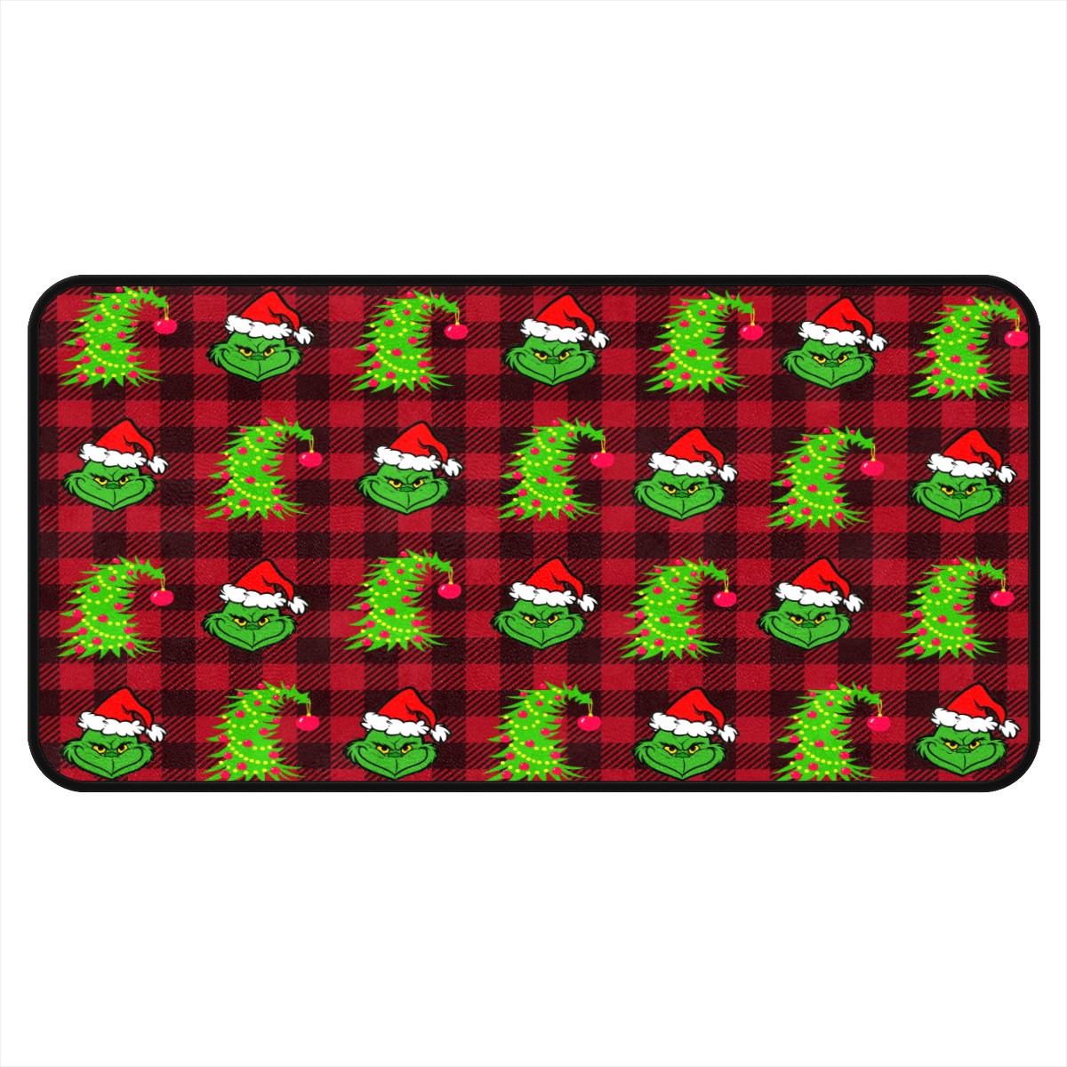Kitchen Mat for Floor Kitchen Rugs Anti-Fatigue Non Slip Mat Waterproof Cushioned Comfort Standing Mat for Kitchen, Office, Sink, Laundry Red And Black Buffalo Plaid Grinchmas Tree