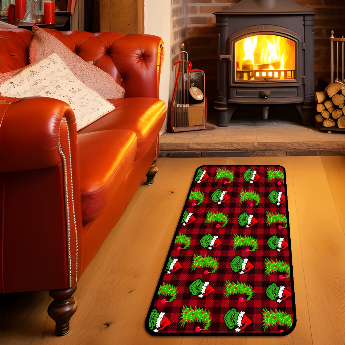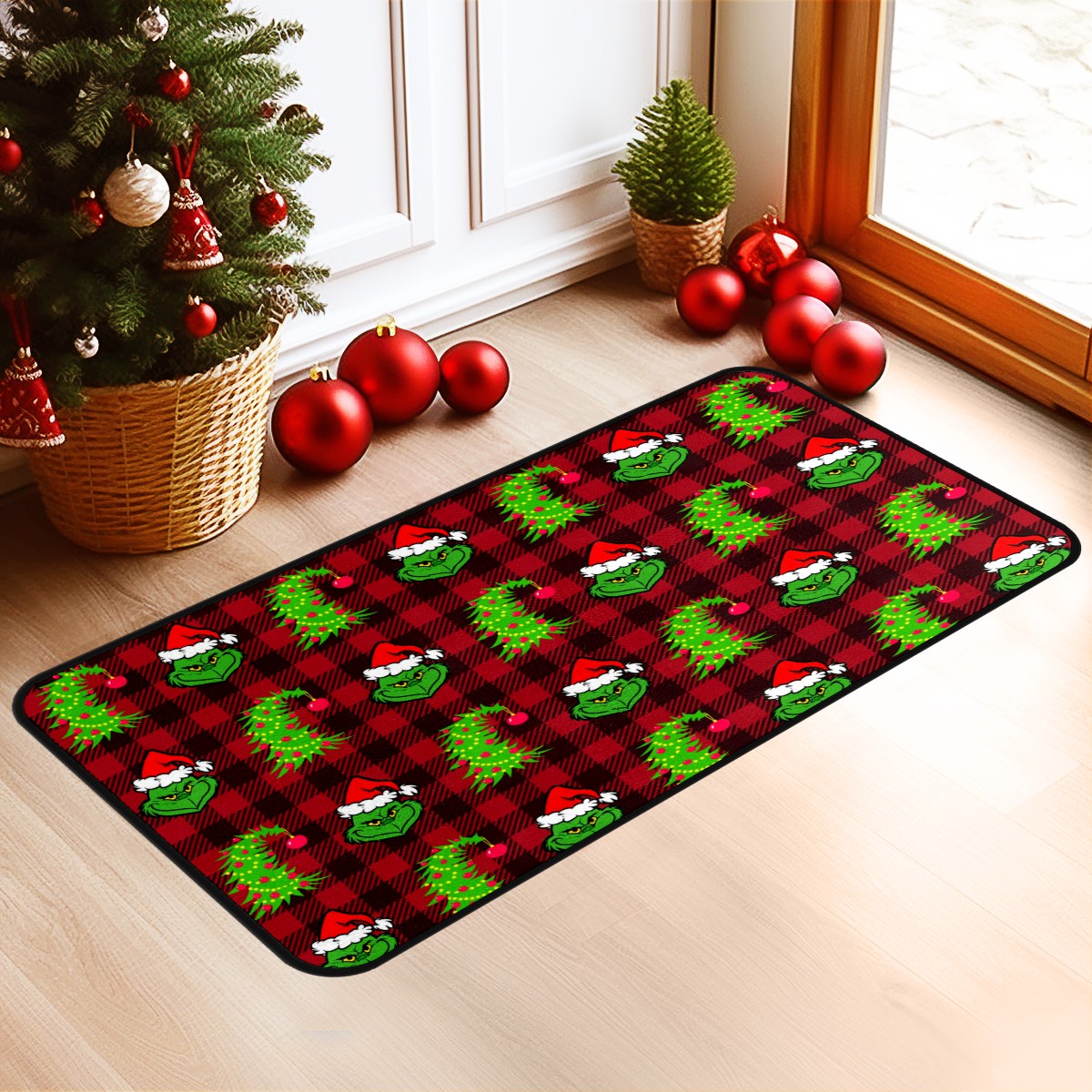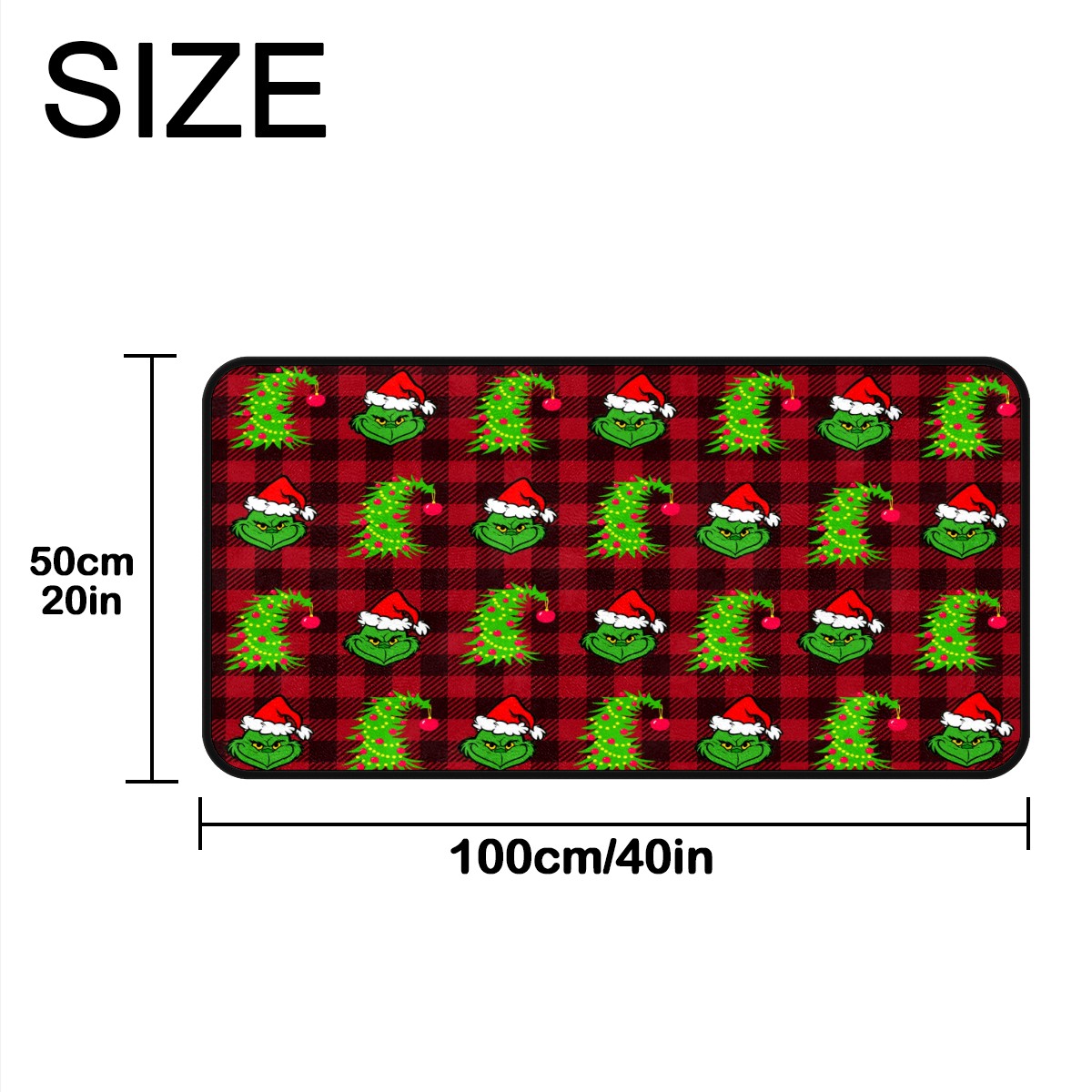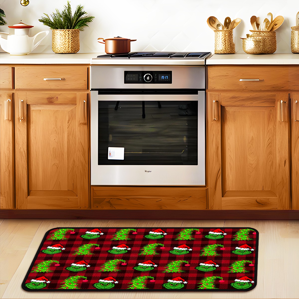 Kitchen Mat for Floor Kitchen Rugs Anti-Fatigue Non Slip Mat Waterproof Cushioned Comfort Standing Mat for Kitchen, Office, Sink, Laundry Red And Black Buffalo Plaid Grinchmas Tree