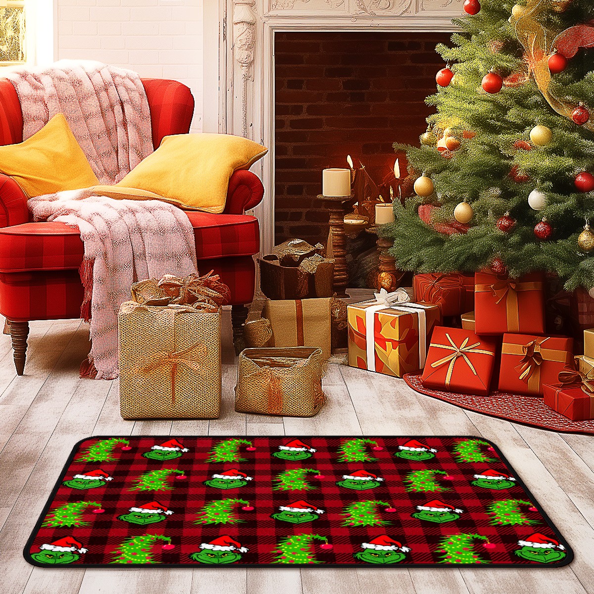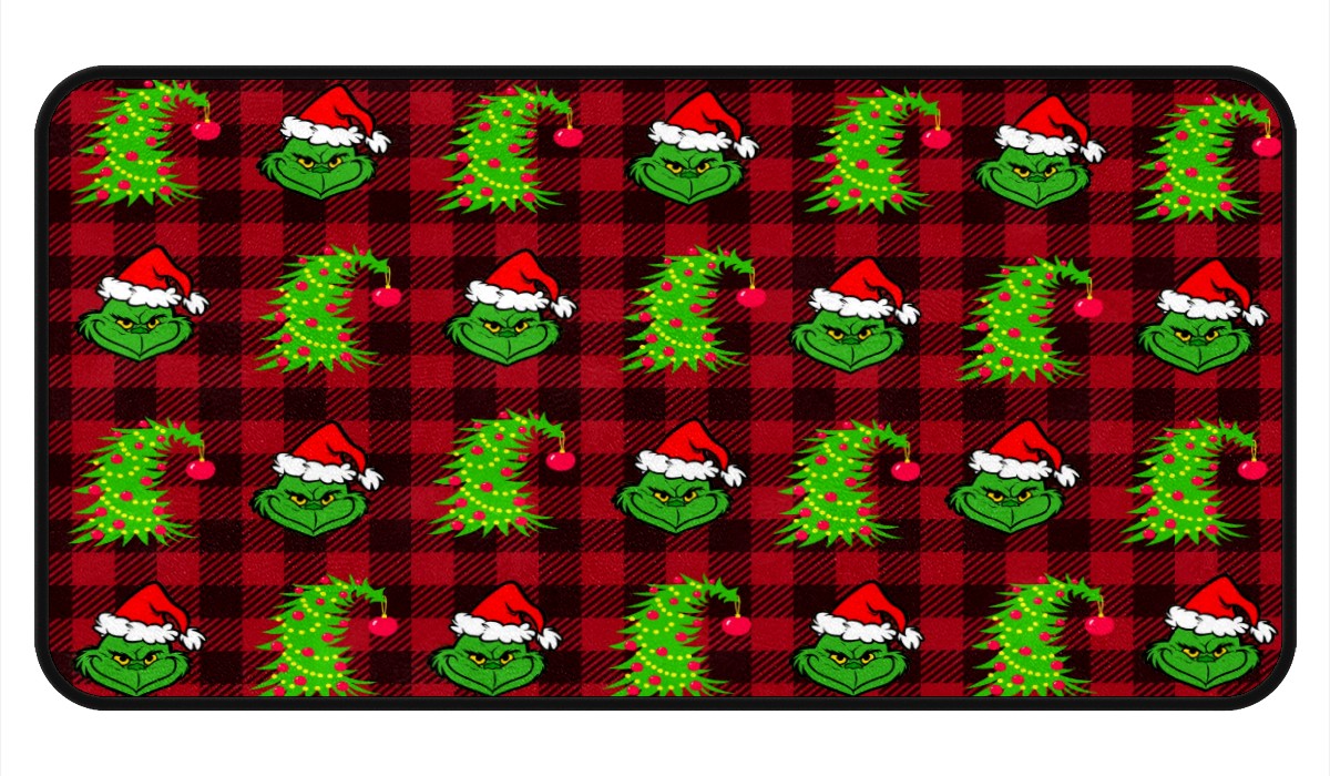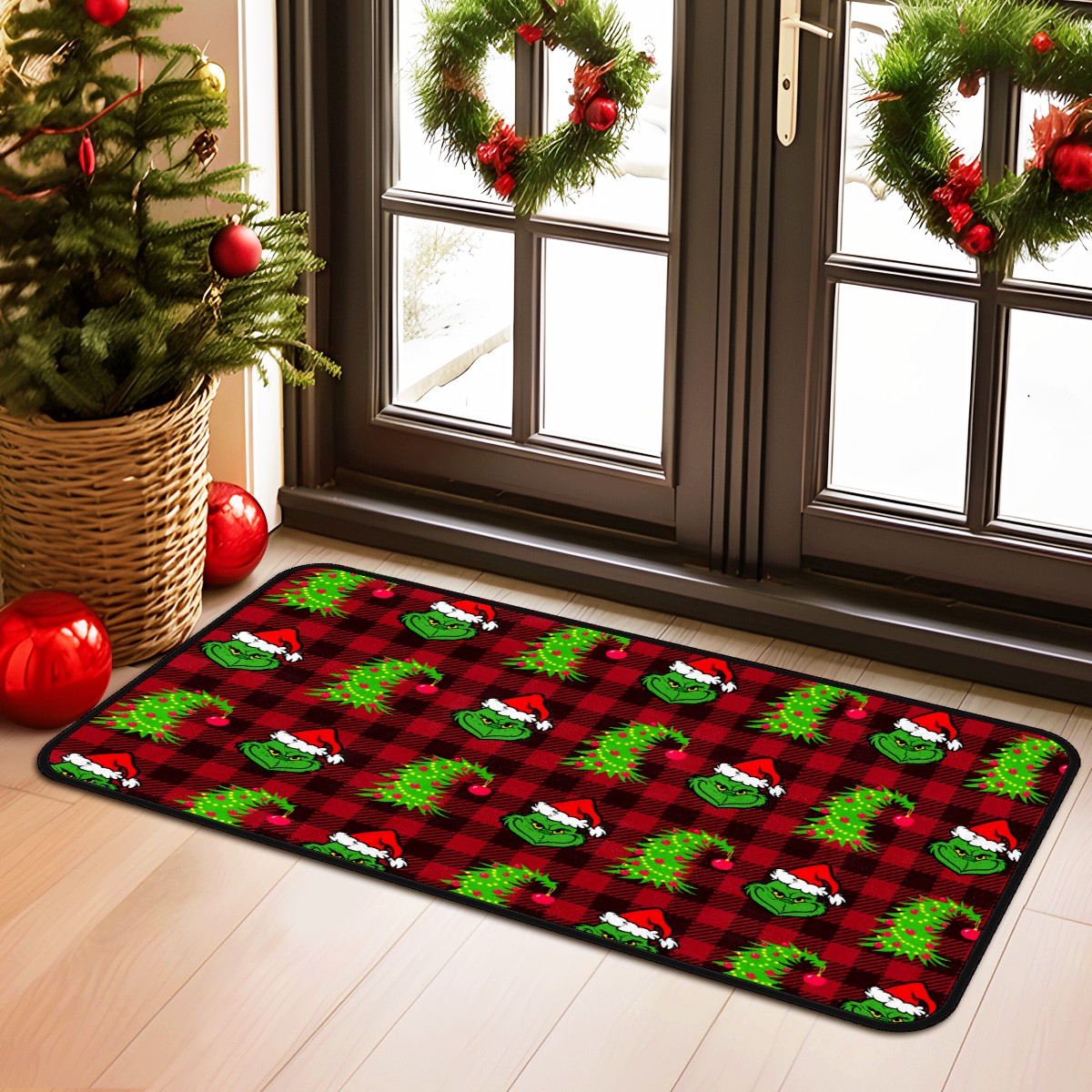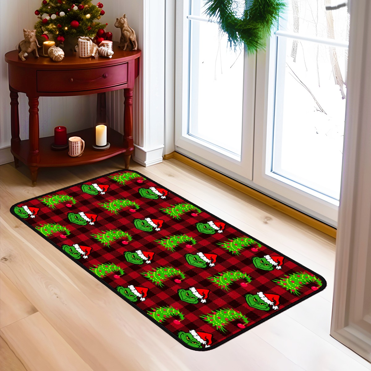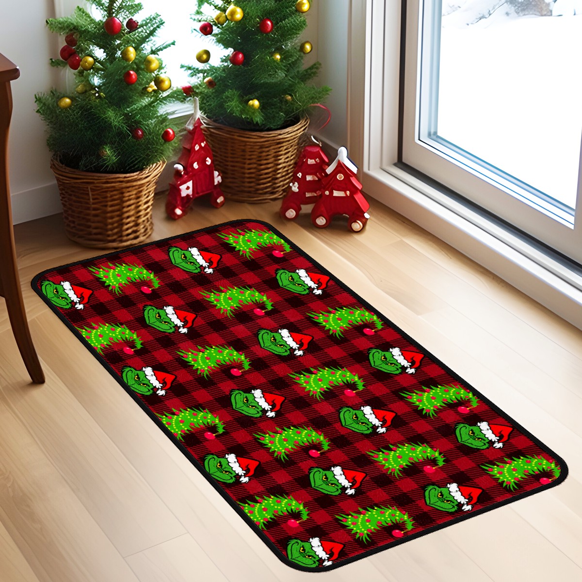 Kitchen Mat for Floor Kitchen Rugs Anti-Fatigue Non Slip Mat Waterproof Cushioned Comfort Standing Mat for Kitchen, Office, Sink, Laundry Red And Black Buffalo Plaid Grinchmas Tree