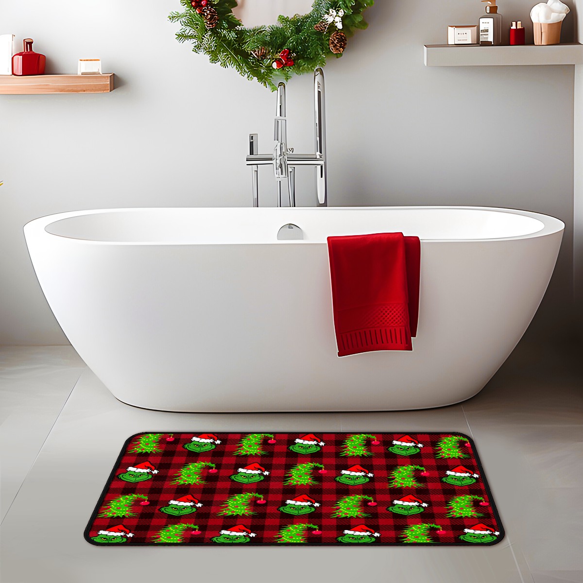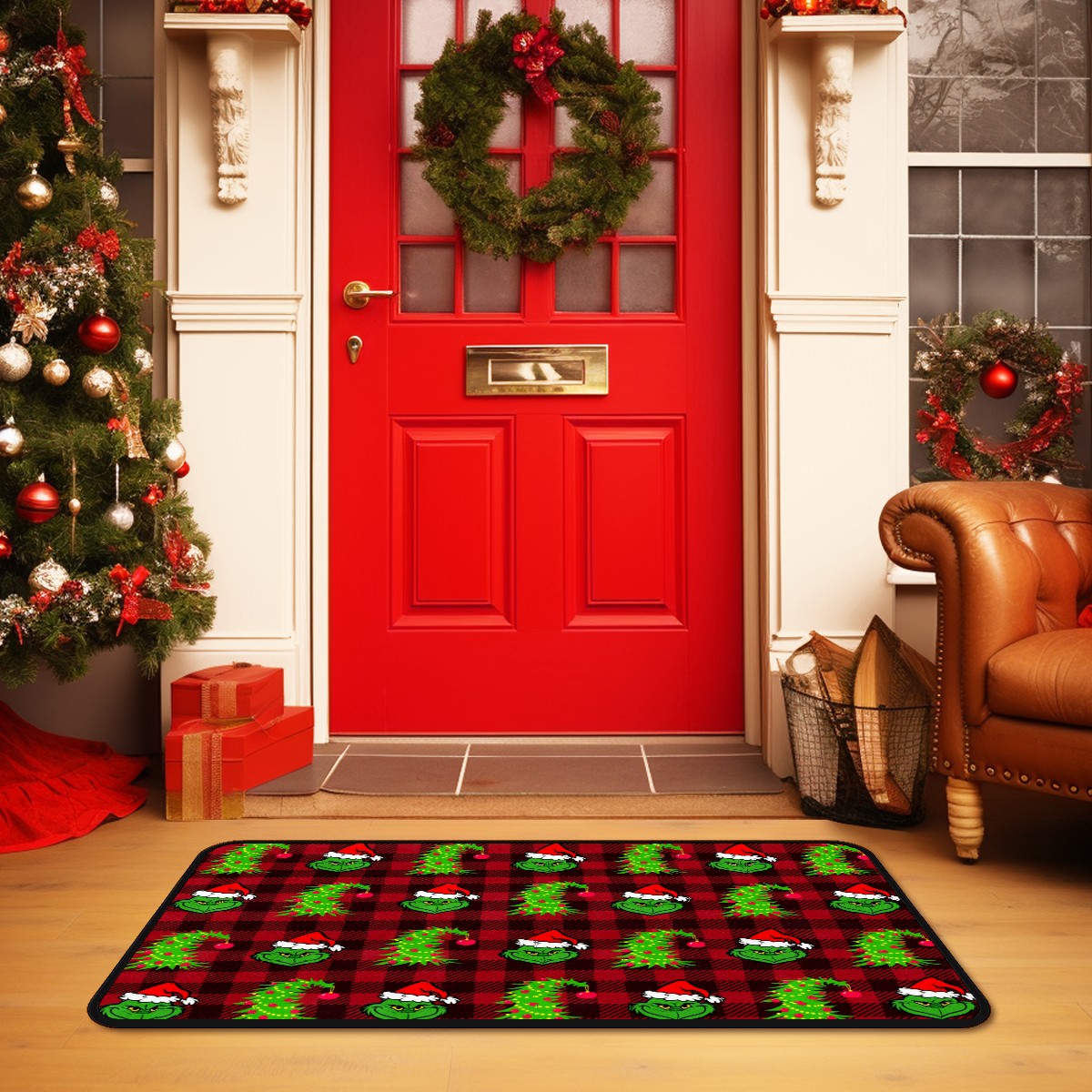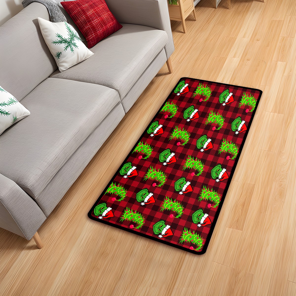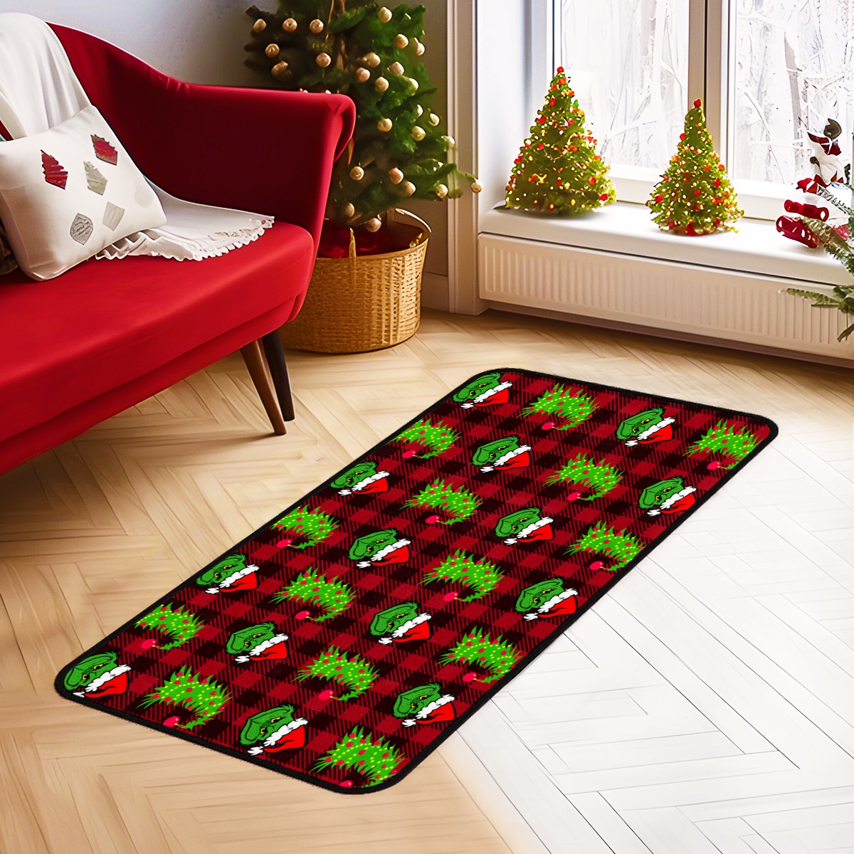 Kitchen Mat for Floor Kitchen Rugs Anti-Fatigue Non Slip Mat Waterproof Cushioned Comfort Standing Mat for Kitchen, Office, Sink, Laundry Red And Black Buffalo Plaid Grinchmas Tree