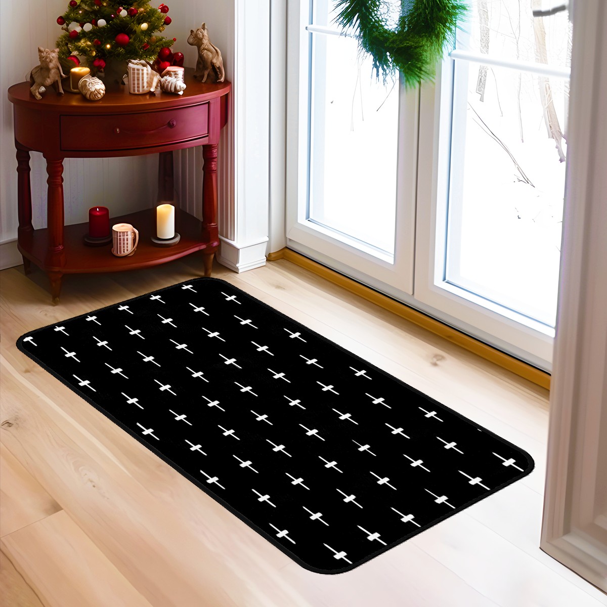●<b>Material Description:</b>Printed surface 100% polyester (fabric with plush feeling) + felt fabric sticker (bottom) + velvet (wrapped edge)<br> ●<b>Size: </b>100x50 cm / 40x20 in;183x61 cm / 72x24 in<br> ●<b>Washing instructions:</b> washable or machine washabl<br> ●<b>Versatile & Decoration:</b>Great choice for kitchen, bathroom, laundry room, bedroom, office, desk, and more.