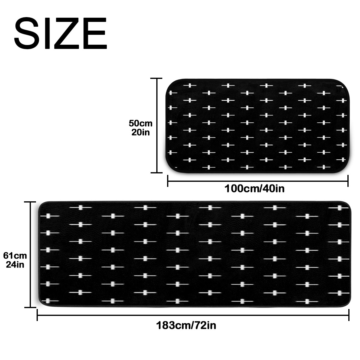 • ●<b>Material Description:</b>Printed surface 100% polyester (fabric with plush feeling) + felt fabric sticker (bottom) + velvet (wrapped edge)<br> ●<b>Size: </b>100x50 cm / 40x20 in;183x61 cm / 72x24 in<br> ●<b>Washing instructions:</b> washable or machine washabl<br> ●<b>Versatile & Decoration:</b>Great choice for kitchen, bathroom, laundry room, bedroom, office, desk, and more.