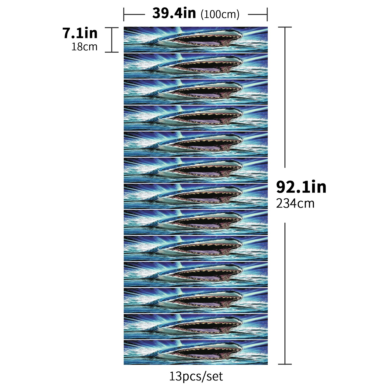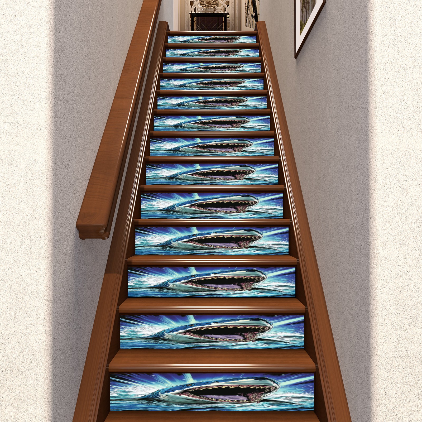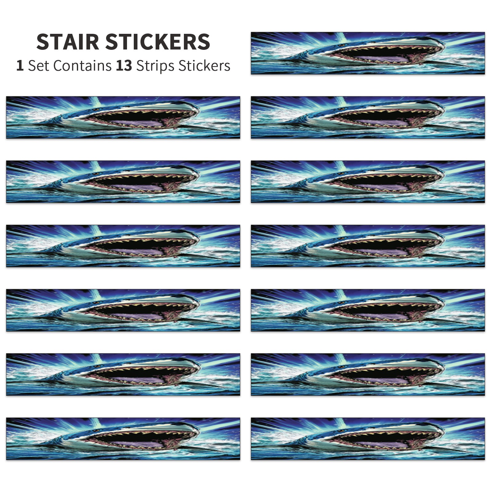 Non Slip Stair Treads Peel and Stick - 13PCS PET 39.4"x7.1" Anti-Slip Stair Stickers, 92.1"x39.4" Merged Size, Waterproof Step Grips for Stairs/Walls Blue Shark