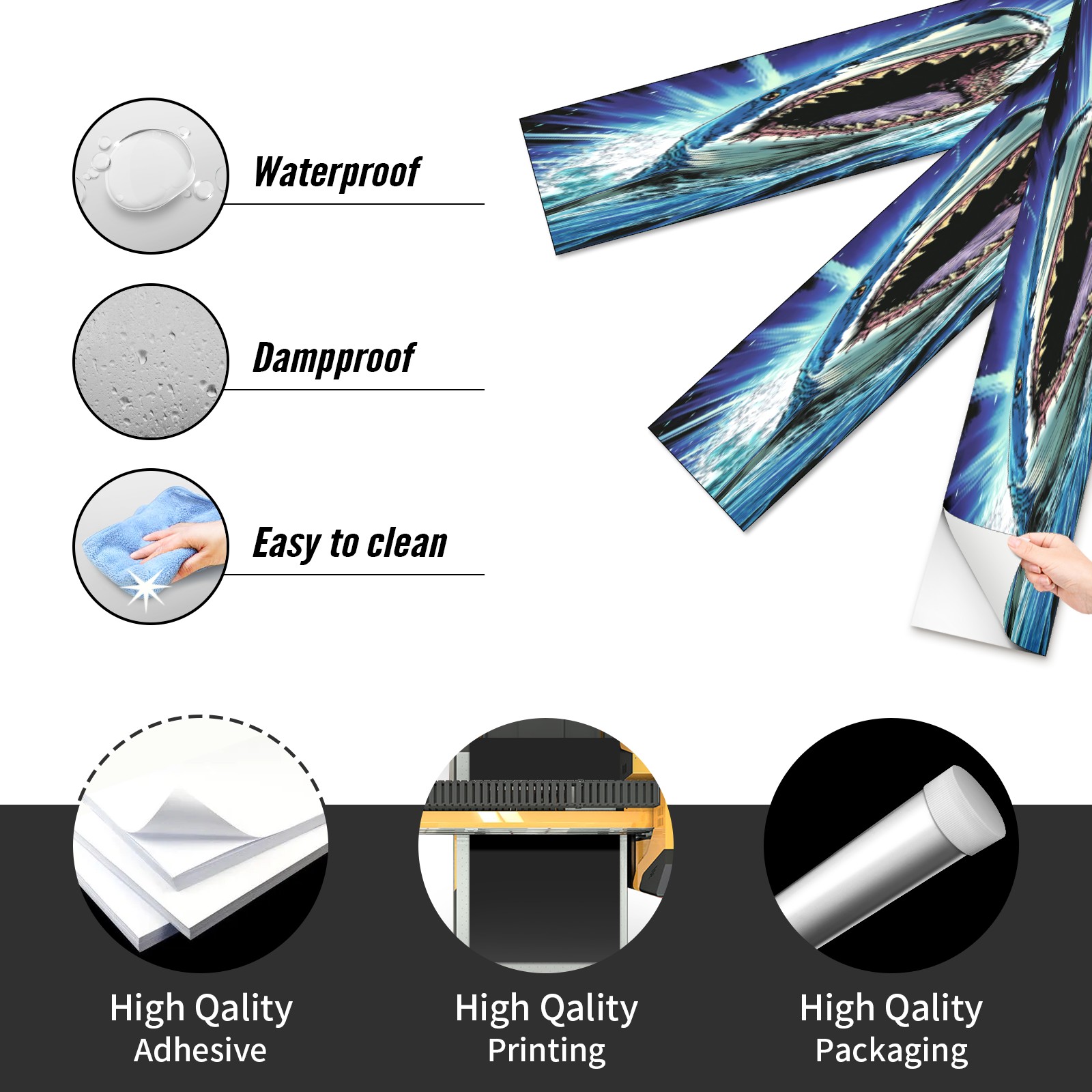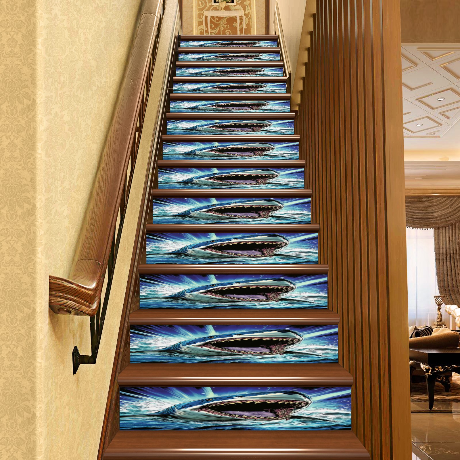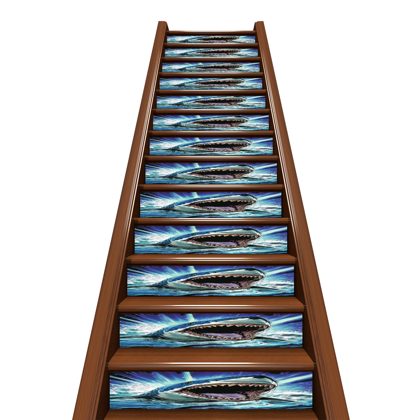 Non Slip Stair Treads Peel and Stick - 13PCS PET 39.4"x7.1" Anti-Slip Stair Stickers, 92.1"x39.4" Merged Size, Waterproof Step Grips for Stairs/Walls Blue Shark