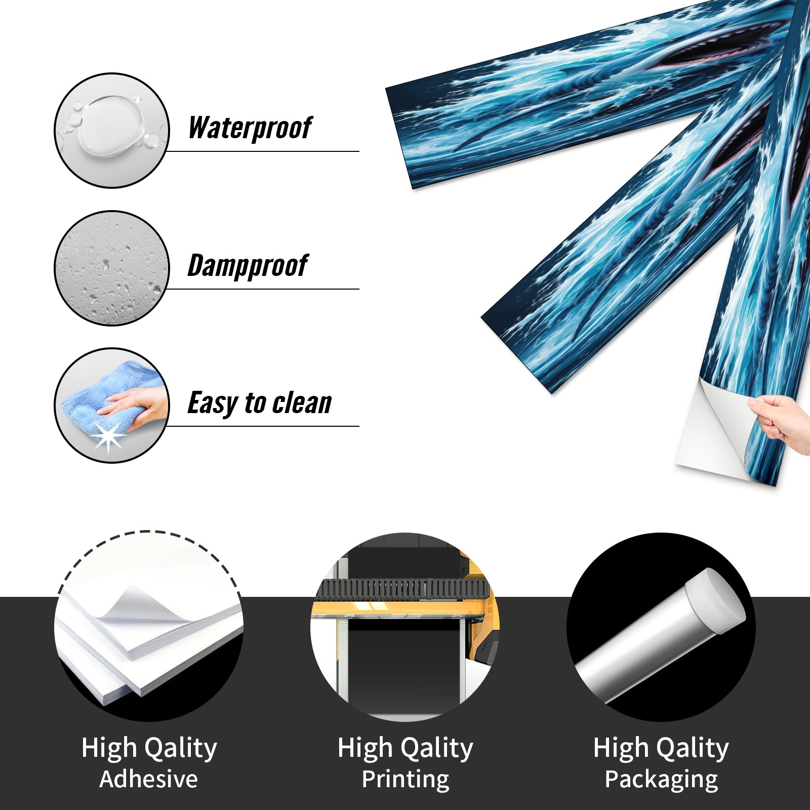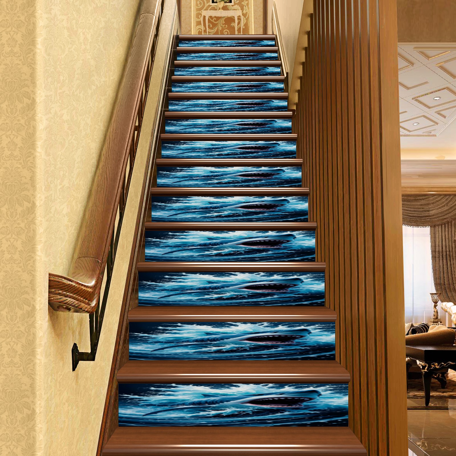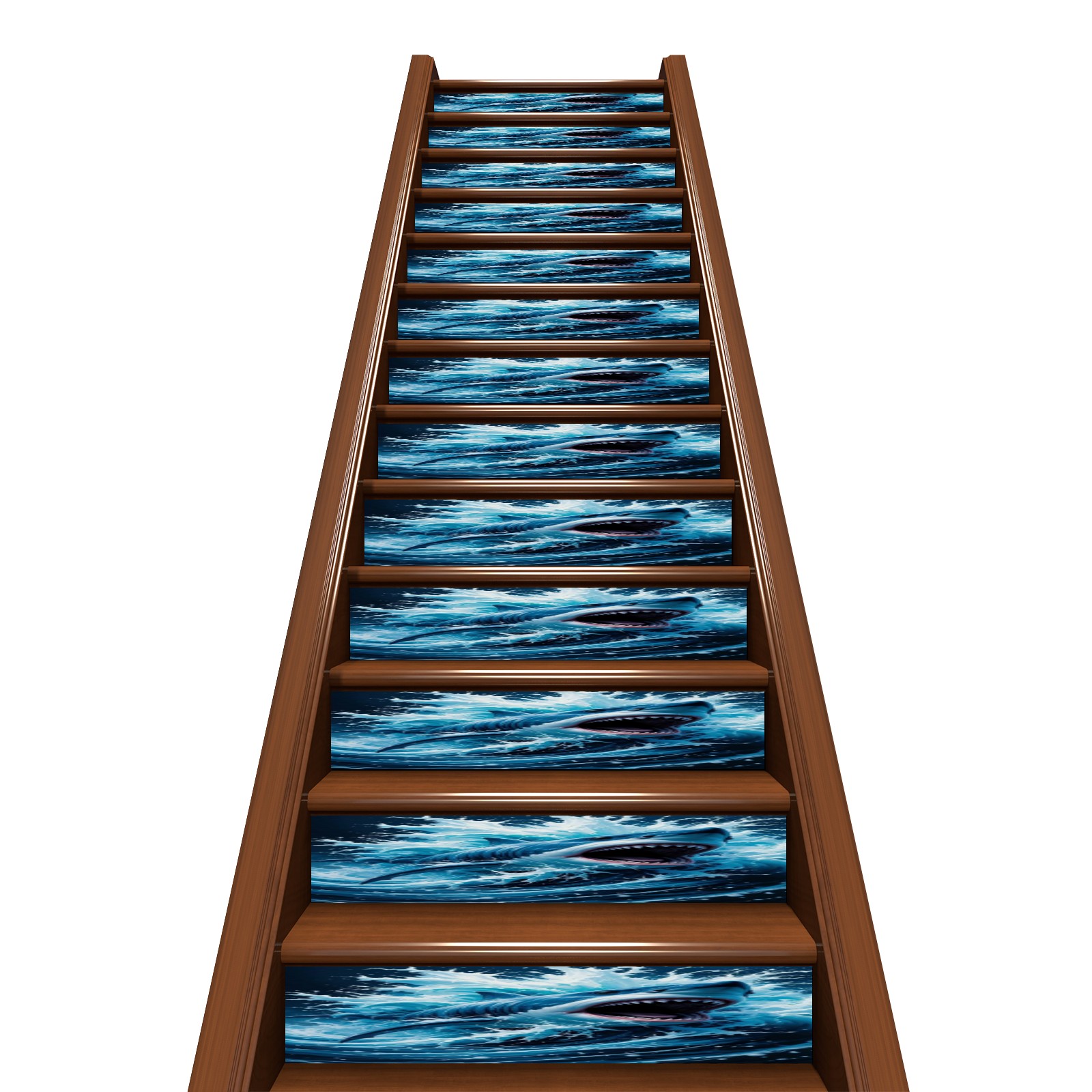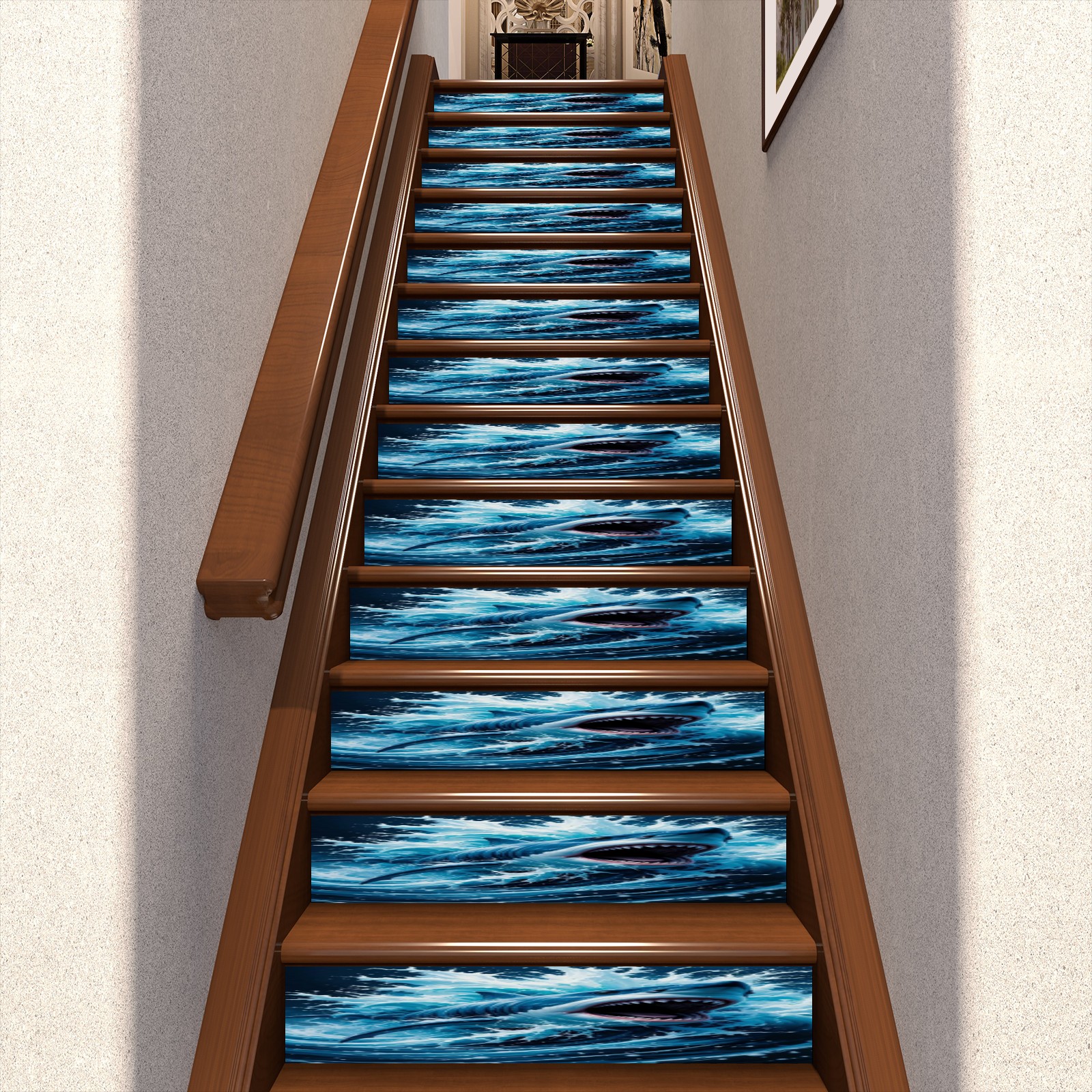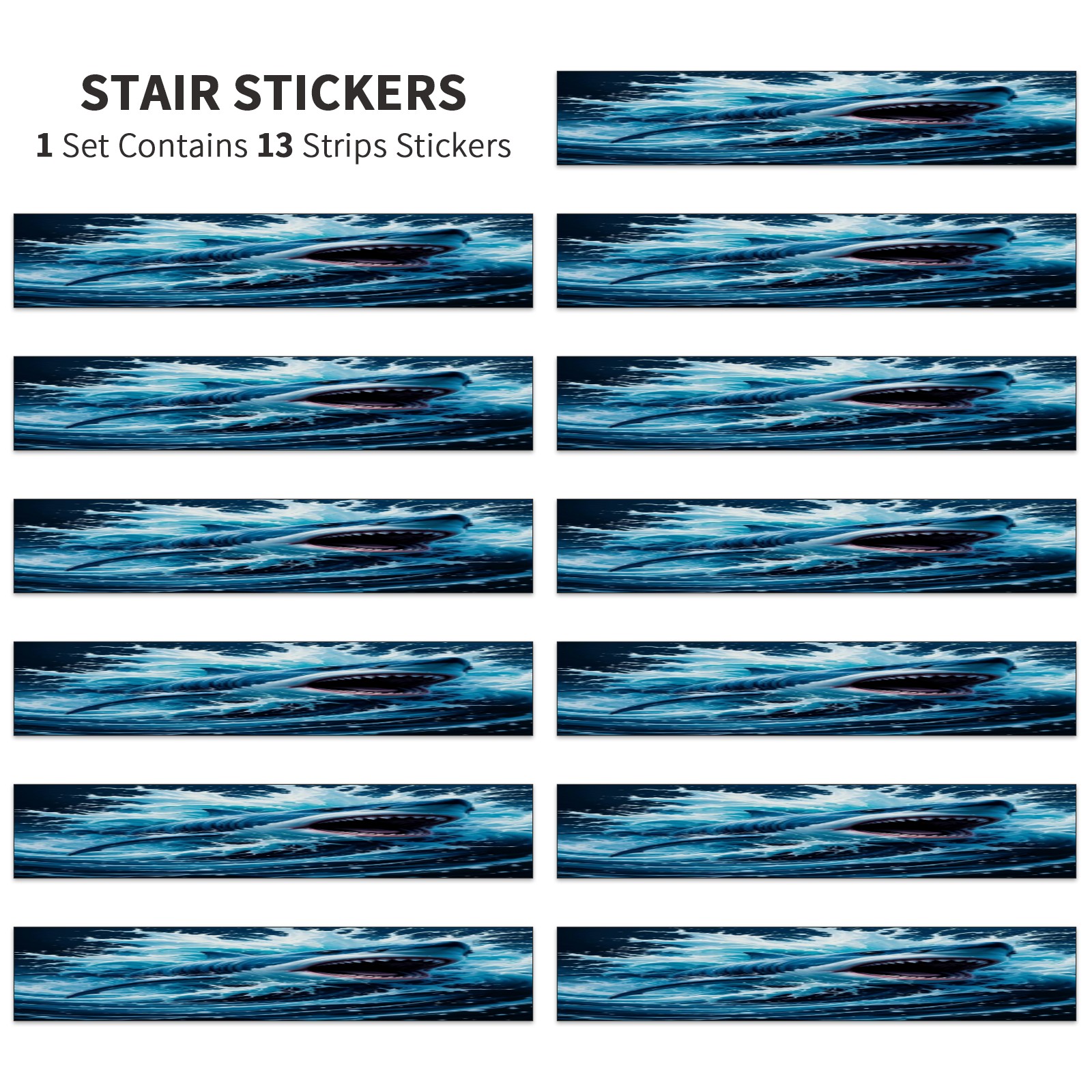 Non Slip Stair Treads Peel and Stick - 13PCS PET 39.4"x7.1" Anti-Slip Stair Stickers, 92.1"x39.4" Merged Size, Waterproof Step Grips for Stairs/Walls Blue Ocean Shark