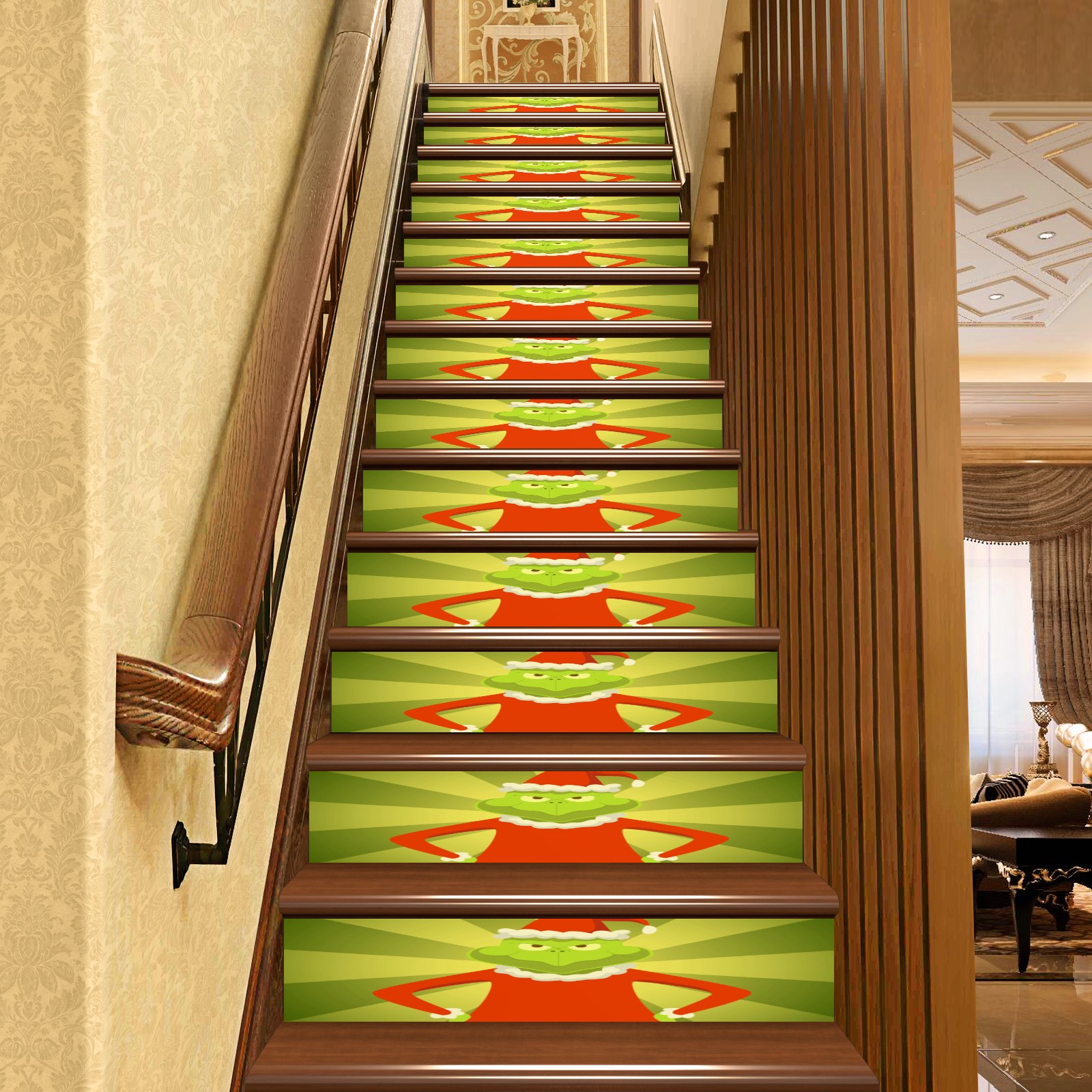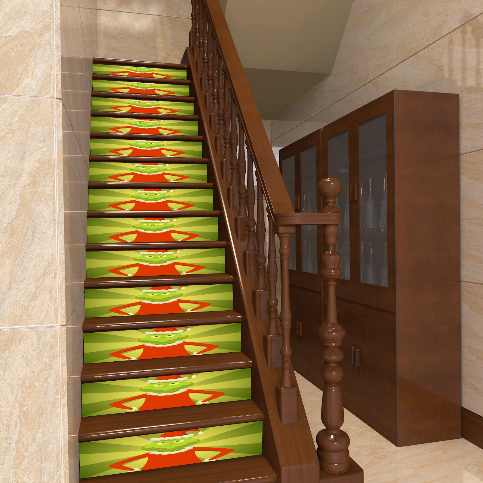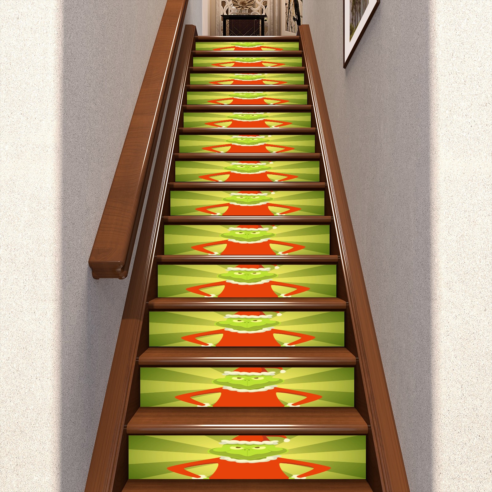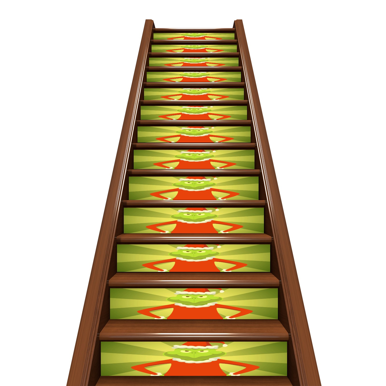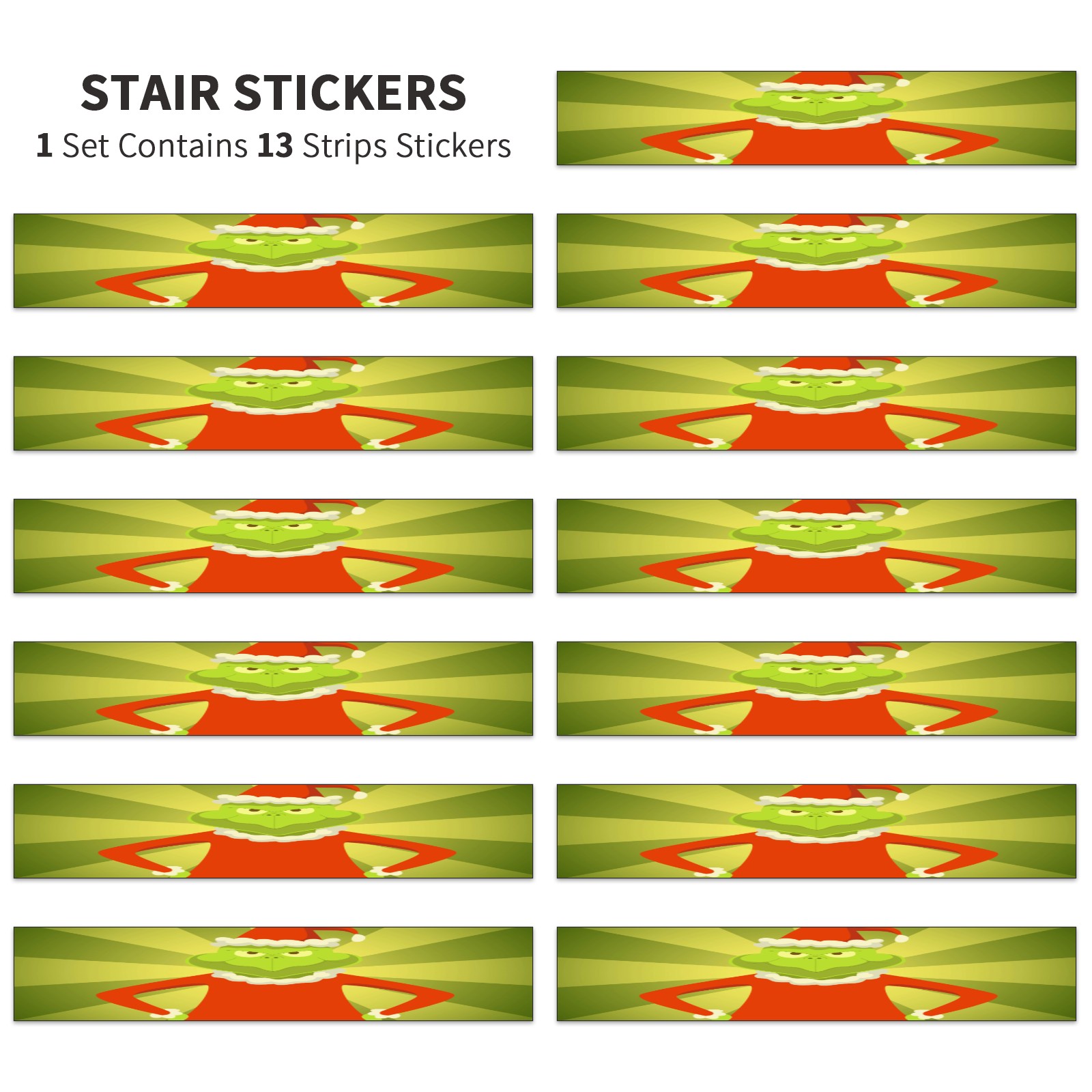 Non Slip Stair Treads Peel and Stick - 13PCS PET 39.4"x7.1" Anti-Slip Stair Stickers, 92.1"x39.4" Merged Size, Waterproof Step Grips for Stairs/Walls The Grinch Vector