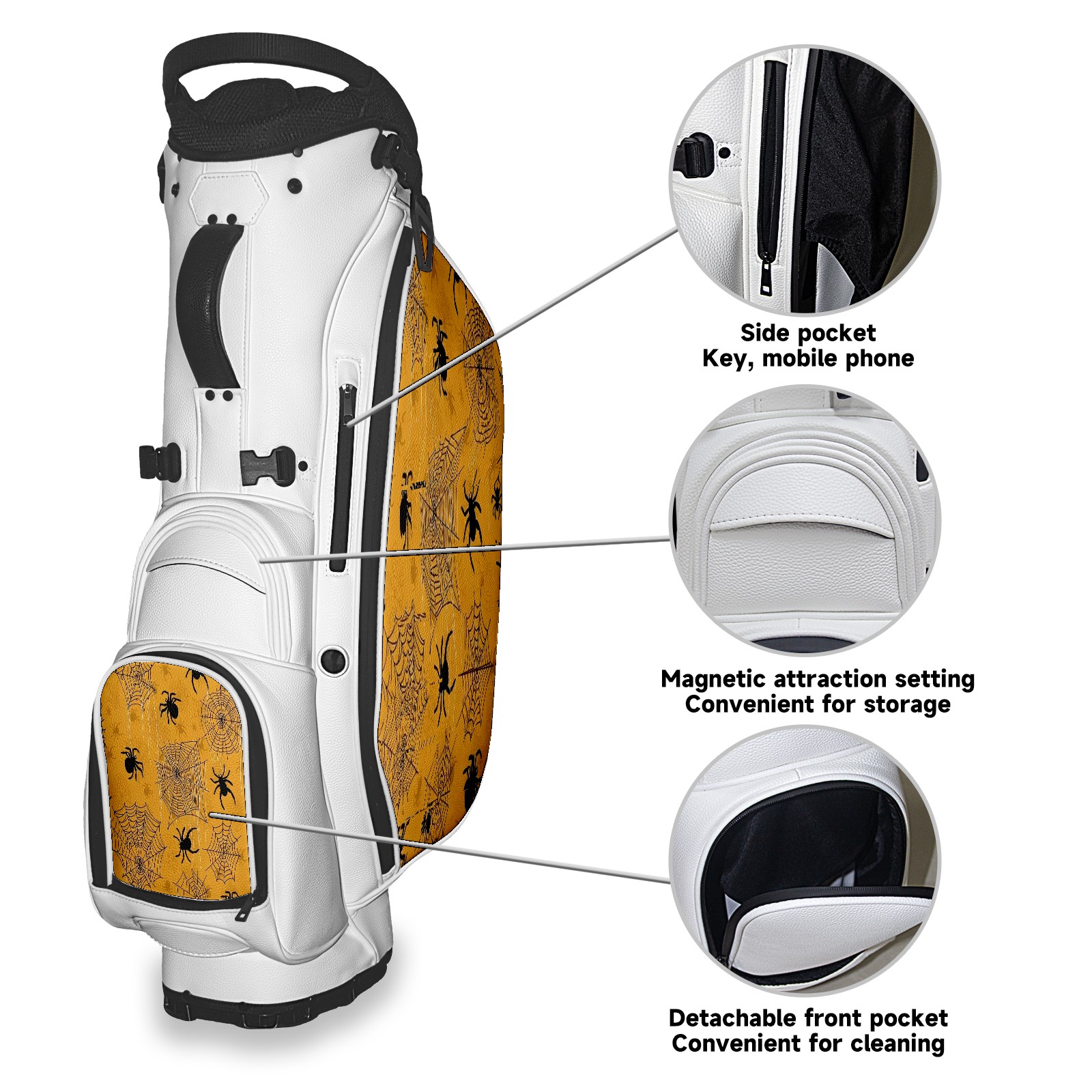 • <p>The Golf Stand Bag, designed specifically for golf enthusiasts, offers a choice of 5 - way and 14 - way top dividers. Its 5/14 - compartment design with independent full - size club compartments safeguards clubs from collisions. Equipped with a rain cover, waterproof zippered pockets (tested to resist moderate to heavy rain), and a high - performance cooler pouch that can keep drinks cold for hours, it ensures a convenient golfing experience. The bag features thickened, breathable neoprene shoulder straps and an adjustable chest buckle, reducing shoulder fatigue by 35% compared to regular bags, and its automatic aluminum alloy stand provides stable support on various terrains. Crafted from top - tier, water - resistant litchi - grain PU leather, with double - stitched edges, reliable zippers tested for over 15,000 cycles, and anti - abrasion bottom studs, it guarantees durability. You can personalize it with embroidery on the front pocket and rain cover side (15*15cm area), and it comes in classic black and white, with a matte finish and litchi - grain texture that combines business and leisure styles. Measuring 130 cm in height, 37 cm in width, and 31 cm in depth (including rain cover) and 90 cm x 31 cm x 37 cm (excluding rain cover), it strikes a balance between storage and portability, capable of holding 14 standard - sized clubs and other essentials, and it also includes a dust cover. It's truly the perfect choice for golfers.<br></p>