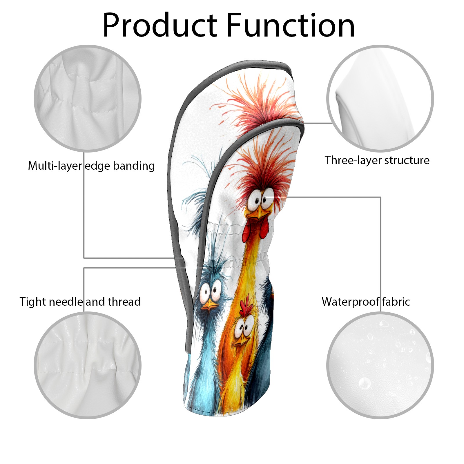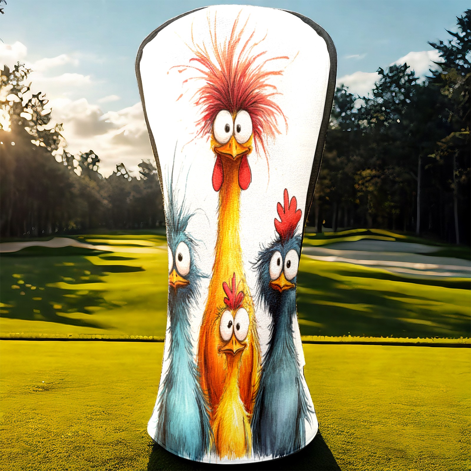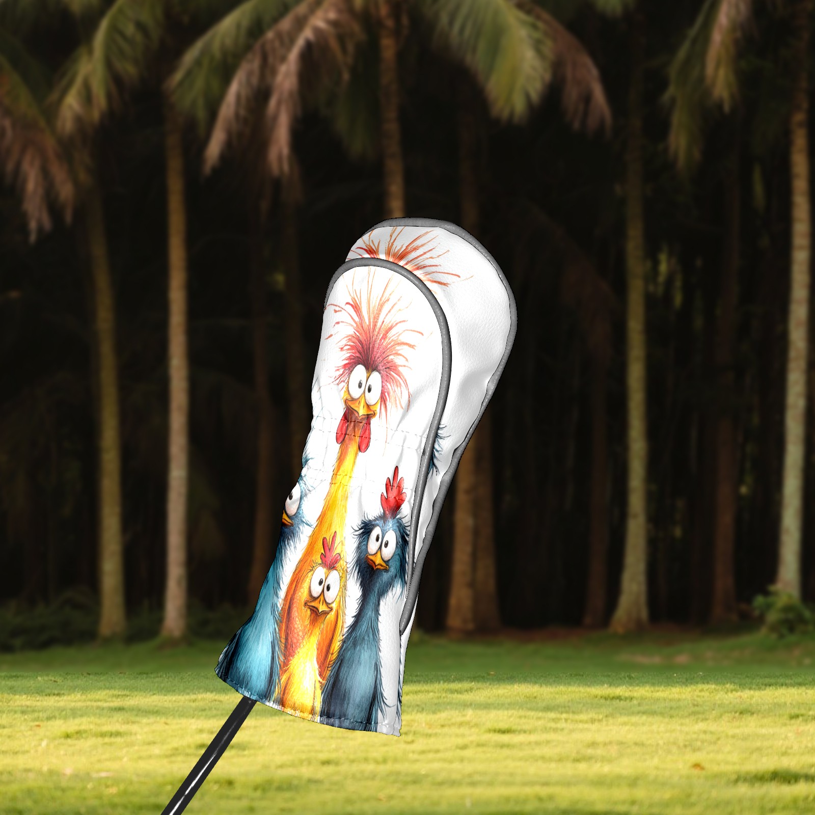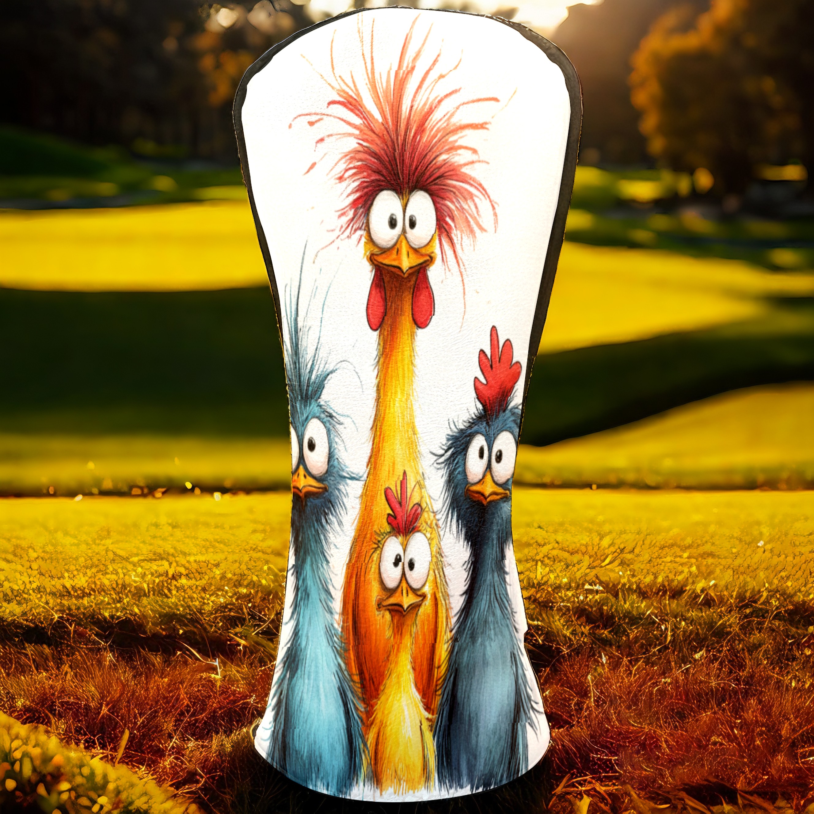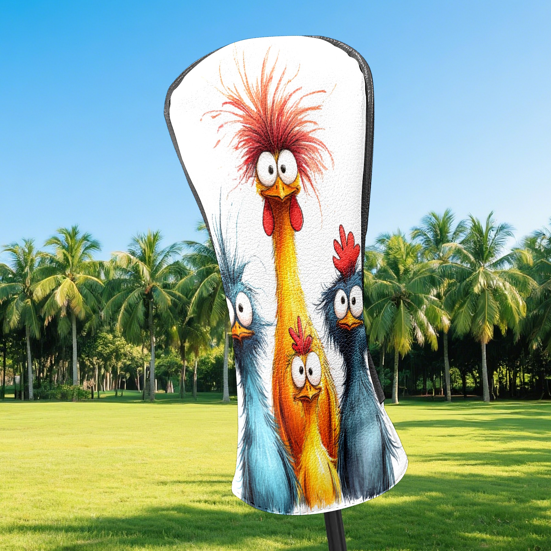 Golf Club Head Cover, High Quality PU Leather Driver and Wood Club Head Cover with Anti-Scratch Lining, Universal Gift for Men and Women Blue Yellow Fried Chicken